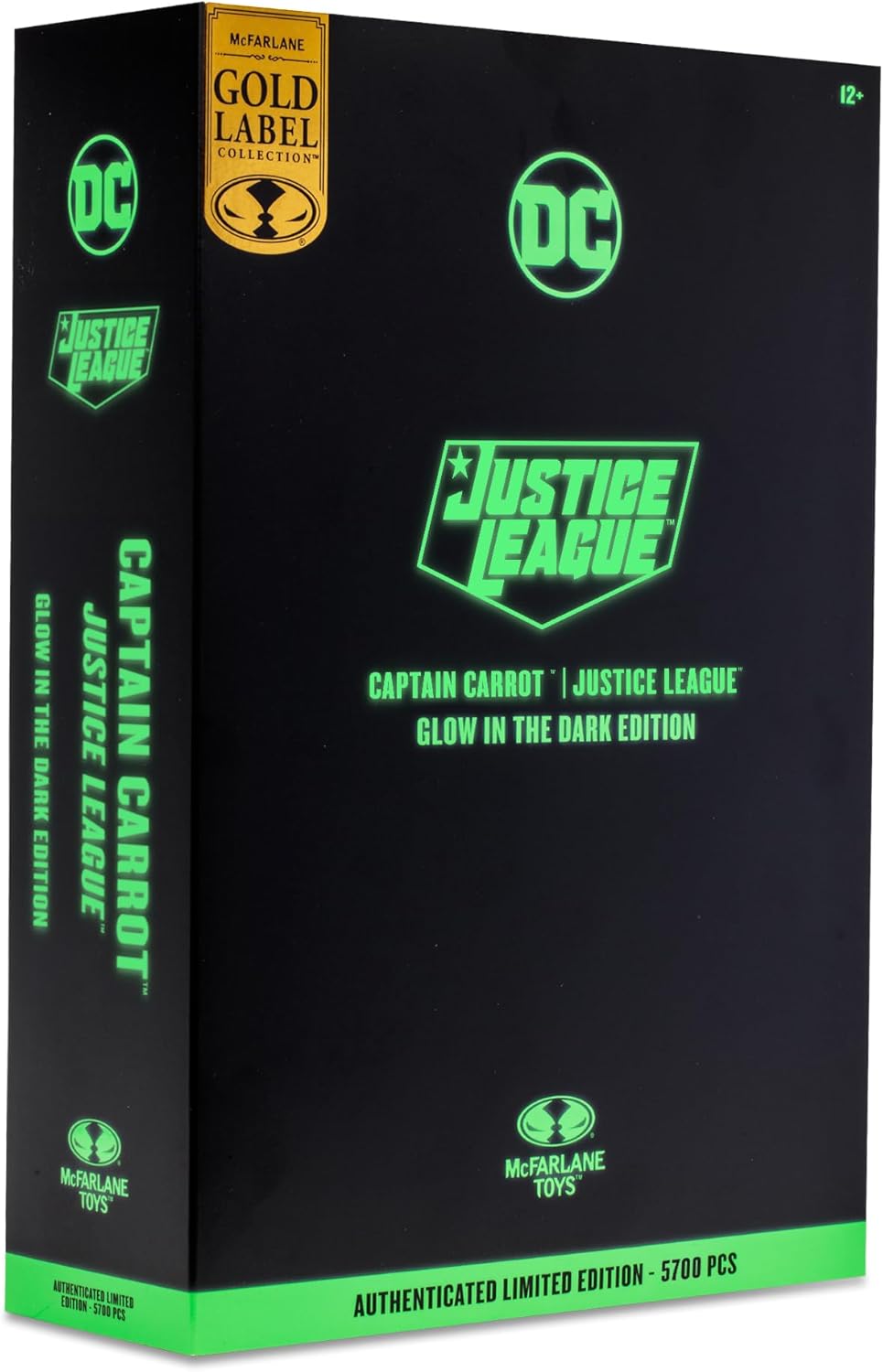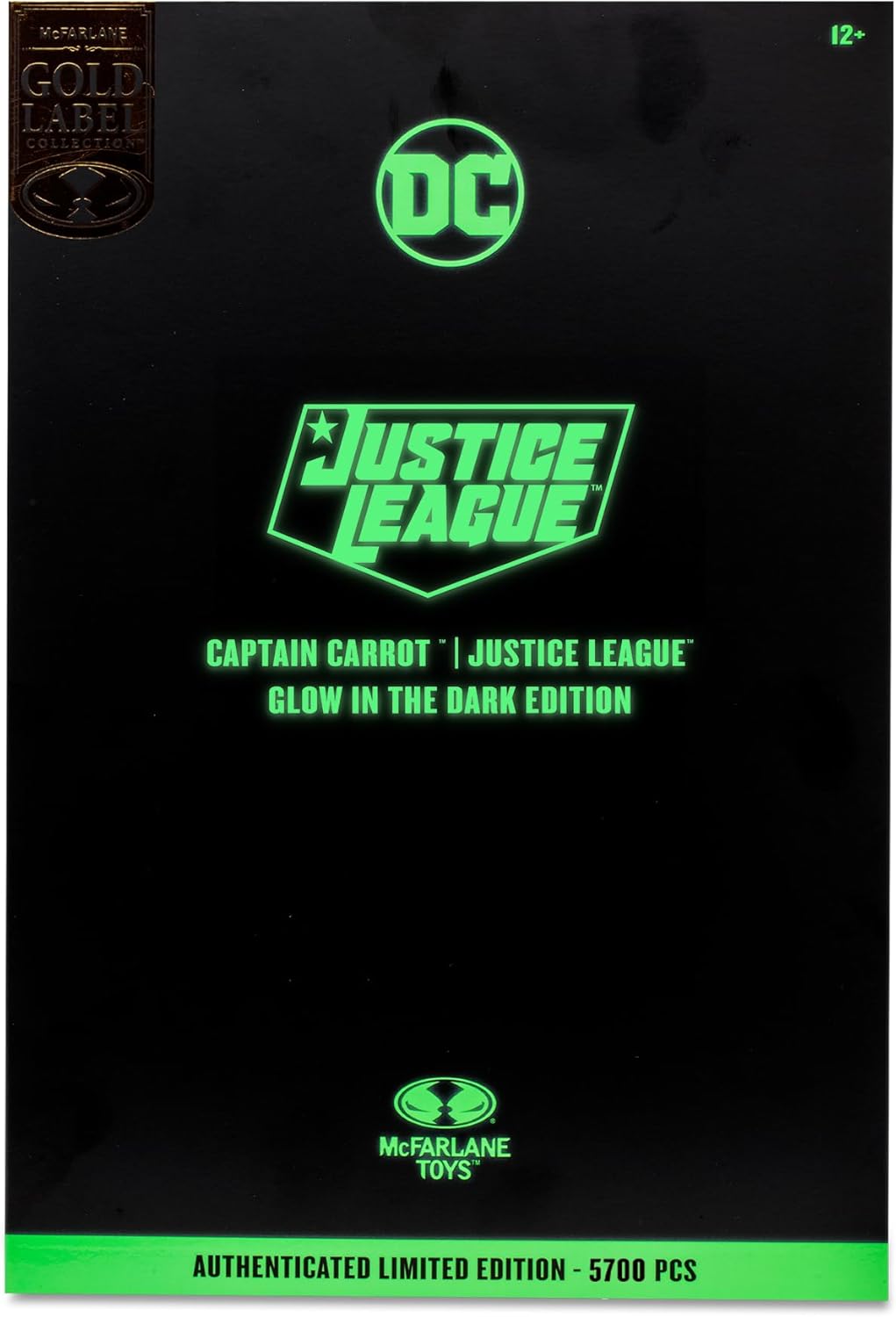 Captain Carrot è presente in Glow in the dark paint deco e include 4 mani extra Presentato in un'esclusiva scatola di design Figura in scala da 17,8 cm incredibilmente dettagliata basata sul DC MULTIVERSE Progettato con Ultra Articolazione con fino a 22 parti mobili per una gamma completa di posa e gioco Include base di figure, carta artistica autenticata e una base per display per carte d'arte Colleziona tutte le figure McFARLANE TOYS DC MULTIVERSE
