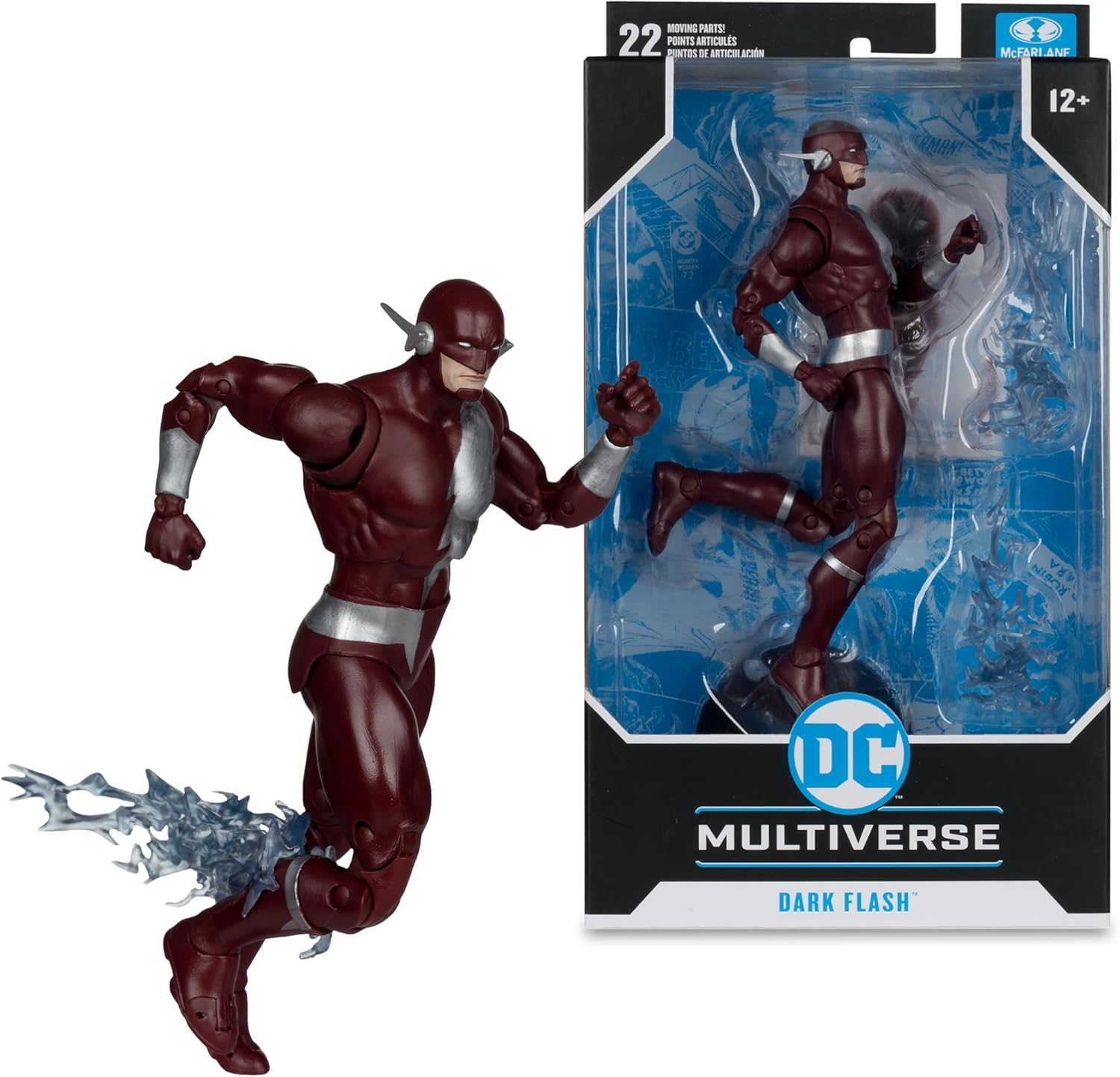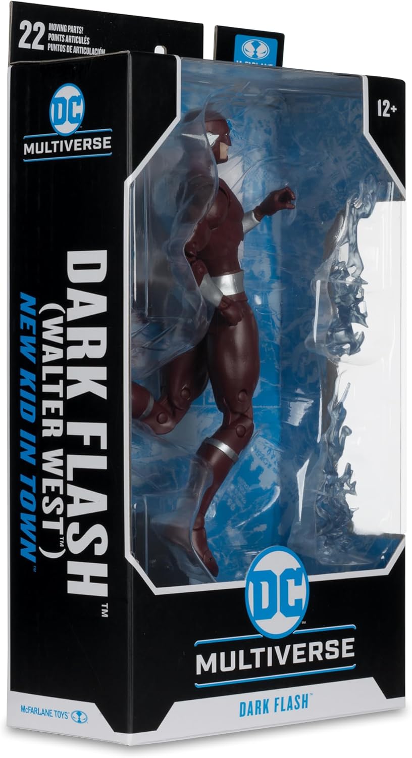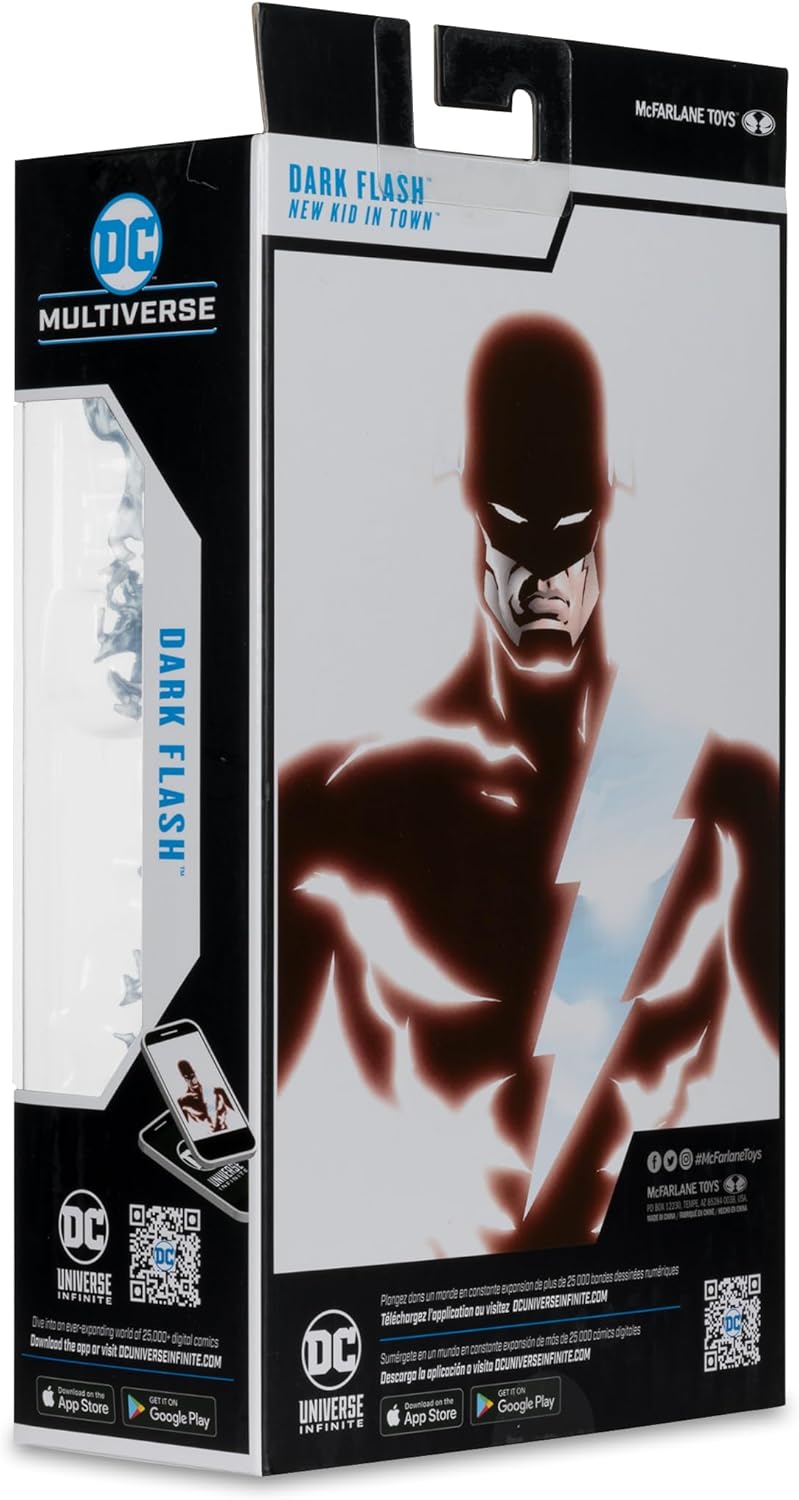 Figura in scala da 17,8 cm incredibilmente dettagliata basata sul DC MULTIVERSE Progettato con Ultra Articolazione con fino a 22 parti mobili per una gamma completa di posa e gioco DARK FLASH (WALTER WEST) come descritto nei fumetti DC Include 2 effetti fulmini, base di visualizzazione delle figure e carta artistica da collezione con arte del personaggio sul davanti e biografia del personaggio sul retro Colleziona tutte le figure McFARLANE TOYS DC MULTIVERSE
