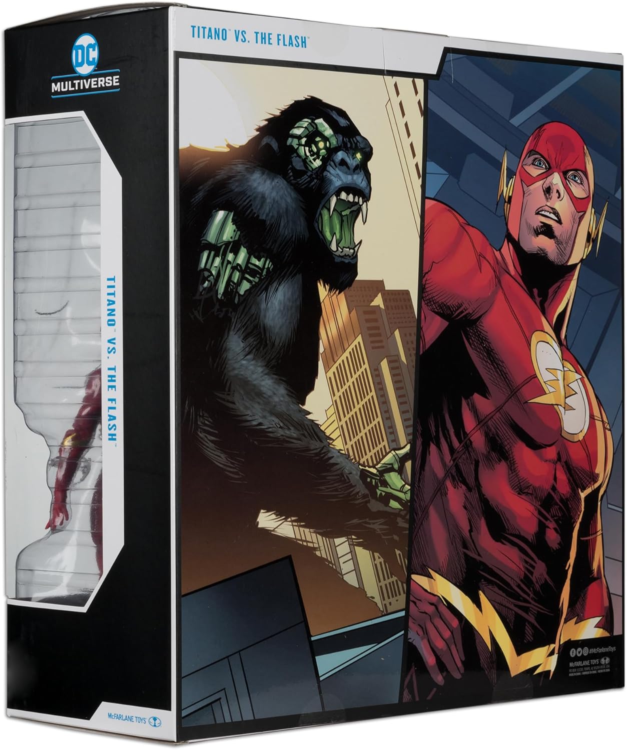 Include action figure The Flash da 7 pollici e figura Titano da 12 pollici La action figure Flash da 7 pollici è progettata con Ultra Articulation con un massimo di 22 parti mobili per una gamma completa di posa e gioco Include base per esporre figure e 2 carte d'arte da collezione con arte del personaggio sul davanti e biografia del personaggio sul retro Raccogli tutti i giocattoli McFARLANE TOYS DC MULTIVERSE!