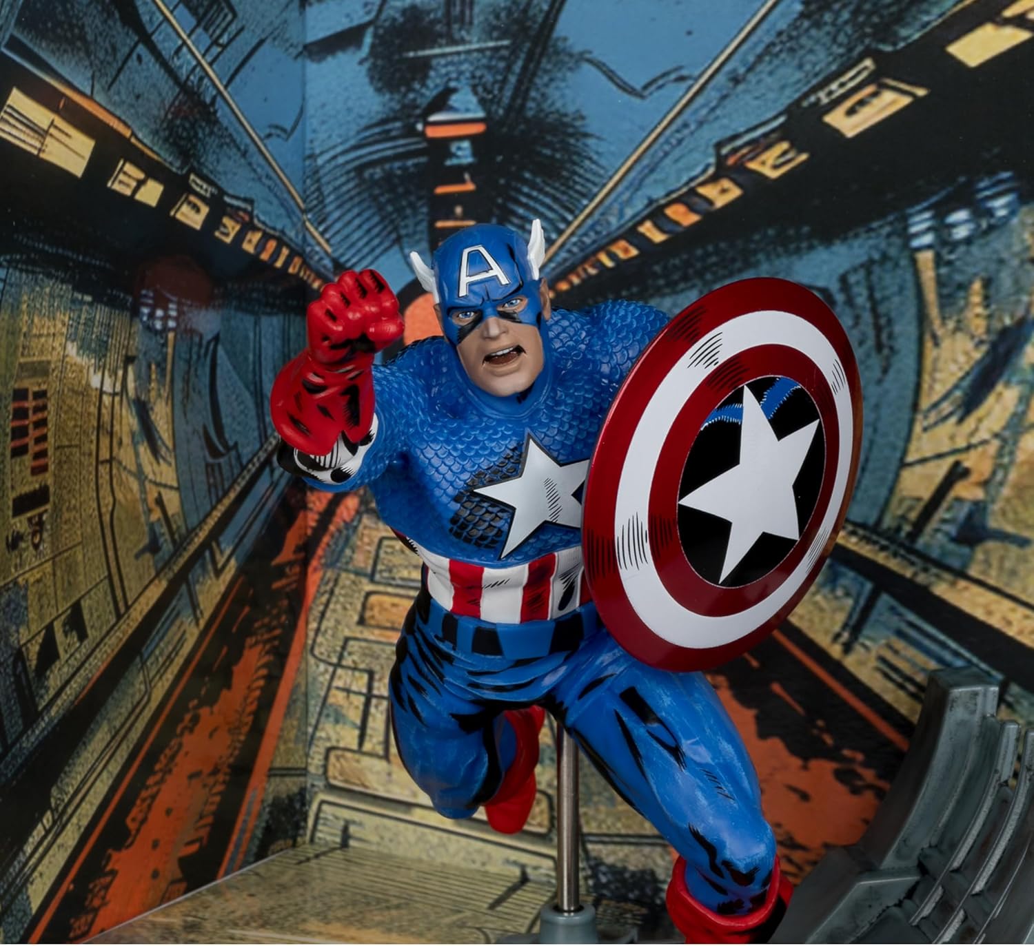 Ispirato da Captain America Issue# 100 1:10 Scala da collezione con base ambientale e scena di sfondo Biglietto artistico incluso con illustrazione del personaggio sul davanti e sinossi comica Raccogli tutti gli oggetti da collezione McFarlane Toys Marvel