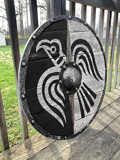 Ispirato all'età vichinga, lo scudo medievale Eivor Valhalla Raven Clan Battleworn incarna l'estetica robusta dei guerrieri norreni. Caratterizzato da motivi che ricordano il famoso guerriero vichingo Eivor Valhalla, questo scudo cattura l'essenza della mitologia norrena e della tradizione vichinga. Lo scudo vanta una finitura battaglia, dandogli un aspetto autentico e invecchiato che ne esalta il fascino storico. Ogni scudo è meticolosamente realizzato a mano in legno di alta qualità, garantendo durata e autenticità. Sorprendi un amico o una persona cara con un regalo che celebra la sua passione per la tradizione e l'avventura vichinga, rendendo le loro esperienze cosplay o giochi di ruolo davvero memorabili.
