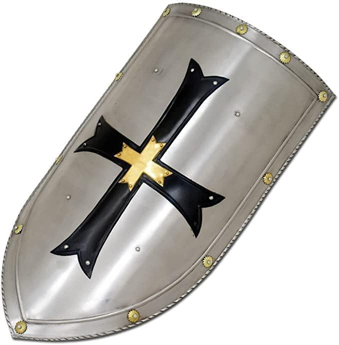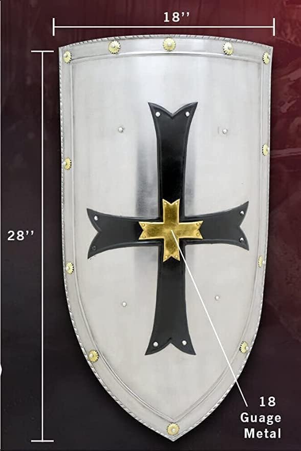 Materiale: acciaio calibro 18 Dimensioni: 71 cm di altezza Peso netto: 2,2 kg Soddisfatte: le nostre collezioni di scudi sono una buona opzione regalo in occasione di compleanno, anniversario, eventi speciali come Natale Halloween o possono essere utilizzate per la decorazione della casa o dell'ufficio come pezzo di collezione artistica. Può anche essere utilizzata per collaborare con costumi da gioco di ruolo. Si tratta di una riproduzione di un oggetto, non antico. Ottimo articolo per decorare la casa o come protezione. Il manico dello scudo è in acciaio. Qualità: al fine di confermare la qualità, questi prodotti sono rigorosamente controllati su numerosi parametri del settore. In conformità con le norme mondiali, esportiamo i nostri prodotti in una vasta gamma di specifiche. Questo scudo completamente funzionale presenta una grande croce centrale in acciaio annerito e ottone