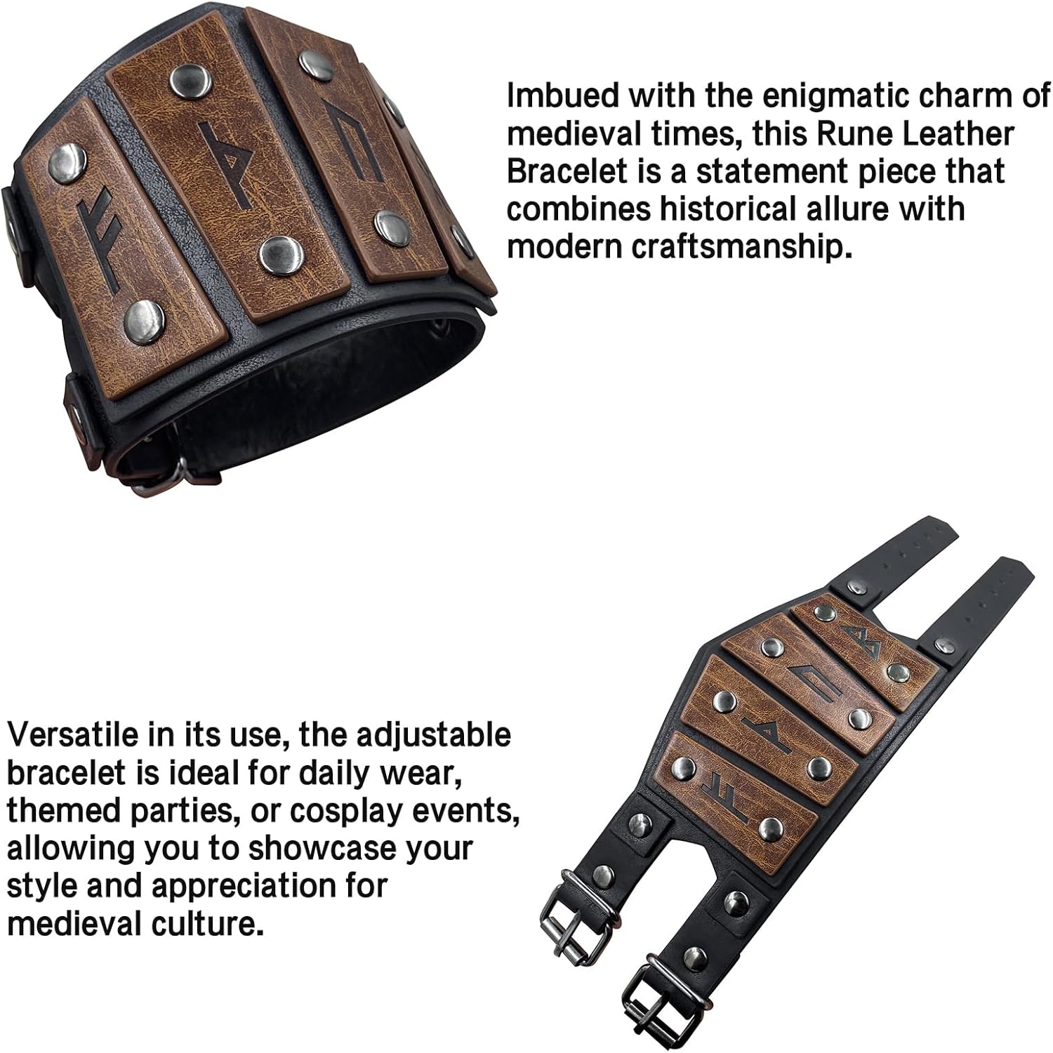 Medievale Per Gioco Di Ruolo Maschio Pirata PU Medievale Pirata Soldato Guanti Con Modello Intagliato Fornitura Halloween Caratteristiche: Abbraccia con il fascino enigmatico del medioevo, questa pelle intagliata è un oggetto di dichiarazione che combina l'artigianato storico e moderno. Realizzato in pelle PU goffrata e decorato con robuste fibbie hardware e rivetti, questo offre durata e una vestibilità comoda. Un accessorio per uomini e donne che apprezzano il misterioso dell'antico scolpito e cercano di esprimere la propria identità. Versatile nel suo utilizzo, il regolabile è ideale per l'uso quotidiano, feste a tema o eventi cosplay, permettendoti di mostrare il tuo gusto e apprezzamento per la cultura medievale. Abbraccia l'eleganza del Medioevo ed eleva il tuo gioco di accessori con questa pelle PU Specifiche tecniche: Texture: PU, lega, rivetto Dimensioni: 28 x 7,5 cm. Colore: Marrone La confezione include: 1 x pelle sintetica medievale. Nota bene: 1. Si prega di considerare un margine di errore di 1-2 cm dovuto alla misurazione manuale. 2: A causa delle differenze tra i diversi monitor, l'immagine potrebbe non riflettere il colore reale del prodotto.