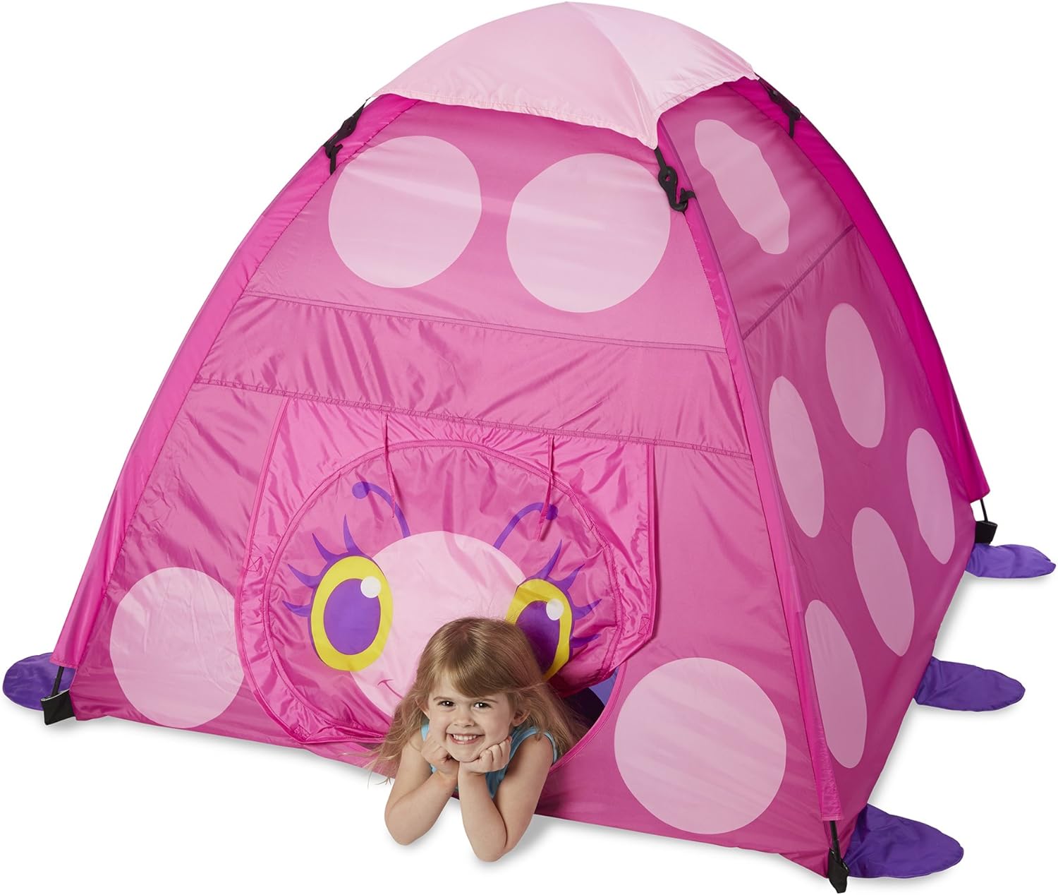 Invita tuo figlio in un'avventura Sunny Patch con questa tenda facile da montare. Il luogo perfetto per ore di gioco fantasioso ti aspetta all'interno! Tenda a tema coccinella Facile da montare Adatta per 2 o più bambini Realizzata in poliestere resistente