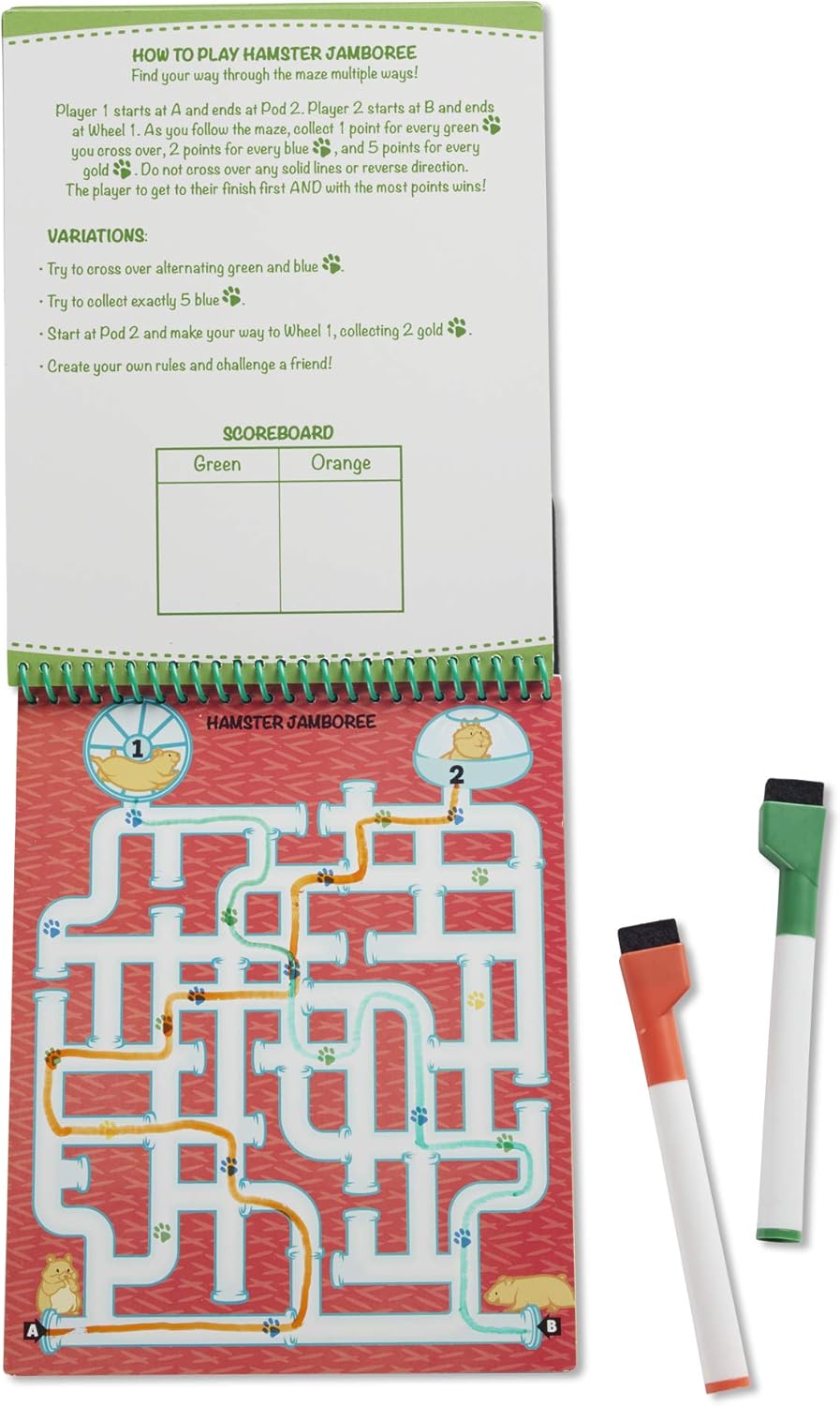 Libro di attività riutilizzabile con parole intelligenti, immagini e gioco creativo per uno o due giocatori da fare con pennarelli cancellabili Robusto libretto con rilegatura a spirale con 10 pagine fronte-retro e 17 giochi diversi Include 2 pennarelli cancellabili a secco di colori diversi con gomma incorporata Il comodo contenitore integrato per pennarelli cancellabili a secco, le dimensioni convenienti e la riutilizzabilità lo rendono perfetto per i viaggi Dai 6 anni in su; 15 x 25 x 2,5 cm Perfetto per tenere occupati i bambini in viaggio, in vacanza o a casa