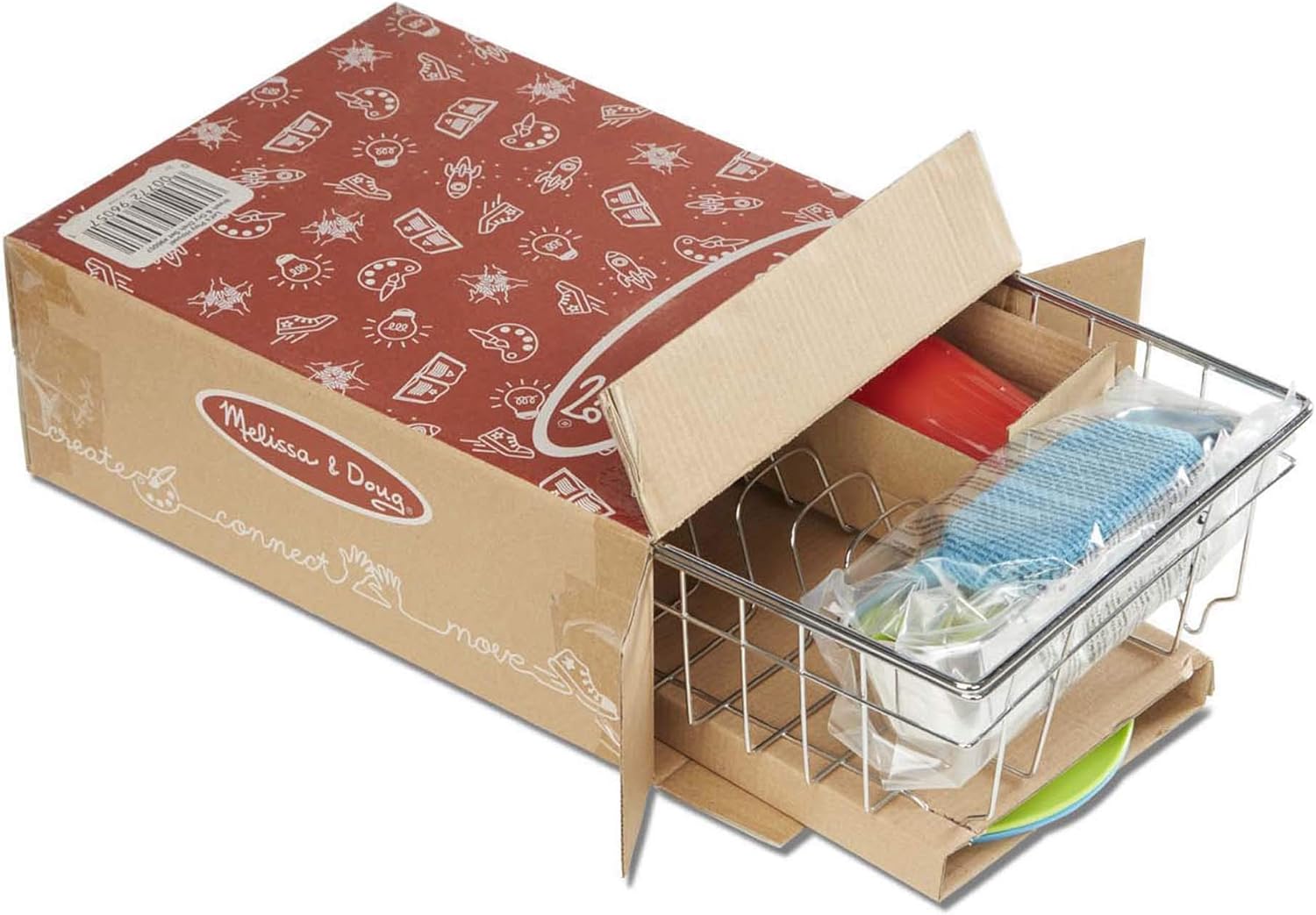 Set di piatti da gioco, utensili e set per lavare i piatti Include 4 coperti (tazze, piatti, forchette, cucchiai, coltelli) più bottiglia di sapone comprimibile, spugna rivestita in rete e stendibiancheria in metallo con inserto per utensili Innumerevoli modi per giocare e imparare con questo set da 24 pezzi Utilizzare con una cucina da gioco o come set da gioco autonomo Ideale per smistare, abbinare, coordinare occhio-mano, abilità sociali e capacità di comunicazione