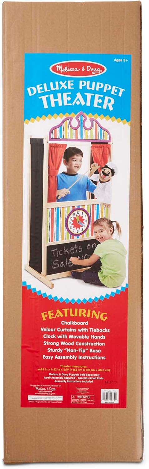 TEATRO DEI BURATTINI DELUXE: stimola l'immaginazione, il linguaggio e la fiducia nei bambini grazie a un gioco creativo e senza schermi. DESIGN ROBUSTO E DETTAGLI REALISTICI: include una struttura in legno con base anti-ribaltamento, tendine in velluto rosso, lavagna per scrivere il titolo dello spettacolo e un orologio con lancette mobili per indicare l’orario di inizio. IDEALE PER LO SVILUPPO DEL BAMBINO: perfetto per promuovere abilità sociali, comunicative ed emotive attraverso il gioco simbolico, in linea con i principi Montessori. Ottimo per attività didattiche a casa o nella scuola dell’infanzia. SPAZIO PER UNO O DUE BURATTINAI: il palco è ampio abbastanza da accogliere uno o due bambini, incoraggiando il gioco condiviso e la cooperazione durante gli spettacoli.