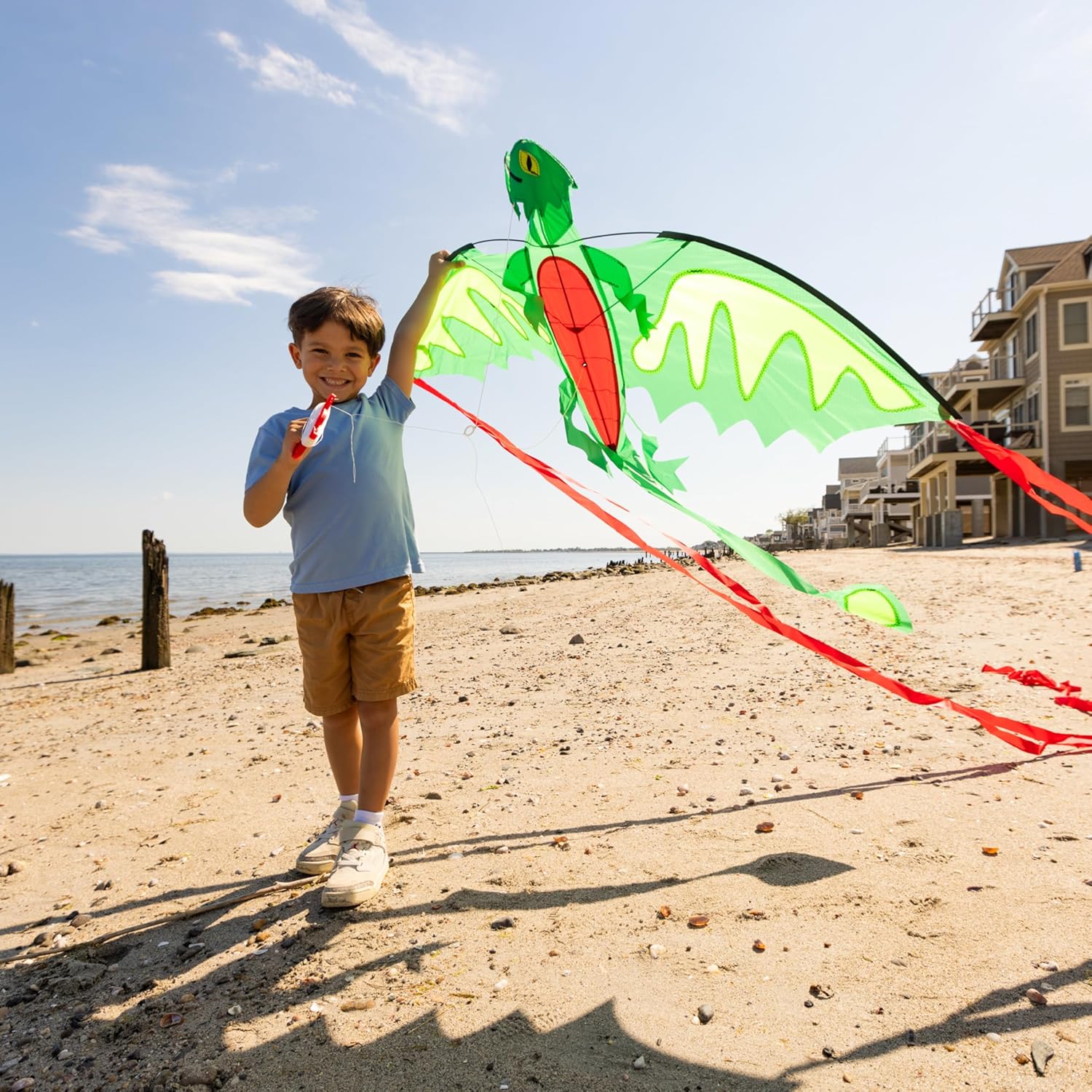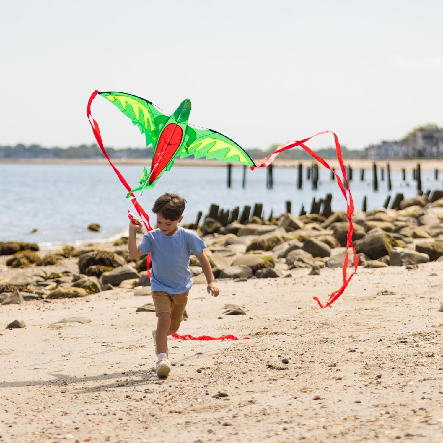 Aquilone volante colorato a forma di aquilone con apertura alare di 62 pollici. Include 164 piedi di robusta linea di kite premium e una maniglia facile da impugnare. Bordi rinforzati cuciti, nylon ripstop resistente e montanti flessibili in fibra di vetro per infinite ore in aria. Facile da montare, lanciare e volare. Da 3 anni