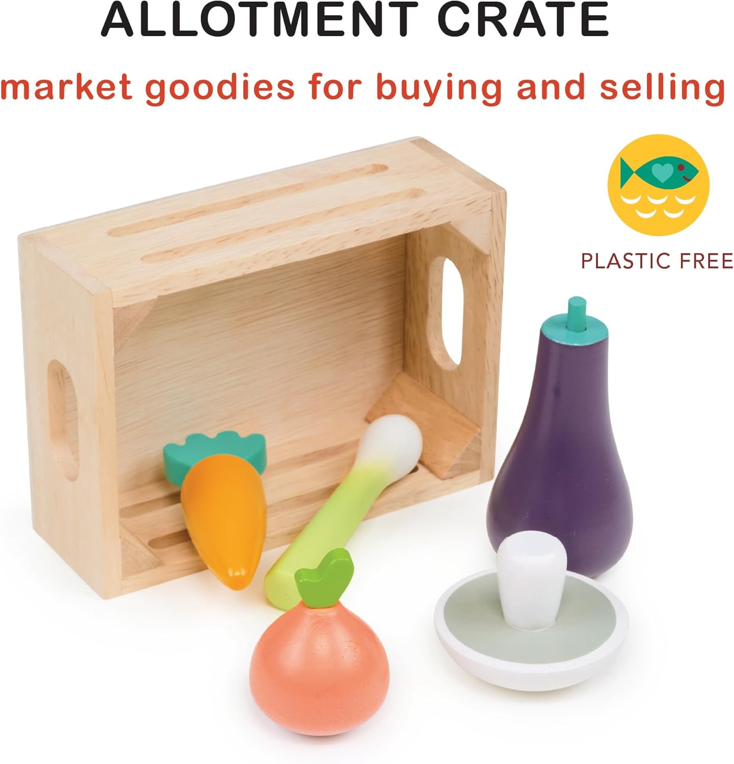 Aggiungi a una configurazione di gioco di mercato. Questa è una delle nostre tante meravigliose casse di cibo. Colleziona i tuoi preferiti e crea il tuo viaggio di shopping perfetto. Può essere aggiunto al nostro espositore Mentari, visita il nostro negozio per ulteriori informazioni Cibo da gioco in legno Realizzato in legno di alta qualità, questo è un delizioso cibo da gioco solido che può essere utilizzato in qualsiasi configurazione di gioco di finzione. È stato rifinito con una vernice sicura e atossica. Progettato per essere molto moderno ed estetico, sicuramente delizierà ogni ragazzo o ragazza. Vantaggi del gioco di ruolo e del gioco di ruolo: i bambini adorano il gioco di ruolo e inventano scenari in cui possono essere come i loro genitori. Questo giocattolo a gabbia per il cibo è amato da tutti i bambini, stimola nuove capacità di conversazione ed è ideale per lo sviluppo precoce del linguaggio. Legno da fonti sostenibili. Tutti materiali naturali di alta qualità. Il legno massiccio della gomma proviene da fonti sostenibili utilizzando solo legno rinnovabile. Ripiantiamo ogni albero che utilizziamo nell'ambito di un programma governativo legale. Sigillo di approvazione ICTI: siamo molto orgogliosi degli elevati standard etici della nostra fabbrica. Un giocattolo ecologico.