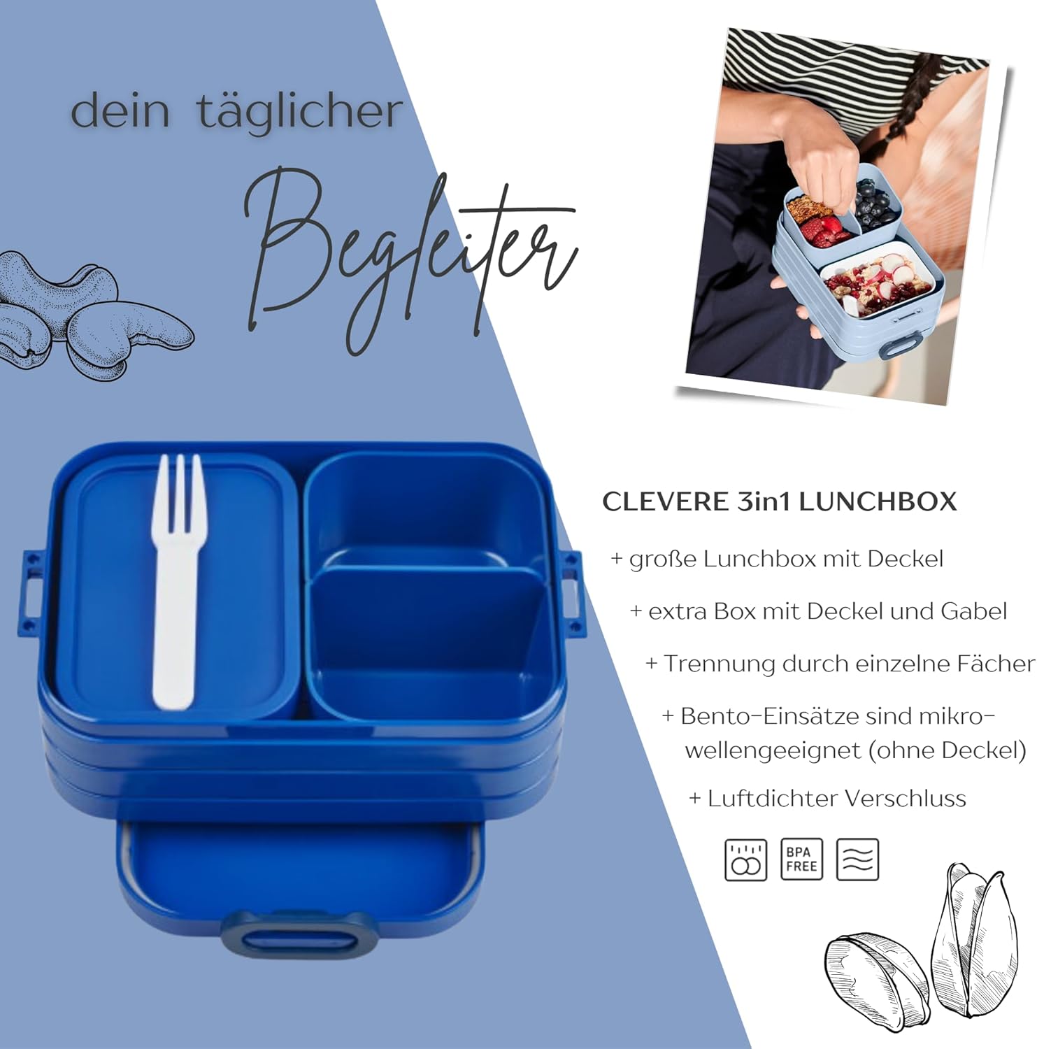 Contenitore per il pranzo personalizzato: Mepal Bento porta pranzo Take a Break con motivo floreale colorato e nome. Clicca sul pulsante giallo "Personalizza ora" e personalizza un vero pezzo unico con il nome desiderato. Design intelligente: contenitore per il pranzo per adulti, adolescenti e bambini con scomparti e inserti Bento con forchetta. Perfetto per porzionare diversi snack. Chiusura facile da aprire. Pratico nella vita di tutti i giorni: perfetto per il lavoro, la scuola, le gite e i viaggi. Il contenitore per il pranzo è a prova di perdite e può quindi essere trasportato in modo ideale nella borsa. Gli inserti bento adatti al microonde consentono di riscaldare i pasti. Il regalo perfetto: sorprendi i tuoi cari con un regalo inconfondibile e personalizzato per ogni occasione, come ad esempio il compleanno. Un'idea regalo unica e personalizzata. Stampa certificata: stampa speciale certificata secondo la norma del giocattolo per la tua sicurezza e ulteriore certificazione Green Guard Gold per il nostro ambiente.