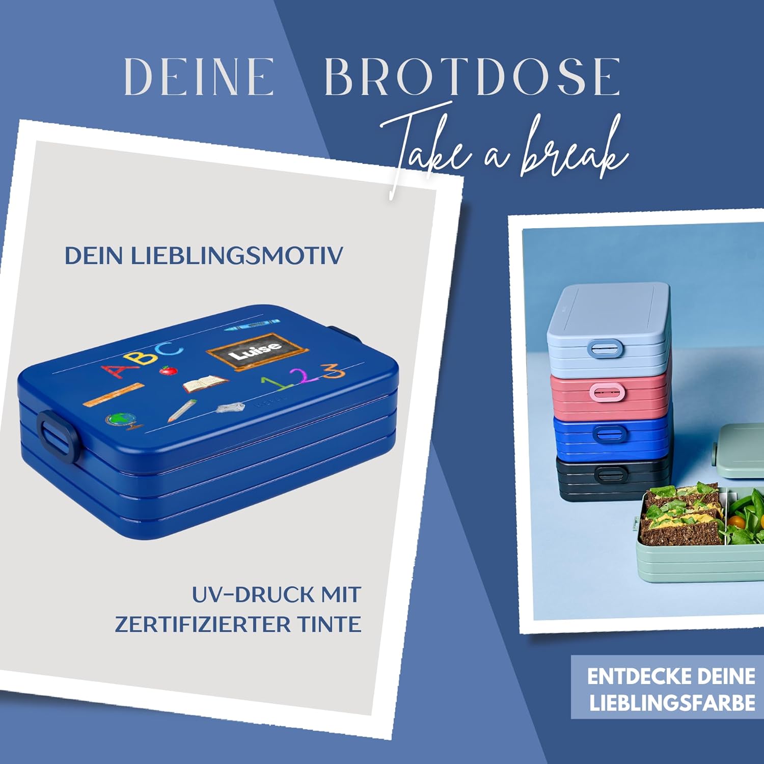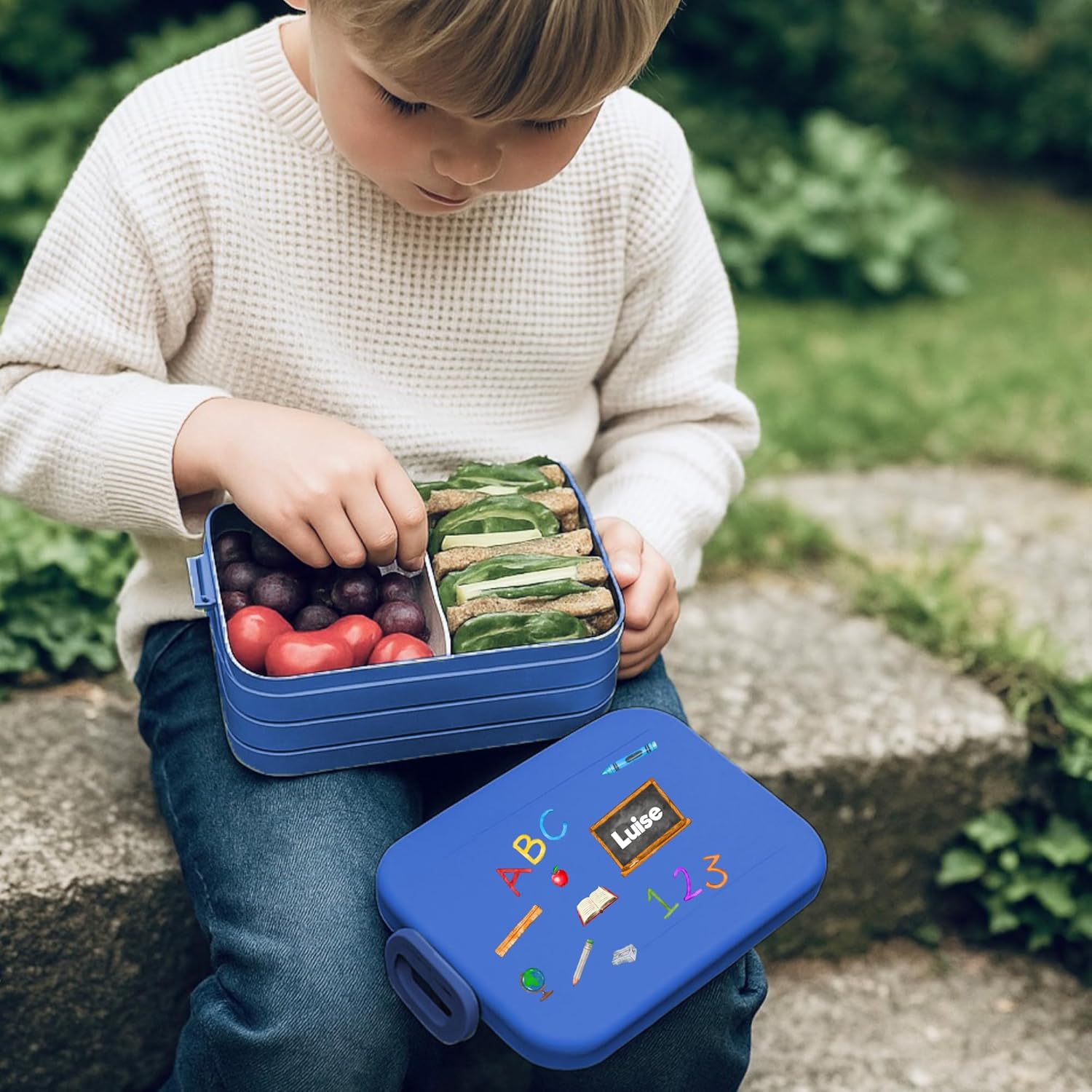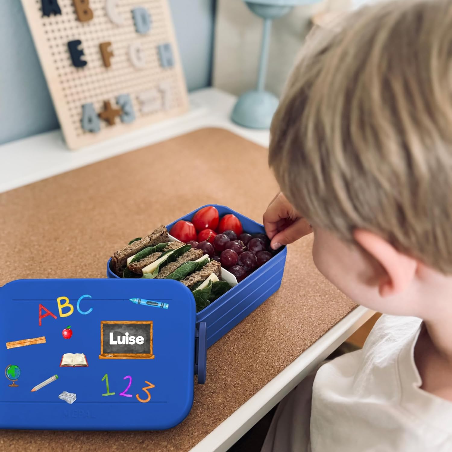Contenitore per il pranzo personalizzato: Mepal contenitore per il pranzo con stampa colorata ABC e nome. Clicca sul pulsante giallo "Personalizza ora" e personalizza un vero pezzo unico. Design ben congegnato: contenitore per il pranzo per bambini con divisore per il trasporto. Perfetto per porzionare diversi snack come frutta, pane o caramelle. Chiusura a clip per bambini e facile da aprire. Pratico nella vita di tutti i giorni: perfetto per la scuola, l'asilo o per gite e viaggi. Il contenitore per il pranzo è a prova di perdite e può quindi essere trasportato in modo ideale nello zaino della scuola. Stampa certificata: la personalizzazione e il motivo colorato sono bambini e rispettosi dell'ambiente. Il corpo del contenitore è lavabile in lavastoviglie. Il regalo perfetto: sorprendi ragazze e ragazzi con un regalo inconfondibile per l'inizio della scuola, il compleanno e qualsiasi altra occasione. Un'idea regalo unica e personalizzata.
