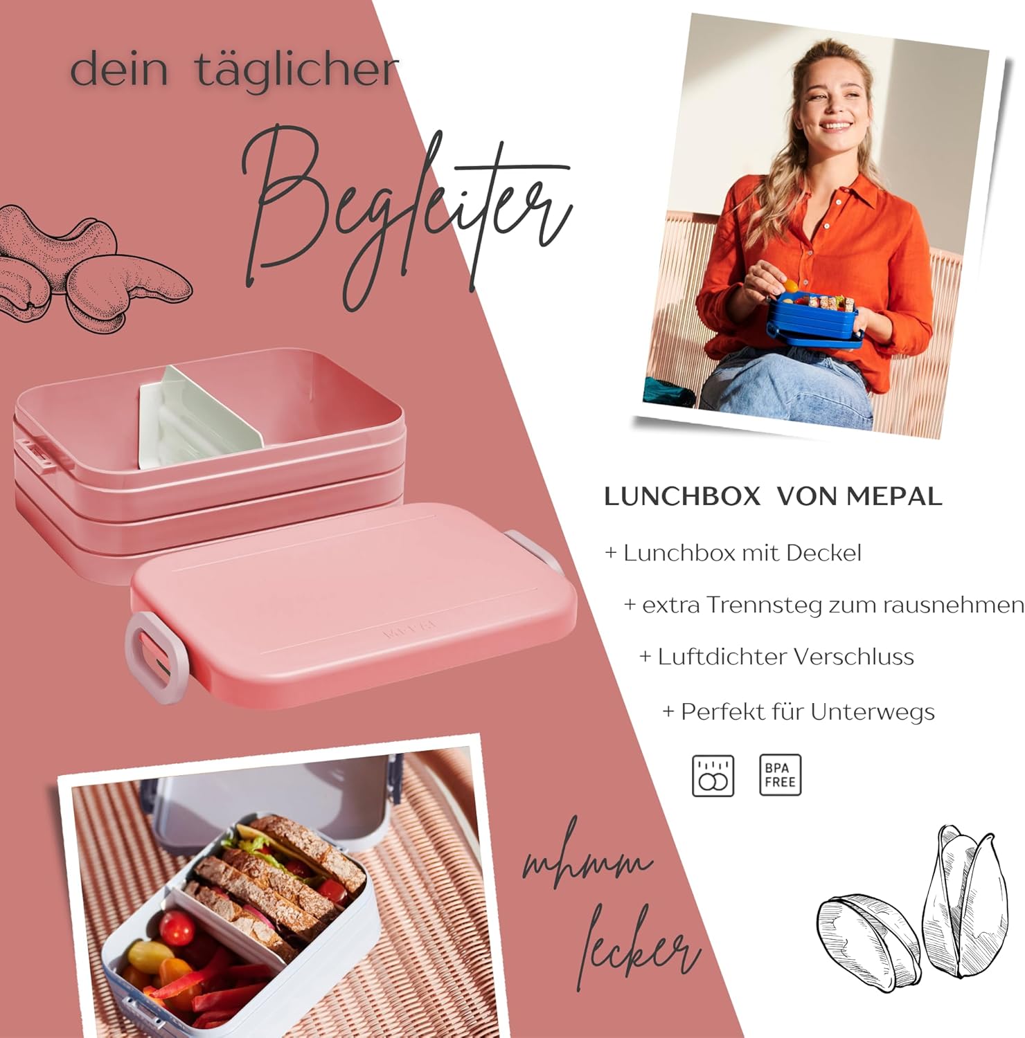 Contenitore per il pranzo personalizzato: Mepal Take a Break con motivo floreale colorato e nome. Clicca sul pulsante giallo "Personalizza ora" e personalizza un vero pezzo unico con il nome desiderato. Design intelligente: contenitore per il pranzo per adulti, adolescenti e bambini con inserto separatore. Perfetto per porzionare diversi snack. Chiusura facile da aprire. Pratico nella vita di tutti i giorni: perfetto per il lavoro, la scuola, le gite e i viaggi. Il contenitore per il pranzo è a prova di perdite e può quindi essere trasportato in modo ideale nella borsa. Ideale per la preparazione quotidiana dei pasti. Il regalo perfetto: sorprendi i tuoi cari con un regalo inconfondibile e personalizzato per ogni occasione, come ad esempio il compleanno. Un'idea regalo unica e personalizzata. Stampa certificata: stampa speciale certificata secondo la norma del giocattolo per la tua sicurezza e ulteriore certificazione Green Guard Gold per il nostro ambiente.