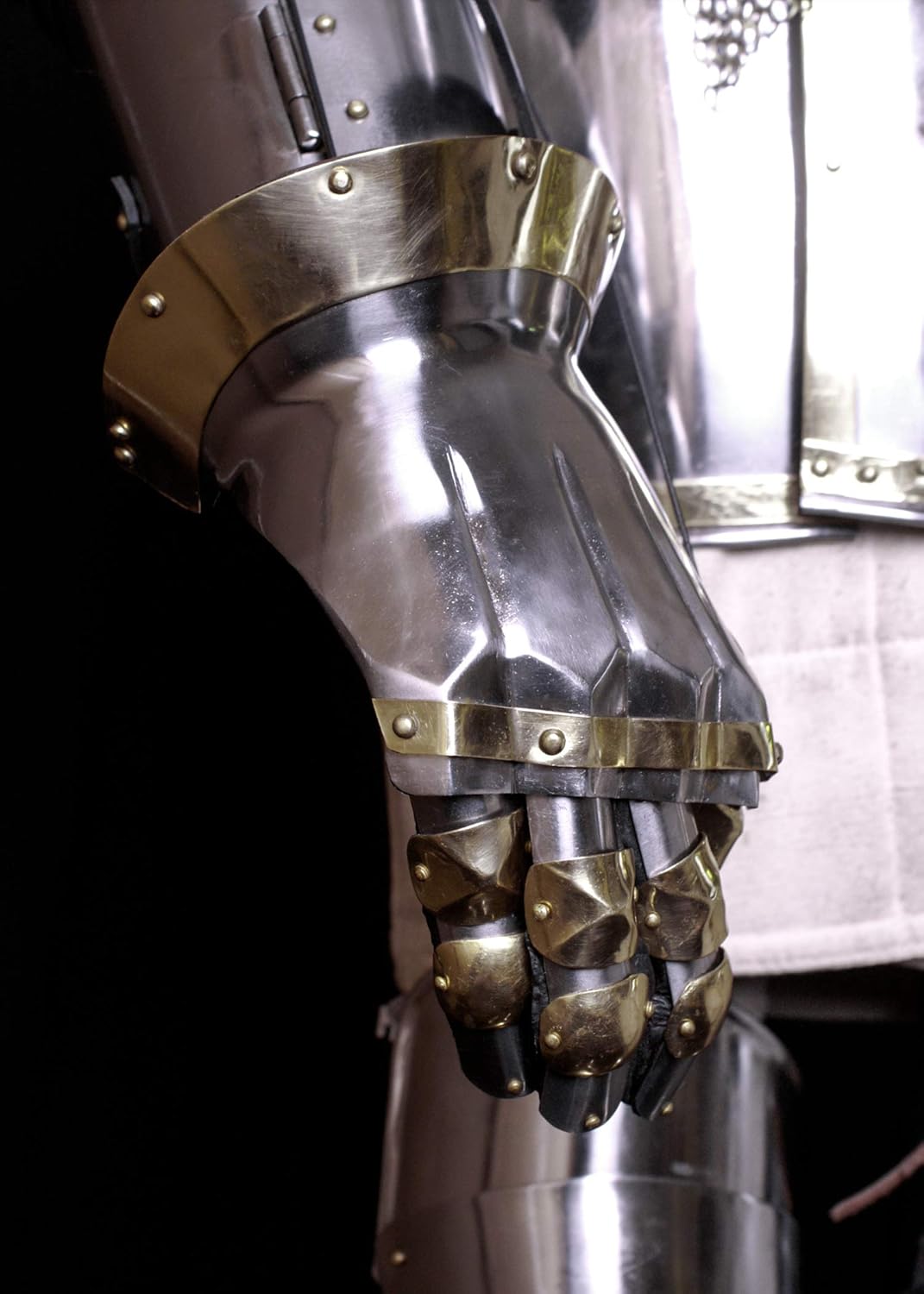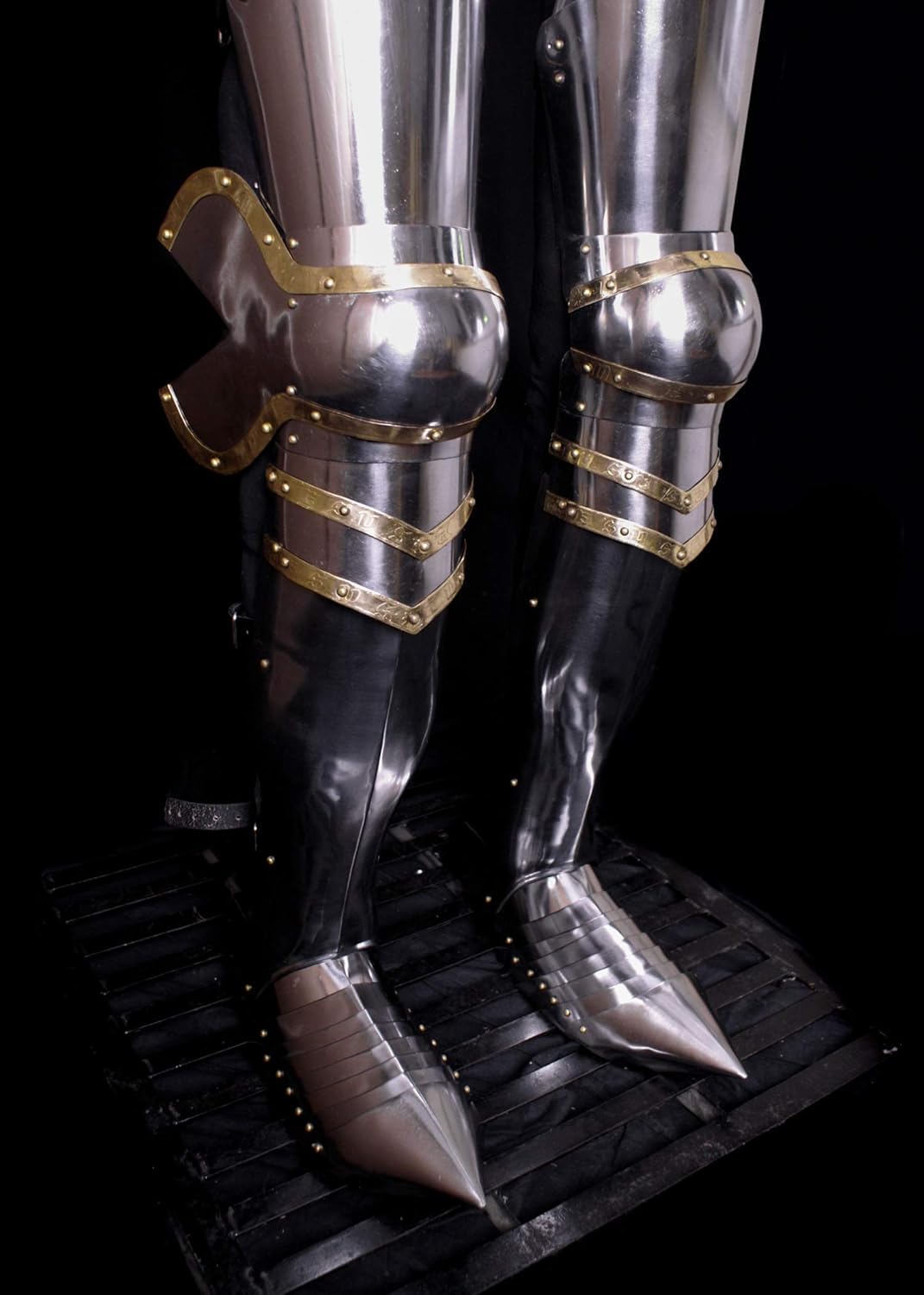 Replica storica: replica dell'armatura di un cavaliere del tardo medioevo del castello di Coira, ideale come oggetto da collezione o oggetto decorativo per rievocazioni e LARP Materiale robusto: realizzato a mano da ca. Acciaio da 1,2 mm con cinturini in pelle di vacchetta, offre un aspetto autentico e una lavorazione durevole per rappresentazioni storiche Dimensioni e vestibilità: peso totale ca. 23,7 kg, per altezza 175-180 cm, cinghie regolabili e meccanismo pieghevole per una regolazione flessibile, circonferenza del casco ca. 65 cm Design decorativo: Armatura a piastre completamente mobile con elmo hundsgugel, guanti, corazza e parti delle gambe, perfetta per l'esposizione o come accessorio per costumi Caratteristiche dettagliate: Include visiera pieghevole, cappello a catena, cappuccio imbottito, applicazioni e sabati in ottone, ideale per autentiche ambientazioni medievali
