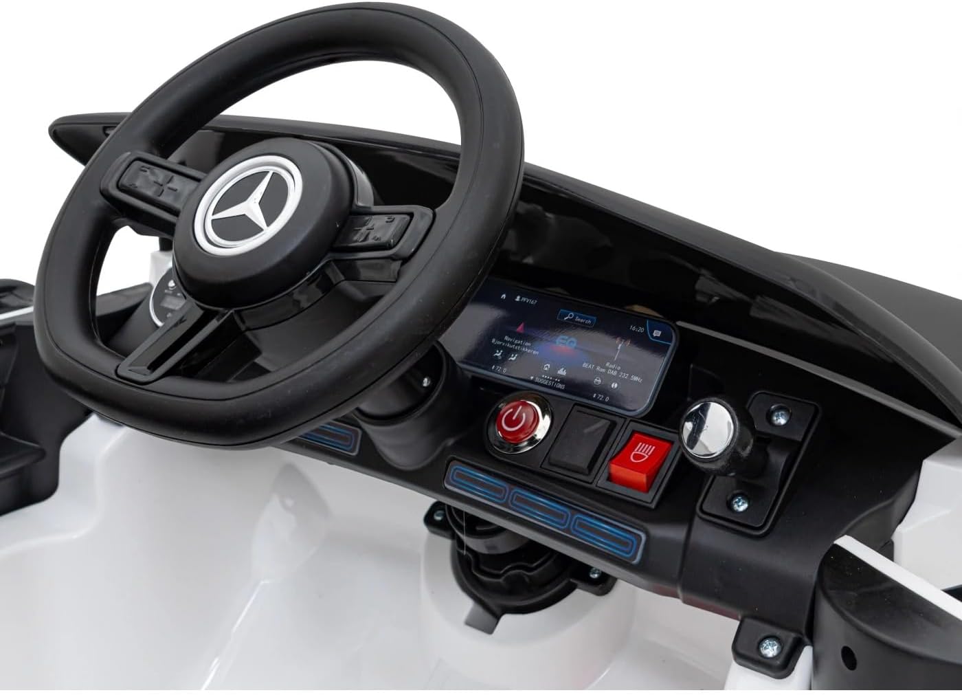 Età consigliata: per bambini da 1 a 3 anni. Batteria da 12 V e 7 A. 2 motori da 12 V. Telecomando Sedile in pelle e ruote in gomma EVA. Dimensioni: lunghezza 101 cm, larghezza 69 cm, altezza 53 cm. Peso auto 15 kg. Peso dell'imballo 18 kg. Carico massimo: 30 kg. Musica preregistrata, USB, ecc. Pulsante di arresto di sicurezza sul telecomando rc. Cintura a 5 ancoraggi.