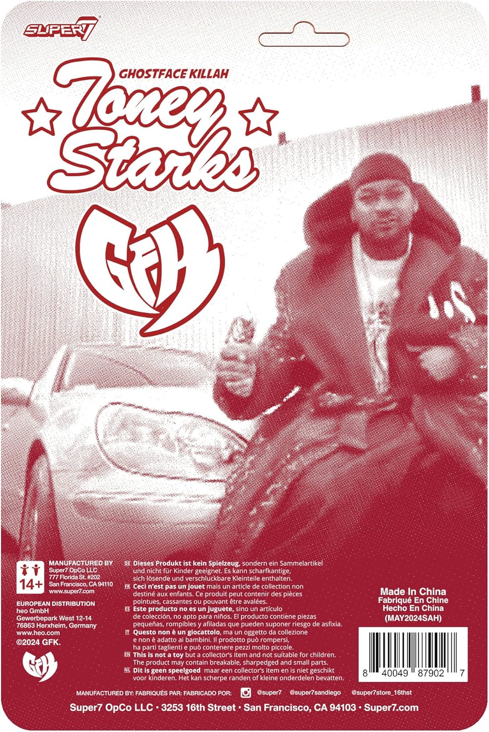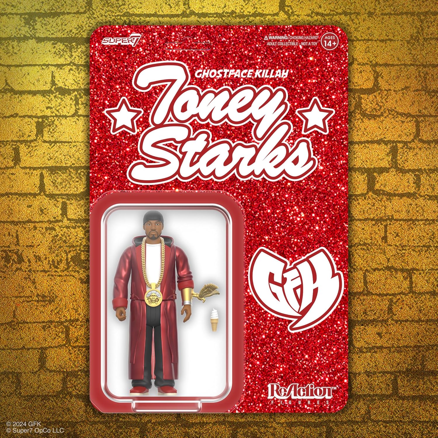 GHOSTFACE KILLAH Super7 ACTION FIGURE: Ghostface Killah come Toney Starks, ispirato al video musicale per la canzone di successo Apollo Kids, si unisce alla gamma di figure giocattolo d'azione Super7 ACCESSORI PRONTI PER IL CONCERTO: questa action figure viene fornita con accappatoio rosso perlato e guanto da aquila oro metallizzato, nonché cono gelato e accessori rimovibili per medaglioni, che consentono di immortalare canzoni iconiche del leggendario artista hip hop Figura d'azione da 9,5 cm: la figura Ghostface Killah è alta 9,5 cm con il resto della gamma di figure Super7 hip hop ReAction Figure d'azione premium: rivivi di nuovo i bei momenti con le nostre figure ReAction, classici giocattoli action figure in scala da 9,5 cm che si adattano al palmo della tua mano; con Mighty Morphin Power Rangers, G.I. Joe, Toho, Chi ha incastrato Roger Rabbit e altro ancora GIOCATTOLI E FIGURE DA COLLEZIONE: Da TMNT action figure e G.I. Joe skateboard decks to Power Rangers memorabilia e Toho Godzilla giocattoli, Super7 rende i perfetti oggetti da collezione retrò, giocattoli vintage e regali nostalgia per fanatici e collezionisti della cultura pop - Regali per Pasqua, compleanni o Natale