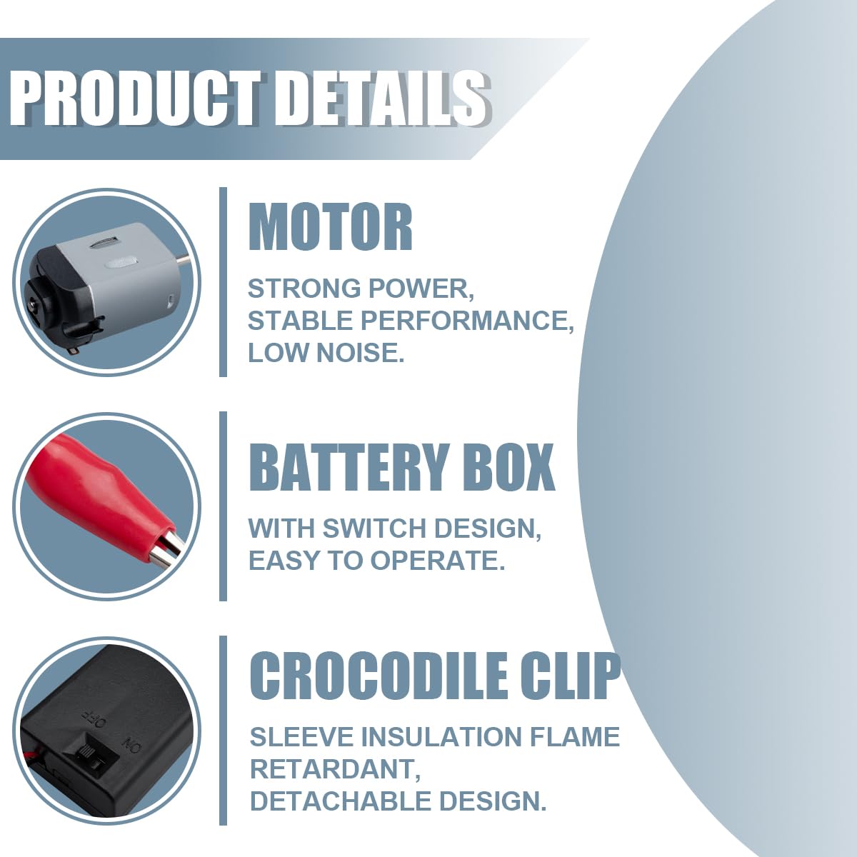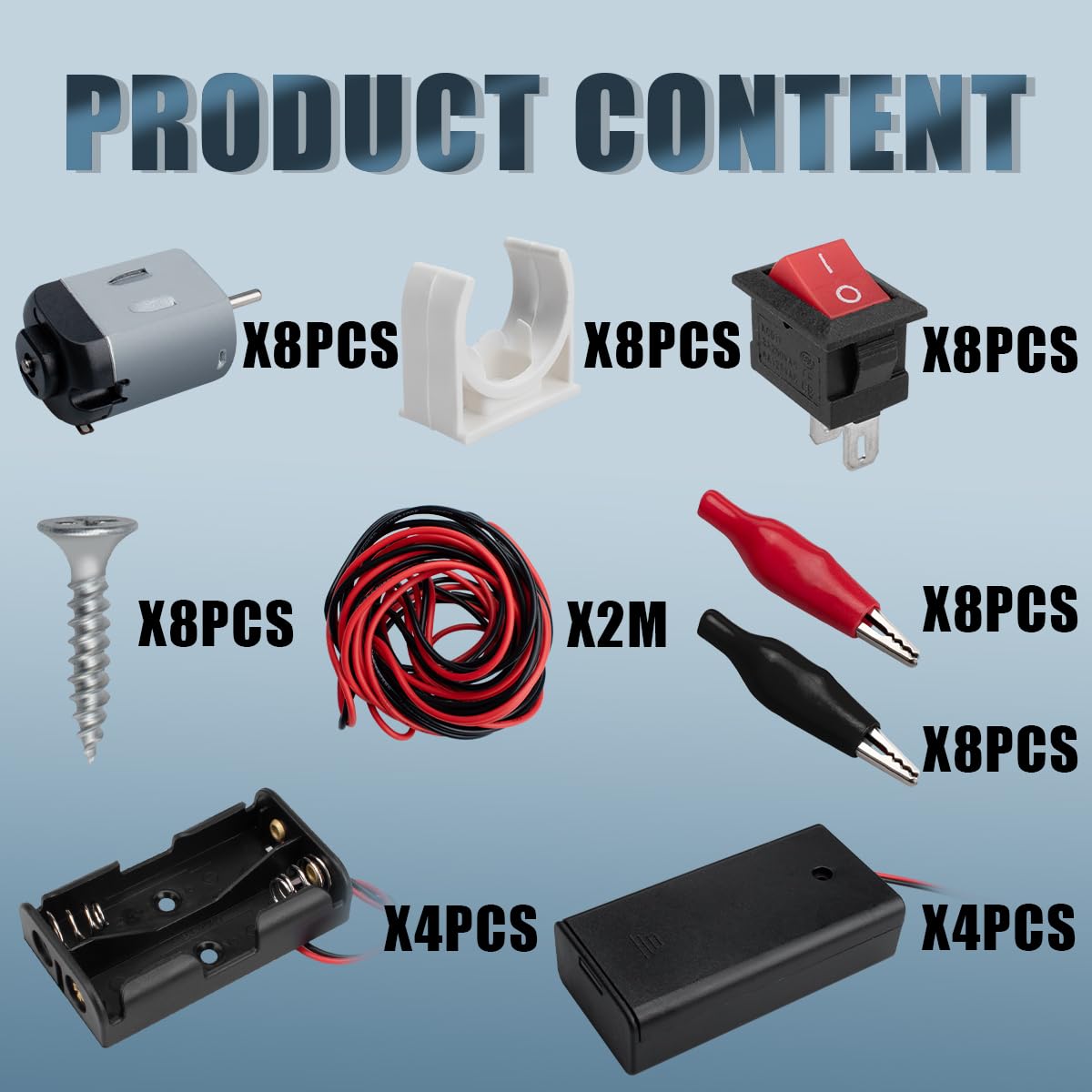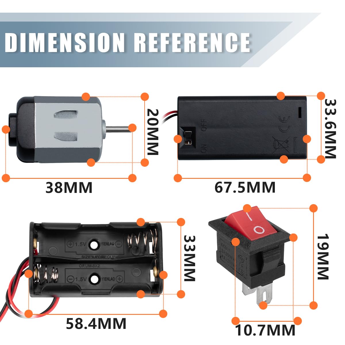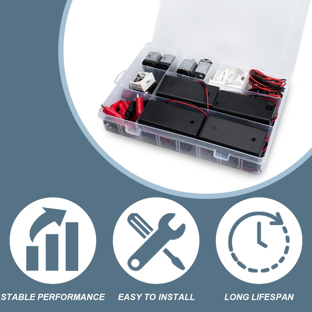 Contenuto della confezione: 8 micromotori con 8 supporti motore, 8 alloggiamenti batteria (4 cablati, 4 commutati), 2 cavi 22 AWG (2 m), 16 clip a coccodrillo (8 neri, 8 rossi), 8 interruttori a bilanciere per barche. Controllo motore: Voltaggio: 3 V-5 V, 19.000 giri/min. Applicazioni: Questo kit micromotore CC può essere applicato a piccoli giocattoli fai da te, come mini auto, mini robot e altri. vengono applicati kit elettrici. Il kit Micro Motorer: Contiene i supporti motore aiuta a fissare la posizione dei motori durante l'esecuzione delle operazioni. Nota: assicurarsi di utilizzare lo schema elettrico corretto per evitare cortocircuiti o danni da cortocircuito al kit micromotore.