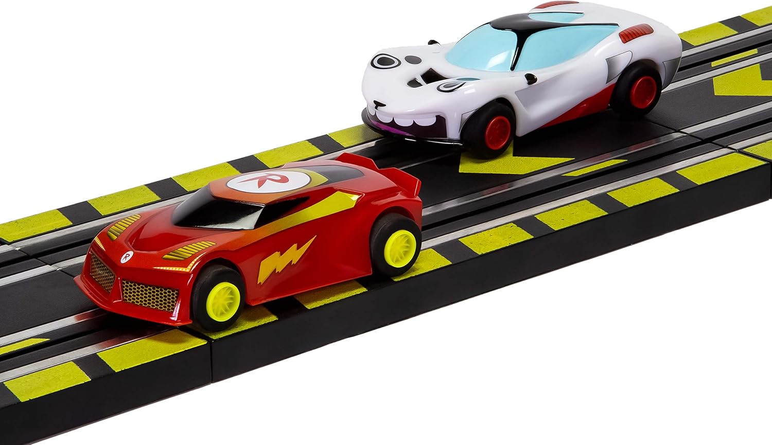 Punto di partenza ideale per il più giovane pilota di slot Codice di download esclusivo all'interno per Tag con Ryan APP gioco Pezzi della pista d'azione compreso un contatore del giro della trappola di Regolatori manuali facili di limitazione della velocità e 9 opzioni di layout della traccia Funzionamento a batteria (6 x AA non incluse)