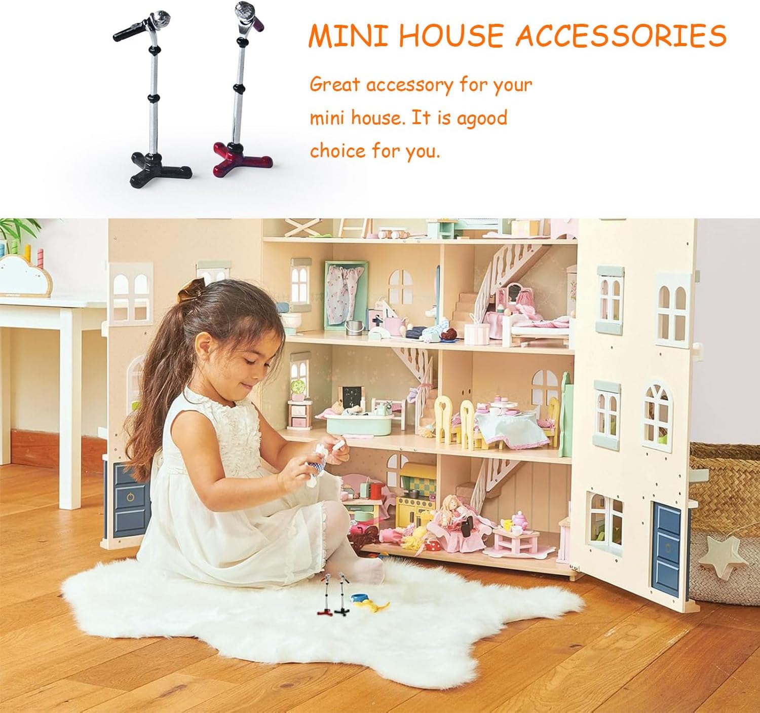 Squisito Artigianato: Realizzato in materiale di lega di alta qualità, durevole; aspetto realistico, che esalta il realismo del modello Applicazione Multiscena: Adatto per case delle bambole in scala 1/6 o 1/12, case di gnomi, ecc., aggiunge un fascino infinito al mondo in miniatura Comodo da Posizionare: Il design della staffa fissata è facile da fissare e posizionare in tutti i tipi di ambienti in miniatura Stimolare la Creatività: Fornire più spazio ai giocatori per creare, lasciarli liberi di organizzare e abbinare secondo le proprie idee per aumentare il divertimento del gioco Regalo Unico: Questo set di accessori per case delle bambole con microfono in miniatura è adatto per essere regalato agli amici che amano l'artigianato e le miniature, sia come giocattoli che come oggetti da collezione.
