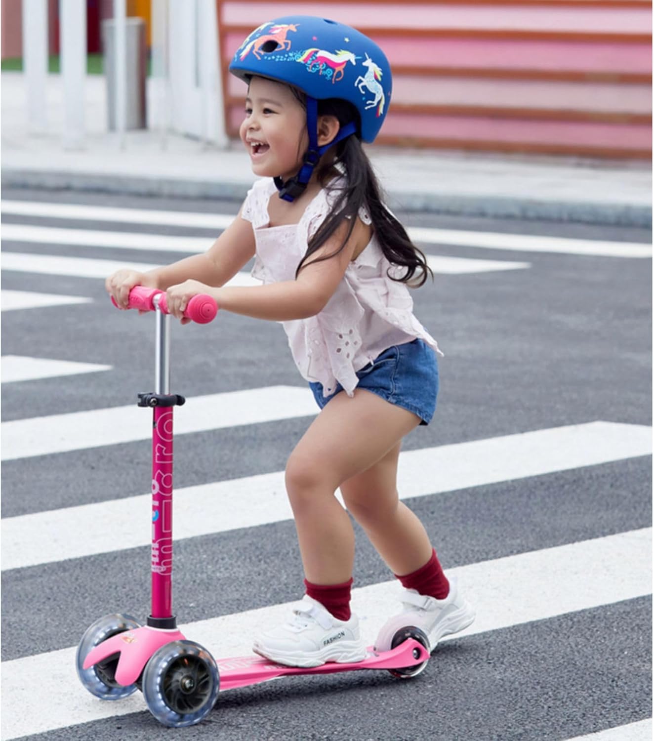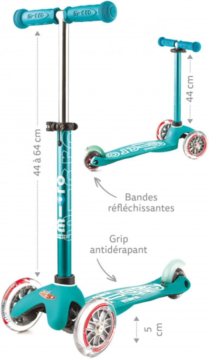 Questa versione Deluxe del Mini Micro è essenziale per i bambini dai 2 anni in su! Il manubrio è regolabile in altezza da 44 a 64 cm e si adatta all'altezza del bambino al centimetro più vicino. Il monopattino potrà evolversi con lui fino ai 5 anni! Le strisce riflettenti sui freni del monopattino garantiscono al bambino maggiore visibilità e sicurezza. Il sistema di navigazione per il trasferimento del peso inventato da Micro favorisce l'equilibrio e le capacità motorie. Questo esclusivo sistema Micro è molto intuitivo per i bambini: basta inclinarsi a destra o a sinistra per navigare. Il suo aspetto e il suo design sono unici: la tavola, il freno, il manubrio e le maniglie hanno colori coordinati. L'impugnatura con il logo Micro in rilievo garantisce inoltre una migliore presa al bambino. Il grande vantaggio di questo scooter? Le ruote luminose da 120 mm integrate nella parte anteriore dello scooter per ancora più visibilità e divertimento durante lo scooter! Le luci LED bianche funzionano con energia ad induzione: quando il bambino avanza, le ruote si illuminano. Ciò garantisce una lunga durata delle ruote e non è necessario sostituire le batterie.