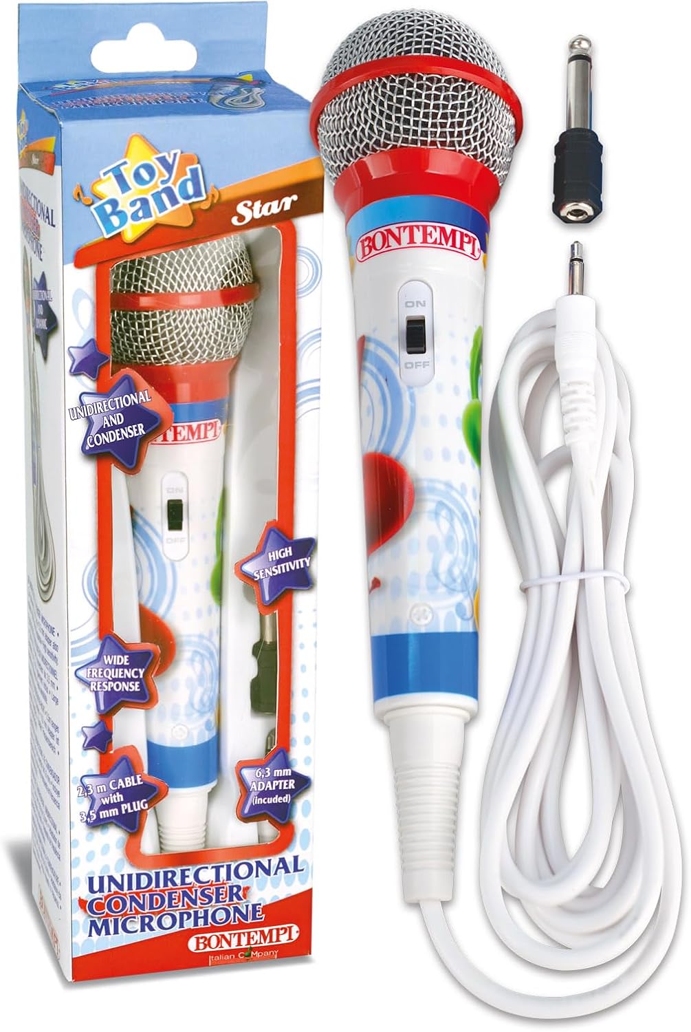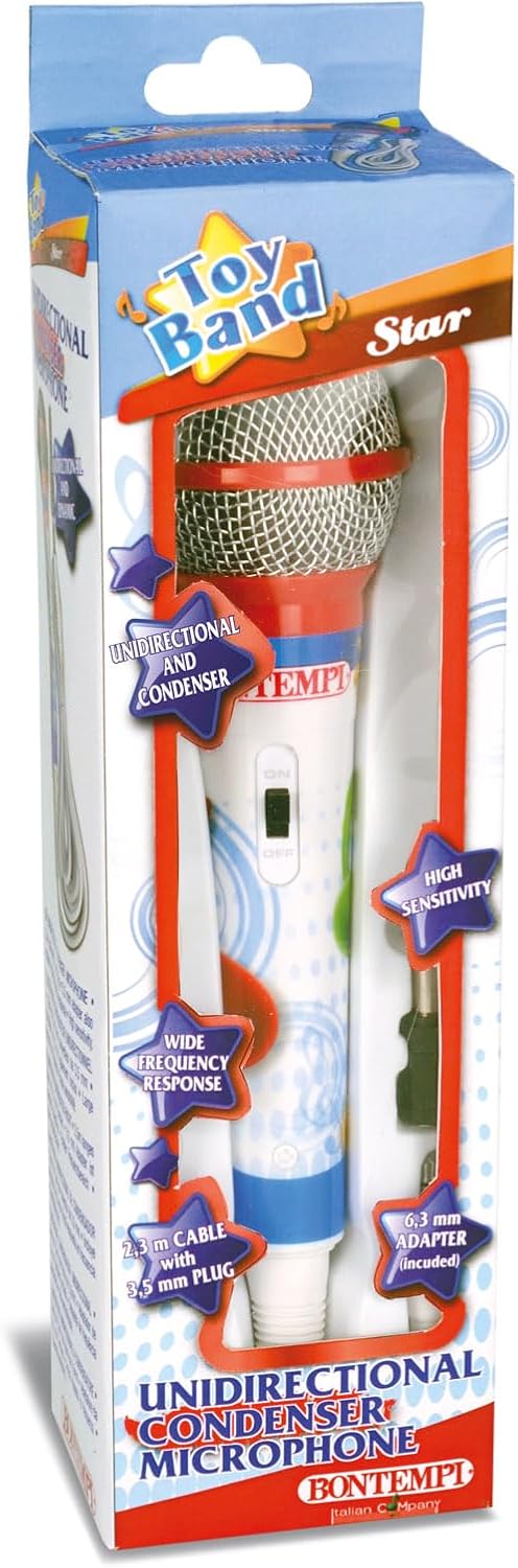 Adatto a tutte le tastiere BONTEMPI. Dimensioni del microfono: 6 cm x 6 cm x 22 cm Per cantare insieme alle tastiere BONTEMPI.