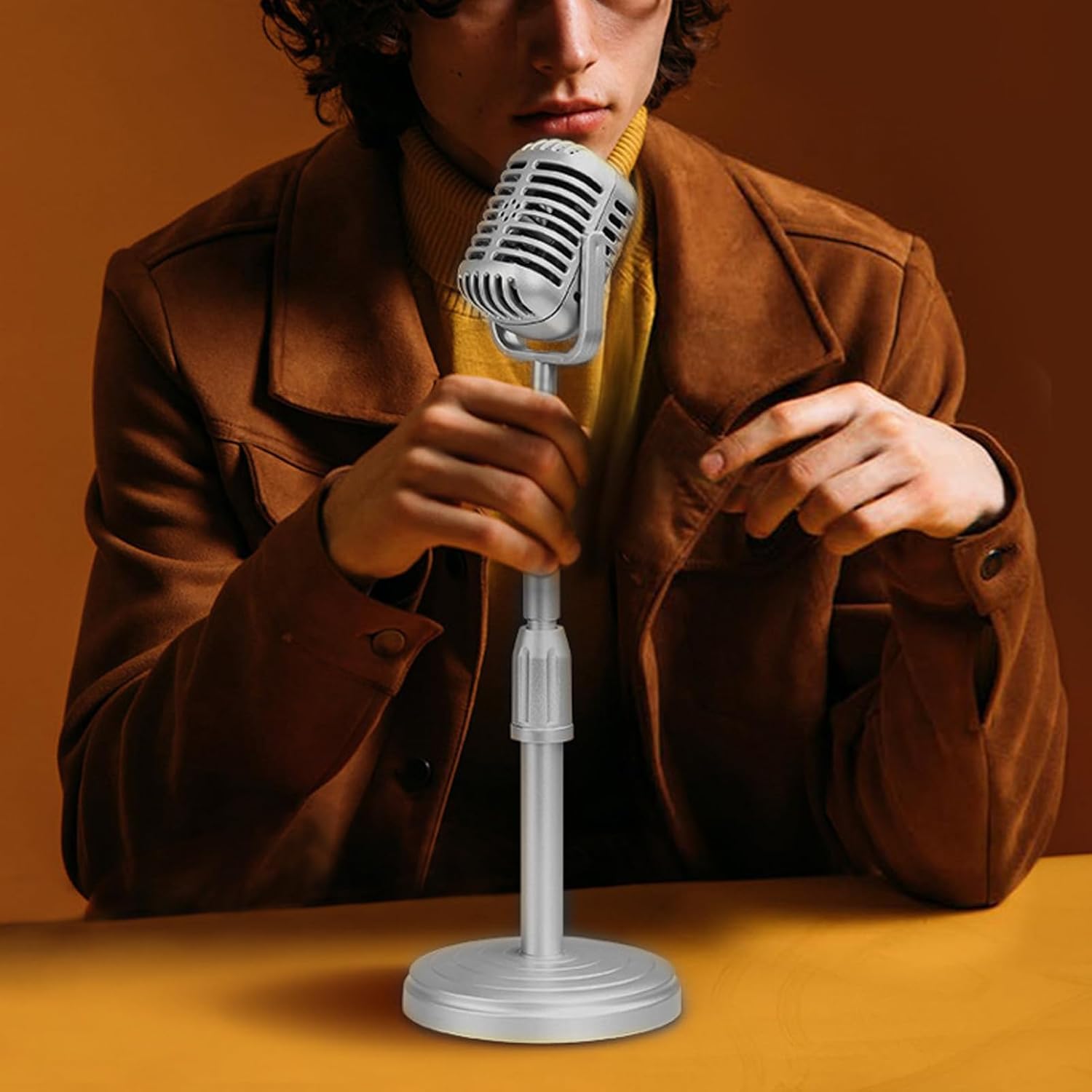 [Design Leggero] Ricorda un microfono tradizionale ma è leggero per un uso prolungato e una facile trasportabilità. [Scopo dell'Applicazione] Ideale per le prove di discorso, canto e danza, aiutandoti a preparare le esibizioni sul palco senza sforzo. [Decorazione Vintage] Ideale per interpretazioni di personaggi o scene d'epoca, aggiunge un tocco retrò sensazione nostalgica. [Migliora il Tuo Gioco di Ruolo] Microfono finto ideale per scene anime, aggiunge autenticità alla tua interpretazione durante esibizioni sul palco. [Altezza regolabile] Dotato di un supporto sollevabile per diverse esigenze di gioco, rendendolo versatile per varie composizioni sceniche.