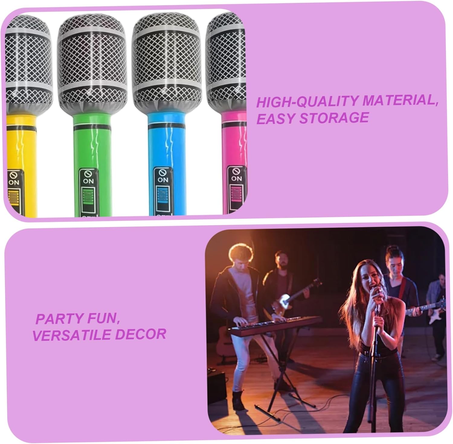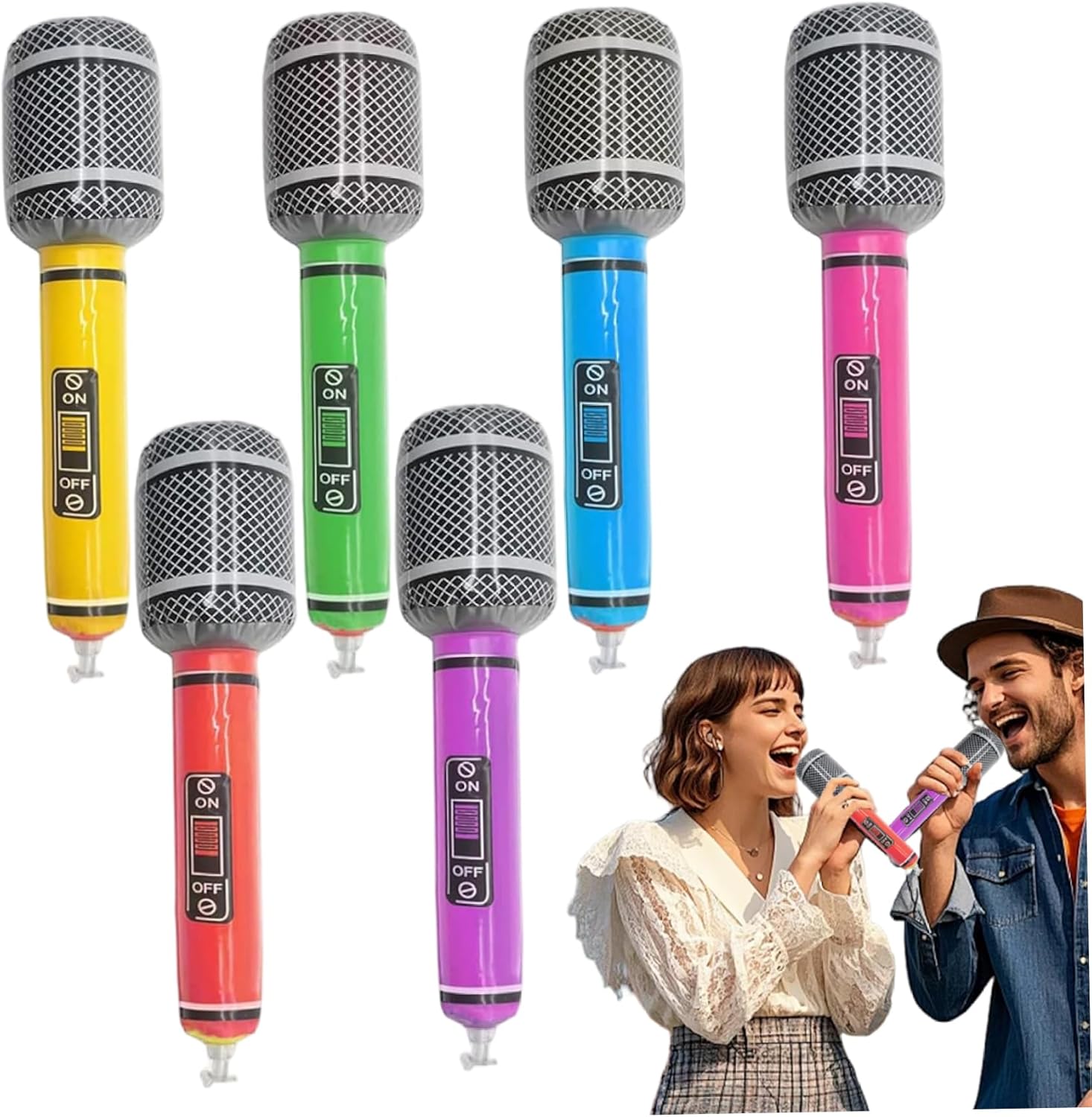 PROPEGGI PARTY VERATHILE: Sia che tu stia ospitando una notte di karaoke, una festa di compleanno a tema musicale o un evento in stile, questi microfoni gonfiabili sono oggetti di scena versatili che soddisfano vari temi e attività. Microfono infiammabile Robusto e leggero: realizzato in materiale in PVC, questi microfoni gonfiabili sono ancora leggeri..Possono resistere a più usi senza strappare o perdere forma, garantendo un divertimento duraturo per gli ospiti della tua festa..Far esplodere microfoni gonfiabili al microfono per le parti Perfetti per le feste: questi microfoni Blow-Up in PVC da 6 pezzi da 13 pezzi sono ideali per feste a tema da concerti musicali, aggiungendo elementi divertenti e interattivi a qualsiasi celebrazione..Il design vibrante e la forma realistica li rendono perfetti per oggetti di scena fotografici o spettacoli teatrali..Microfoni gonfiabili per le parti del microfono Facile da gonfiare e conservare: ogni microfono si gonfia rapidamente con solo pochi respiri, rendendo la configurazione un gioco da ragazzi..Quando non sono in uso, si sgonfiano facilmente e possono essere archiviati in modo compatto, risparmiando spazio nella raccolta delle forniture del tuo partito..Strumenti gonfiabili a proposito microfono Accensione e divertimento: i colori vivaci e il design realistico di questi microfoni gonfiabili attireranno sicuramente l'attenzione e aggiungeranno un tocco giocoso alle decorazioni del tuo partito..Fanno eccellenti antipasti di conversazione e migliorano l'atmosfera generale della festa..Strumenti gonfiabili