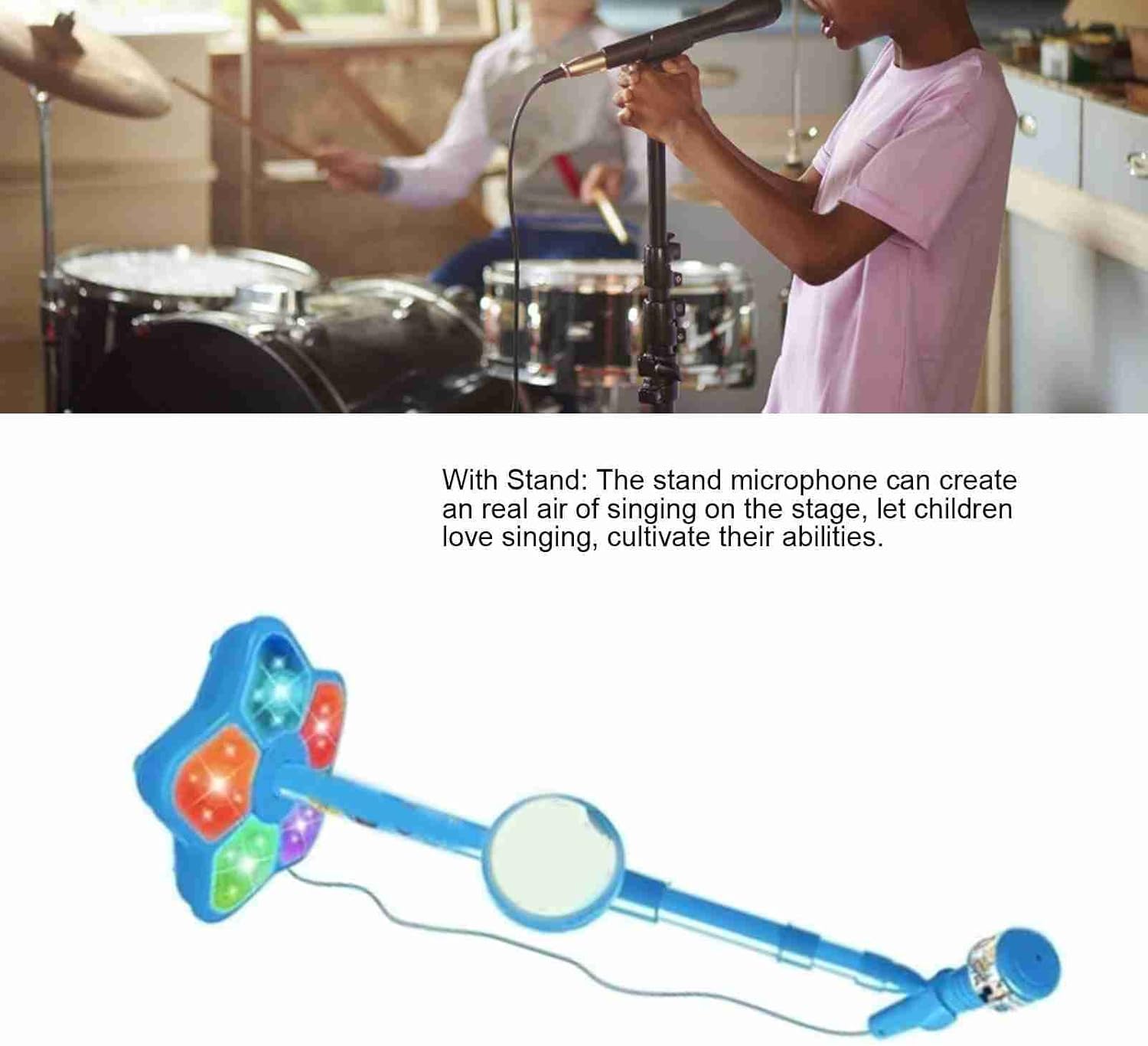 Ampiamente usato: microfono stand, adatto a bambini e adulti per esercitarsi e condividere le loro canzoni preferite sulle app musicali, facendo innamorare i bambini di canti, buoni per incontri di famiglia, asili, spettacoli per bambini e altro ancora Supporto della staffa: il simpatico microfono è dotato di supporto del tutore che tiene saldamente il microfono, creando una vera atmosfera di canto sul palco, permettendoti di cantare senza tenere il microfono in modo che i bambini possano innamorarsi del canto Impostazioni di illuminazione: il giocattolo per microfoni per bambini multifunzionale ha un dispositivo a emissione di luce integrata che può aumentare l'atmosfera, permettendo ai bambini di godersi un'atmosfera piacevole mentre cantano, permettendo ai bambini di divertirsi di più e può cantare in qualsiasi momento Leggero e portatile: il microfono karaoke è compatto, la dimensione del prodotto è di circa 100 x 21 cm/39,4 x 8,3 pollici e il peso complessivo è leggero. I bambini possono tenere il microfono da soli e i loro palmi non si sentiranno stanchi, rendendo più conveniente giocare carino: il microfono può dare ai bambini un forte senso di ritmo e amare cantare. Puoi dare loro questo microfono come di compleanno o per le vacanze per coltivare il loro interesse per la musica, oppure può essere utilizzato per l'intrattenimento quotidiano. Puoi dare loro questo microfono come di compleanno o per le vacanze per coltivare il loro interesse per la musica, oppure può essere utilizzato per l'intrattenimento quotidiano, gli piacerà