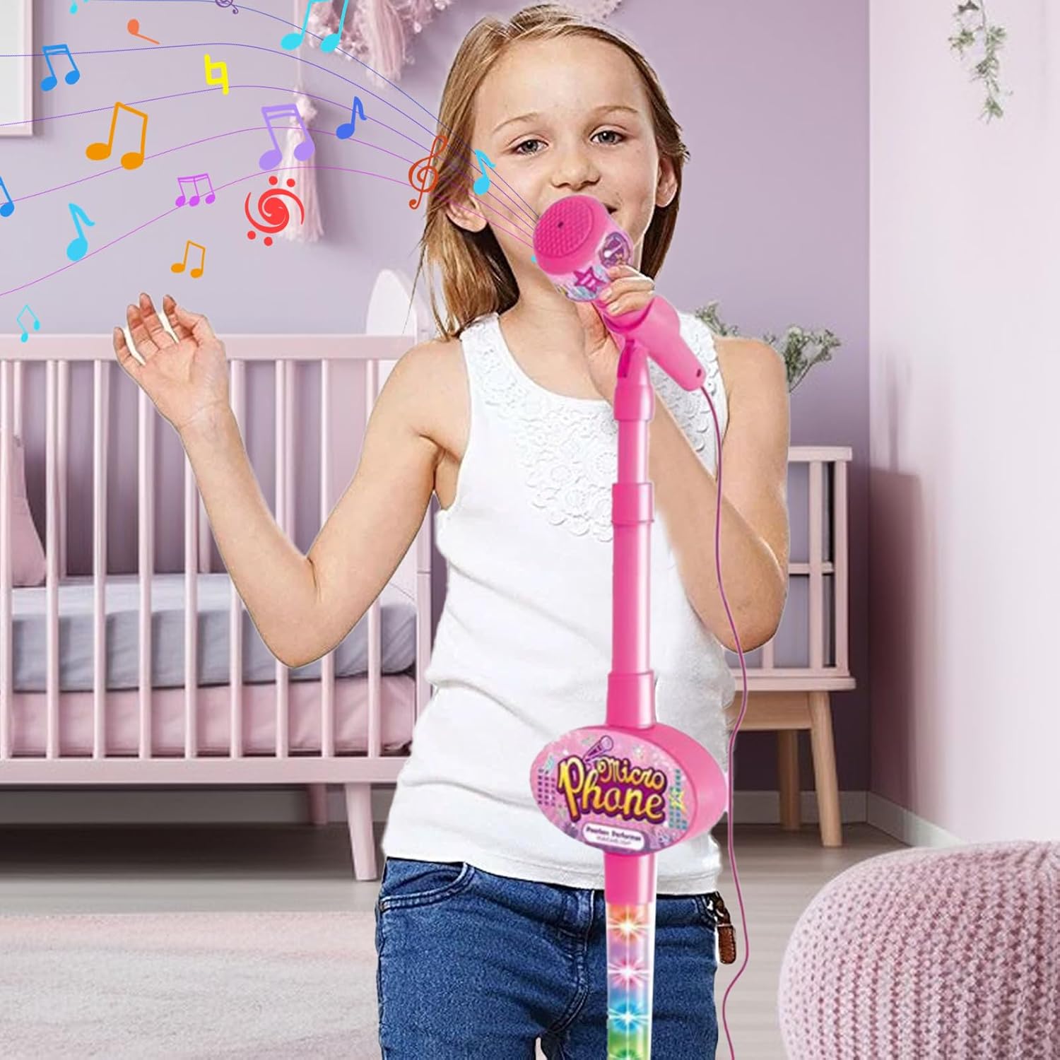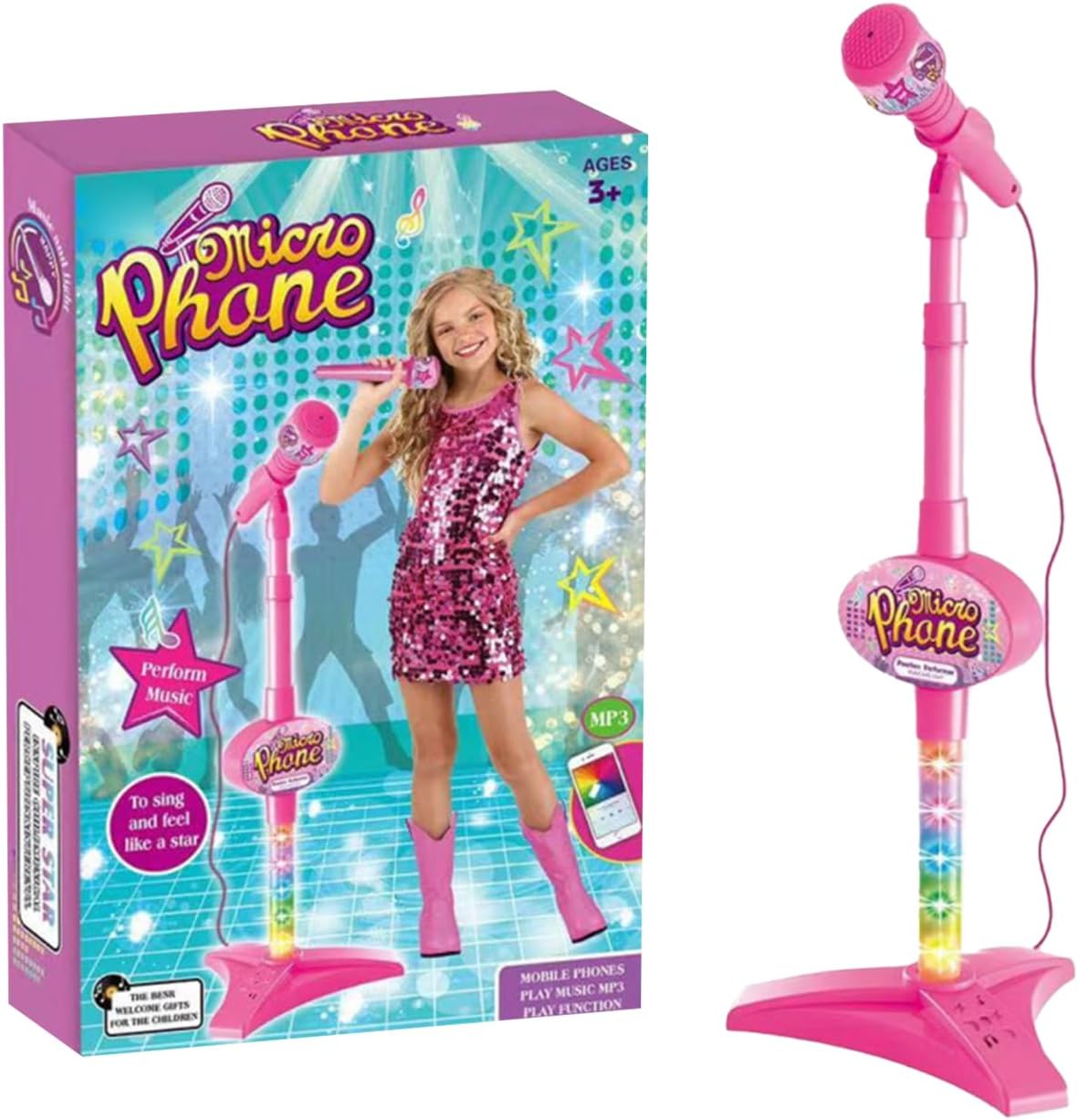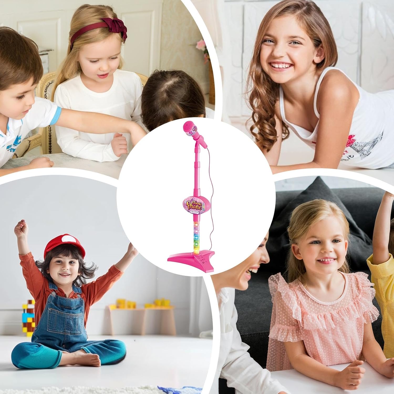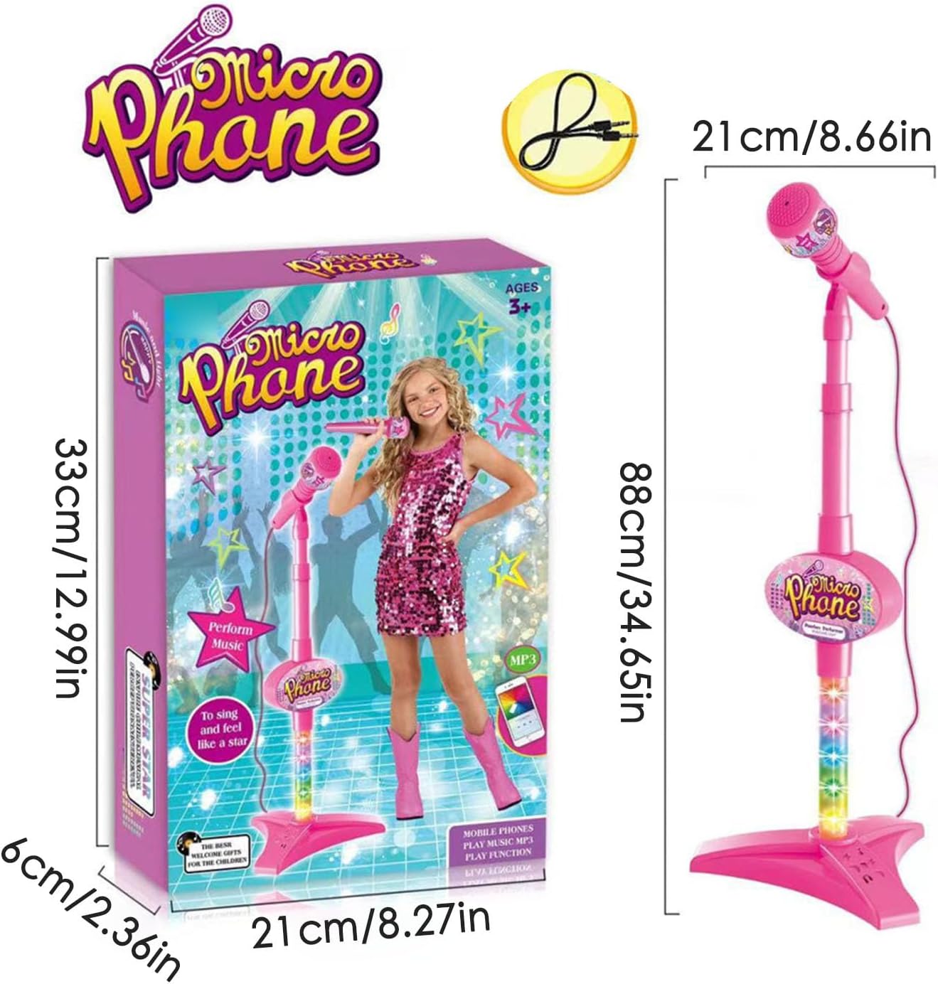 Luci del palco lampeggianti: il microfono per bambini è fantastico. Facile connettività audio: collegando lettori MP3, telefoni cellulari e altri dispositivi, i bambini possono godere di più opzioni musicali e rilassarsi durante le attività o i giochi, rendendoli più motivati a dimostrare le proprie abilità. Goditi esperienze musicali: rendi felici i bambini e aggiungi meravigliosi ricordi alla loro vita; Ideale per valorizzare festival e feste di compleanno, un regalo perfetto per le bambine. Struttura durevole: realizzato in resistente materiale ABS, questo robusto microfono giocattolo per bambini può resistere a giochi pesanti ed è ideale per un uso a lungo termine. Portatile Canta insieme: con un supporto rimovibile che si adatta a tutte le posizioni di canto, è perfetto per il divertimento. Preparalo e goditi infinite ore di canto ovunque e in qualsiasi momento