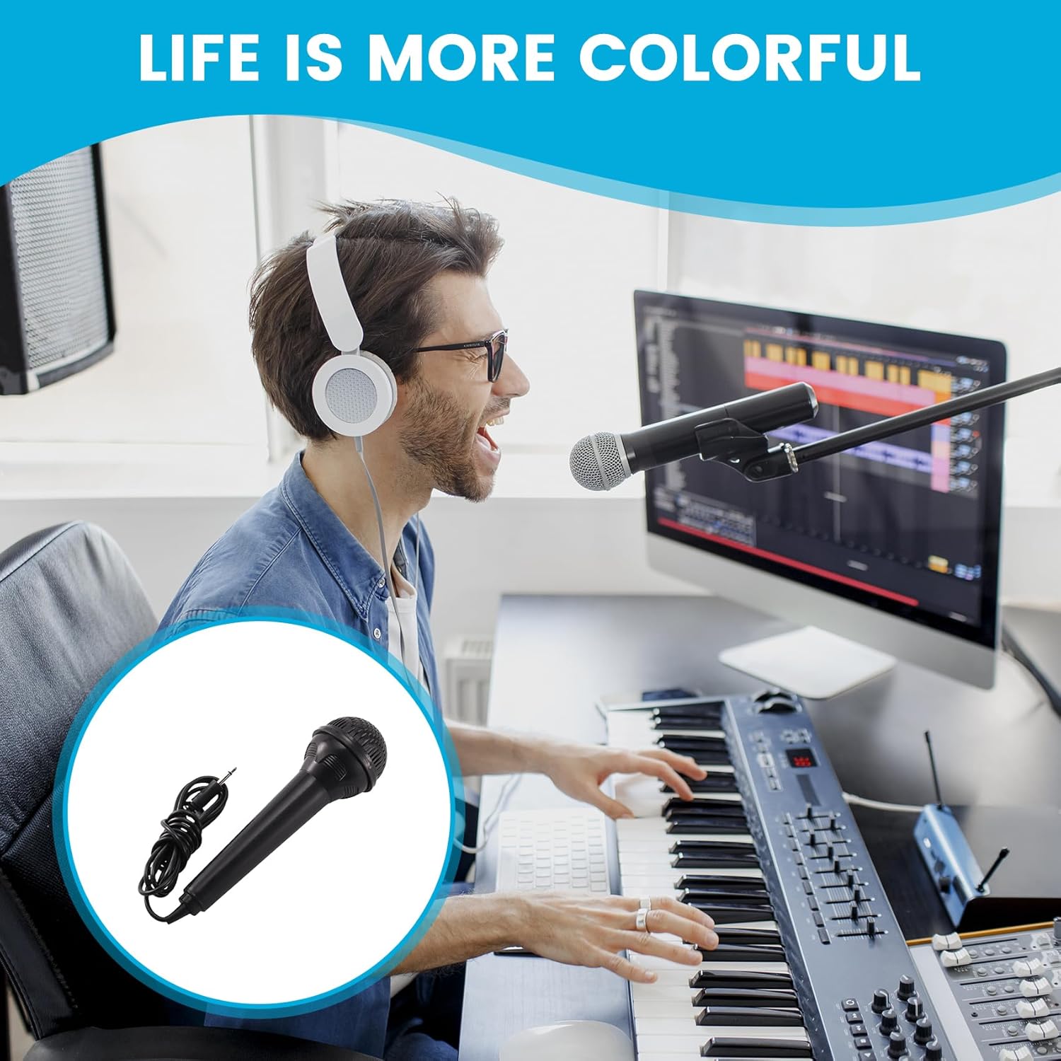 Microfono per tastiera Microfono portatile per tastiera piccola da 3,5 mm per bambini Tastiera per pianoforte elettronico per principianti Specifica: Peso: circa 50 g materiale: plastica Colore: nero