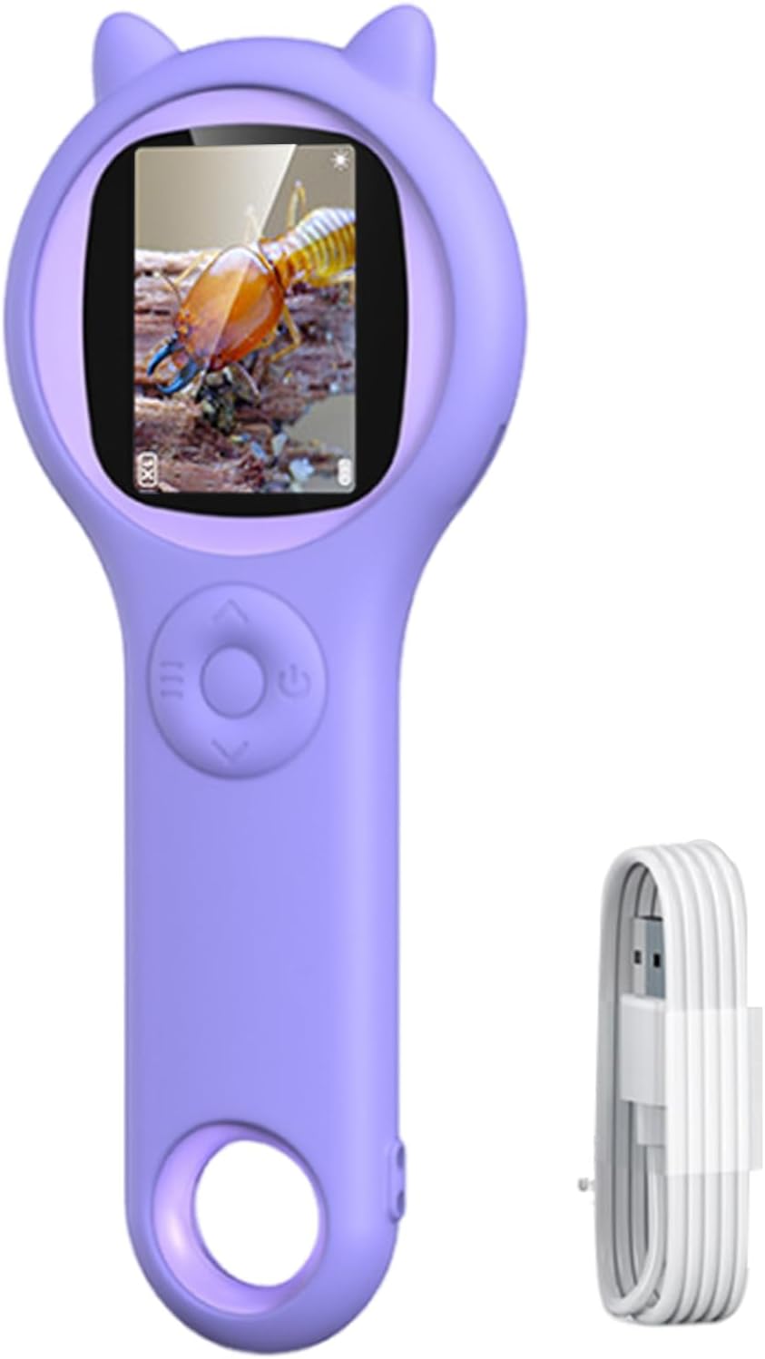 Esplorazione versatile: consente esami flessibili attraverso una lente d'ingrandimento da terra, funzione a doppia lente e una lente creativa dell'orecchio di gatto per un'esperienza coinvolgente durante la visualizzazione di diversi campioni Impugnatura comoda ergonomica: la struttura leggera e portatile combinata con l'impugnatura comoda lo rende ideale per i bambini per il trasporto e l'uso Facile da trasportare: consente l'apprendimento continuo attraverso un miglioramento dell'esame degli oggetti con un microscopio portatile, ideale per le avventure di giovani scienziati Regalo consigliato: un mix riuscito di divertimento ed educazione, questo microscopio per bambini con display vivace è un regalo eccellente che promuove la curiosità e migliora le esperienze di apprendimento Immagini vivide: l'eccellente display IPS da 2,0 pollici offre immagini luminose e nitide per un apprendimento efficace e divertente, ideale per la microscopia a misura di bambino.
