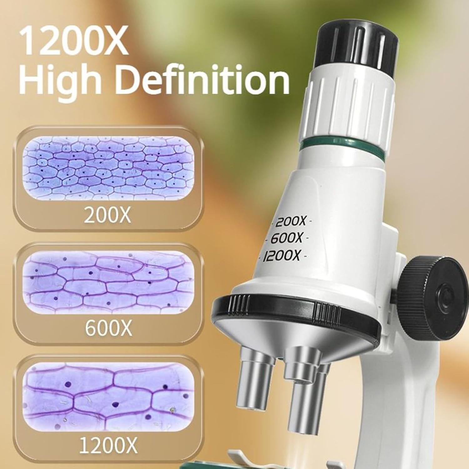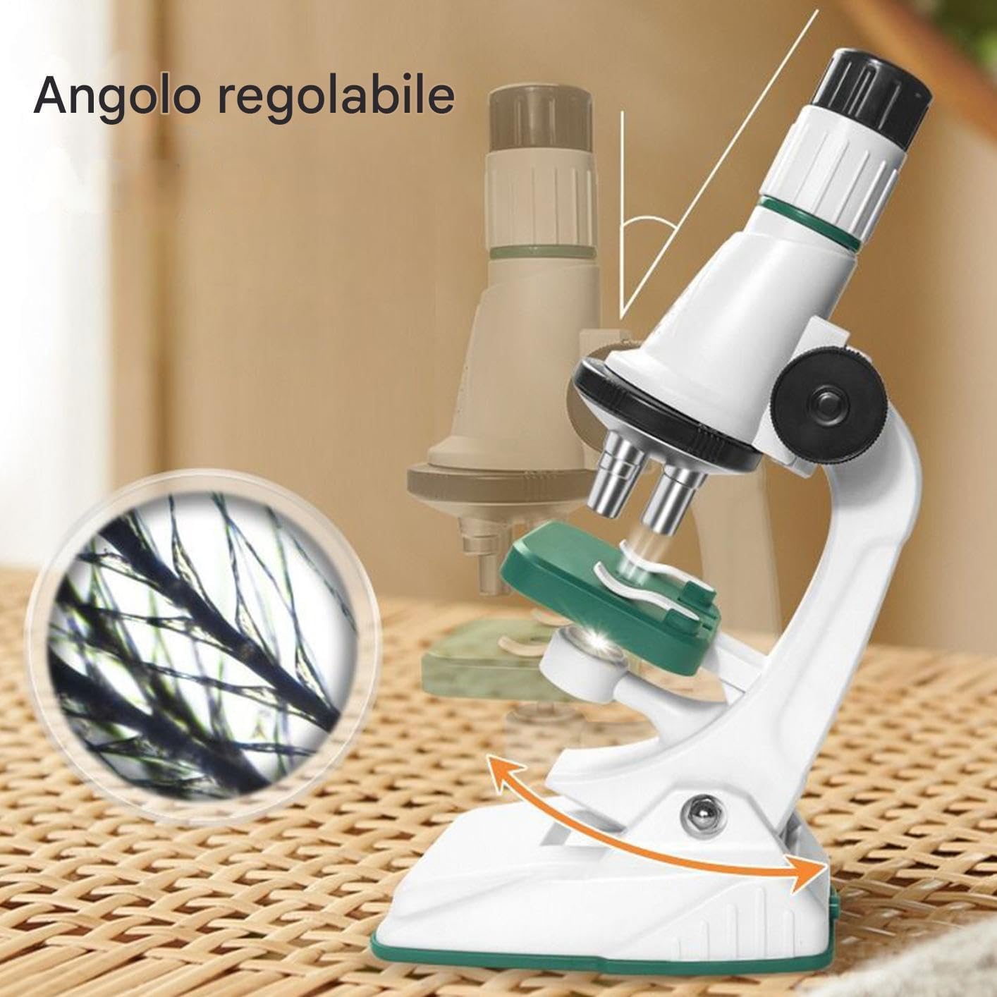 Fonte Energetica Costante: Dotato di erogazione energetica stabile e luci LED efficienti, il vano batterie adattabile garantisce prestazioni affidabili durante lunghe sessioni di microscopia Sviluppo Analisi Logica: Questo microscopio educativo incoraggia l'esplorazione scientifica nei bambini, potenziando le capacità di analisi logica e concentrazione attraverso l'osservazione pratica, costruendo un solido framework cognitivo sistematico per giovani apprendisti Soluzione da Viaggio: Realizzato per la praticità, questo microscopio compatto è leggero, facile da trasportare e progettato per entrare in zaino, offrendo mobilità semplice e uso efficiente delle aree di archiviazione disponibili per piccoli scienziati Impiego Multifunzione: Progettato per l'analisi di campioni naturali e materiali quotidiani, consente ai bambini di investigare dettagli invisibili a occhio nudo, alimentando la passione per la scienza con attività esplorative sicure e coinvolgenti Stimola la Curiosità Scientifica: Questo microscopio è progettato per soddisfare le esigenze esplorative dei bambini, offrendo un ingrandimento regolare da 200X a 1200X per osservazioni ad alto dettaglio che permettono di visualizzare chiaramente le strutture cellulari e arricchire le esperienze di apprendimento attraverso la scoperta scientifica pratica e coinvolgente per giovani scienziati