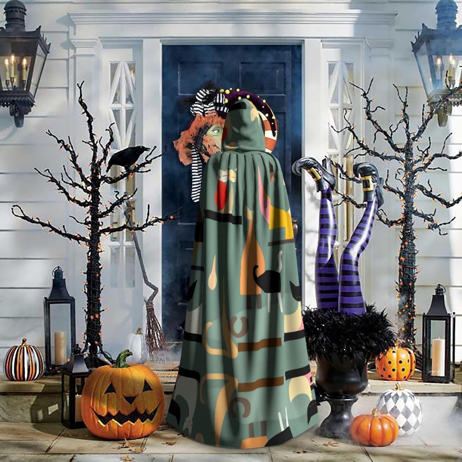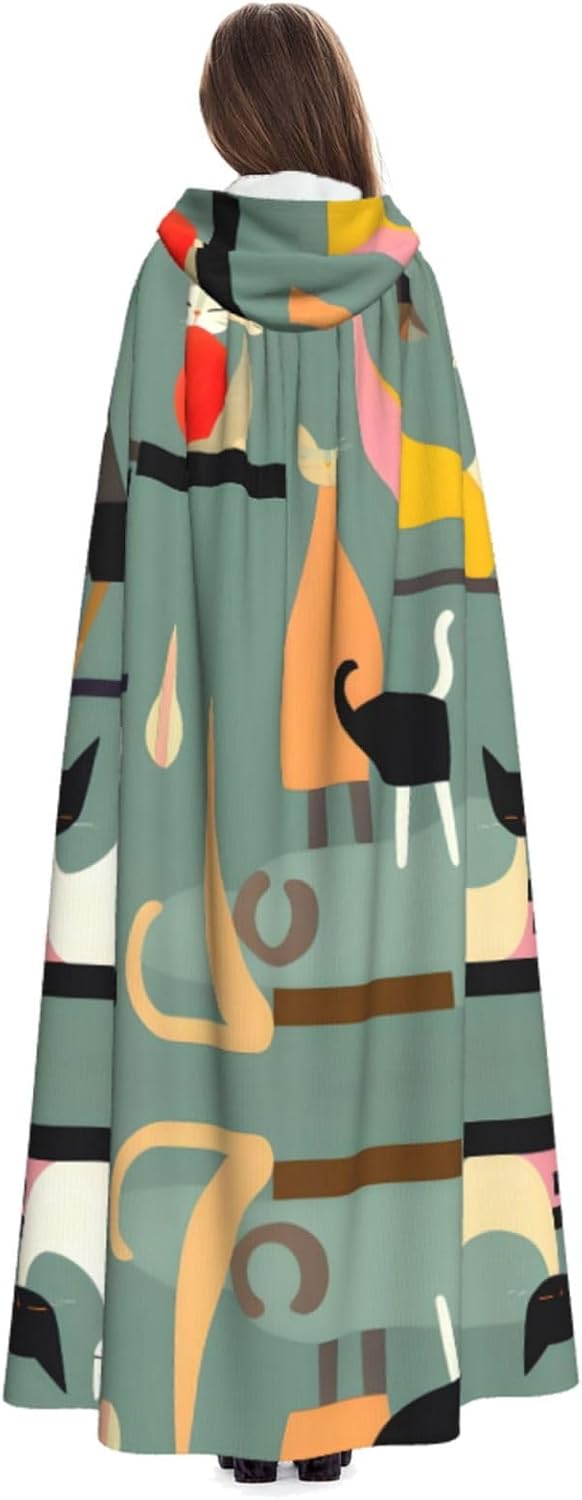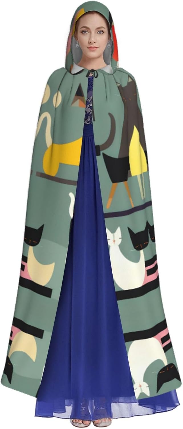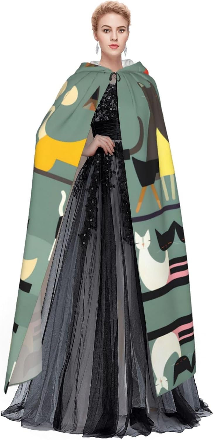Mid-Century - Mantello da strega medievale per Halloween, arte moderna, per gatti, mantello nero