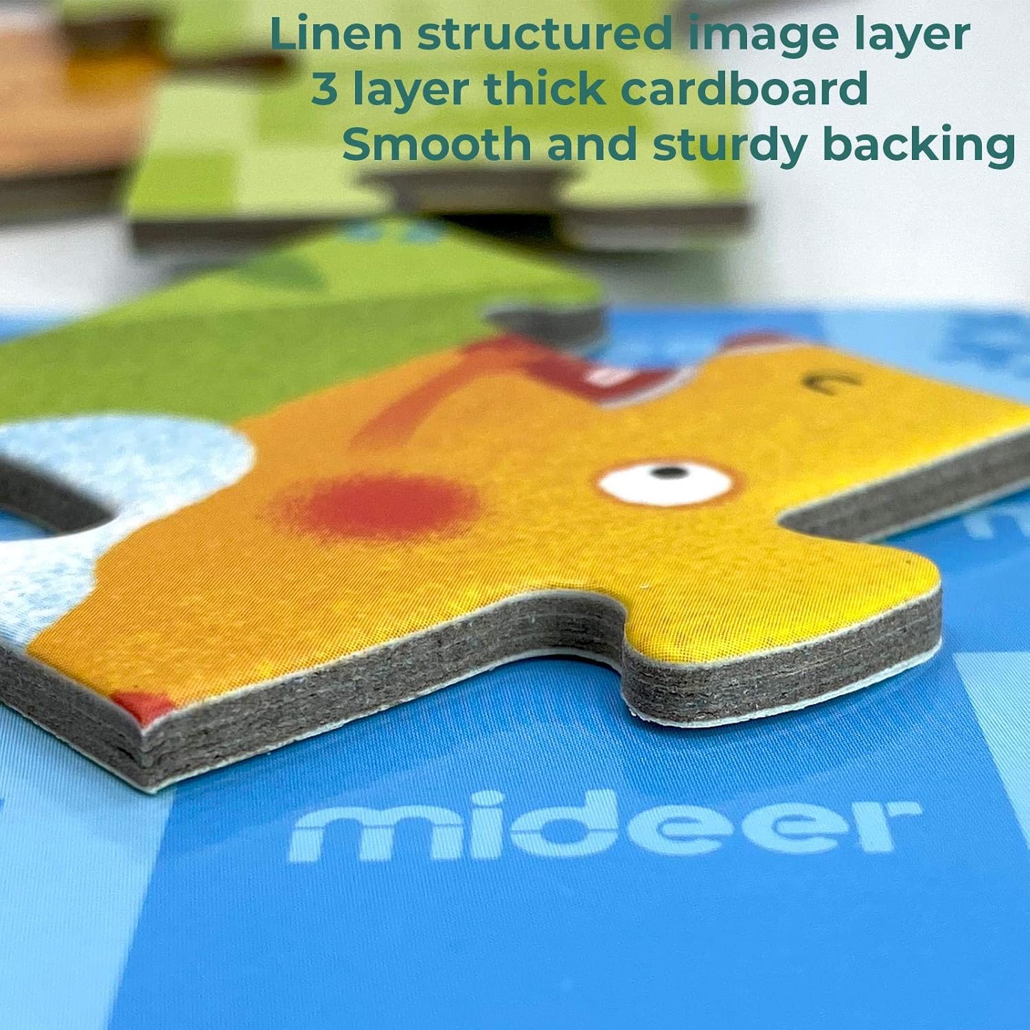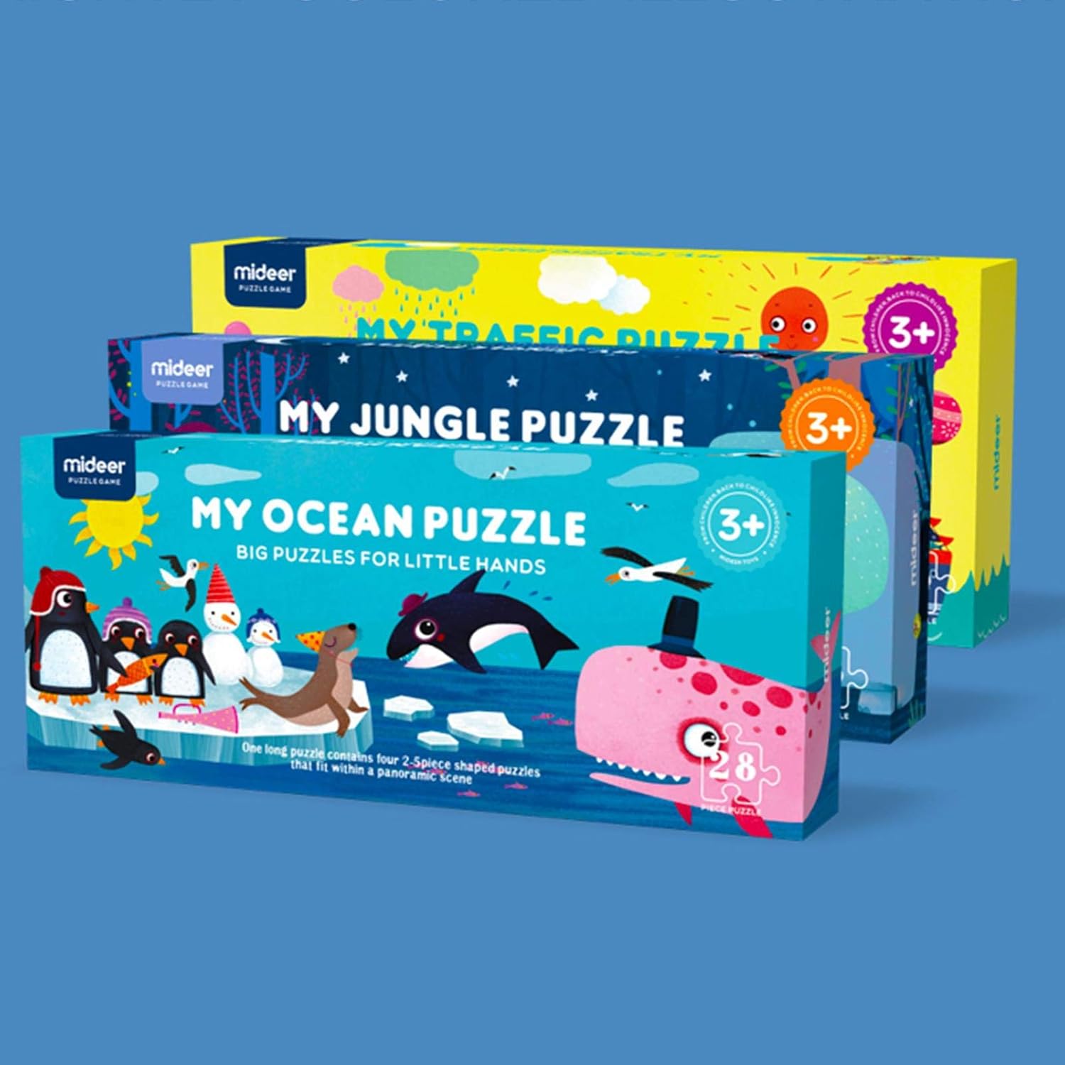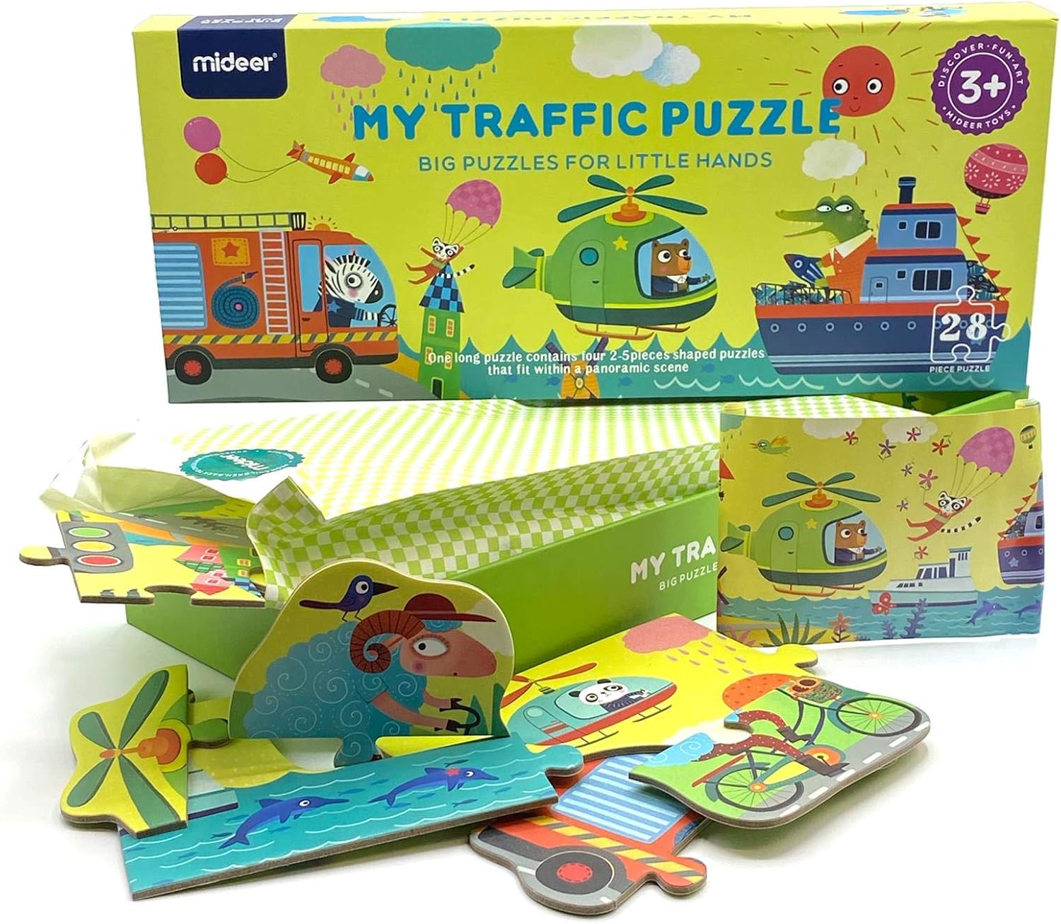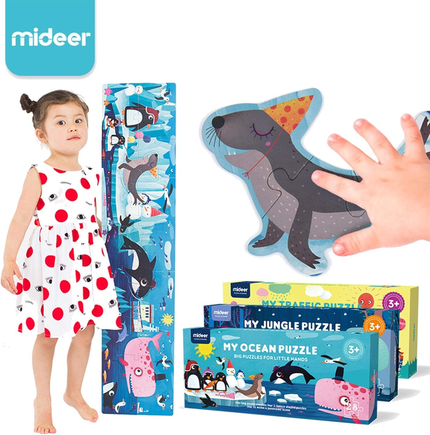 5-in-1 2 stadi puzzle per il pavimento di JigSAW: Ogni puzzle contiene una serie di 4 puzzle di forma più piccola di forma animale o veicolo a forma di per costruire prima, permettendo ai piccoli puzzle di guadagnare fiducia costruendo puzzle più piccoli prima di completare il puzzle più grande ambiente. Possono quindi aggiungere i puzzle più piccoli per completare l'intero puzzle. 28 pezzi di puzzle grandi e spessi: i 3 strati di cartone extra spesso sono realizzati con una superficie morbida, bordi arrotondati e un retro liscio e robusto, offrendo una sensazione tattile per le dita piccole. Temi e fogli di immagine: scegli tra il puzzle MY Ocean, il mio puzzle giungla o il mio puzzle traffico. Ogni puzzle viene fornito con un foglio di immagine pieghevole per aiutare a mettere insieme il puzzle e viene fornito in una robusta scatola colorata illustrata. Dimensioni puzzle: 100 x 22 cm. AUMENTARE LE COMPETENZE COGNITIVE & SVILUPPO : I puzzle e la costruzione di forme sono 2 compiti altamente benefici che incoraggiano la crescita cognitiva nei primi anni di sviluppo di un bambino. Le competenze fondamentali rafforzano e aiutano a costruire il senso di percezione, attenzione, memoria, apprendimento e processo decisionale di un bambino. Mideer: la gamma di puzzle Mideer offre un'ampia selezione di divertenti e divertenti puzzle per bambini, tra cui: 4 in 1, fiabe, segreti e detective, scatola per il trasporto, forme circolari, forme animali, mappa puzzle magnetica, puzzle segreti e detective e il mio primo puzzle les.