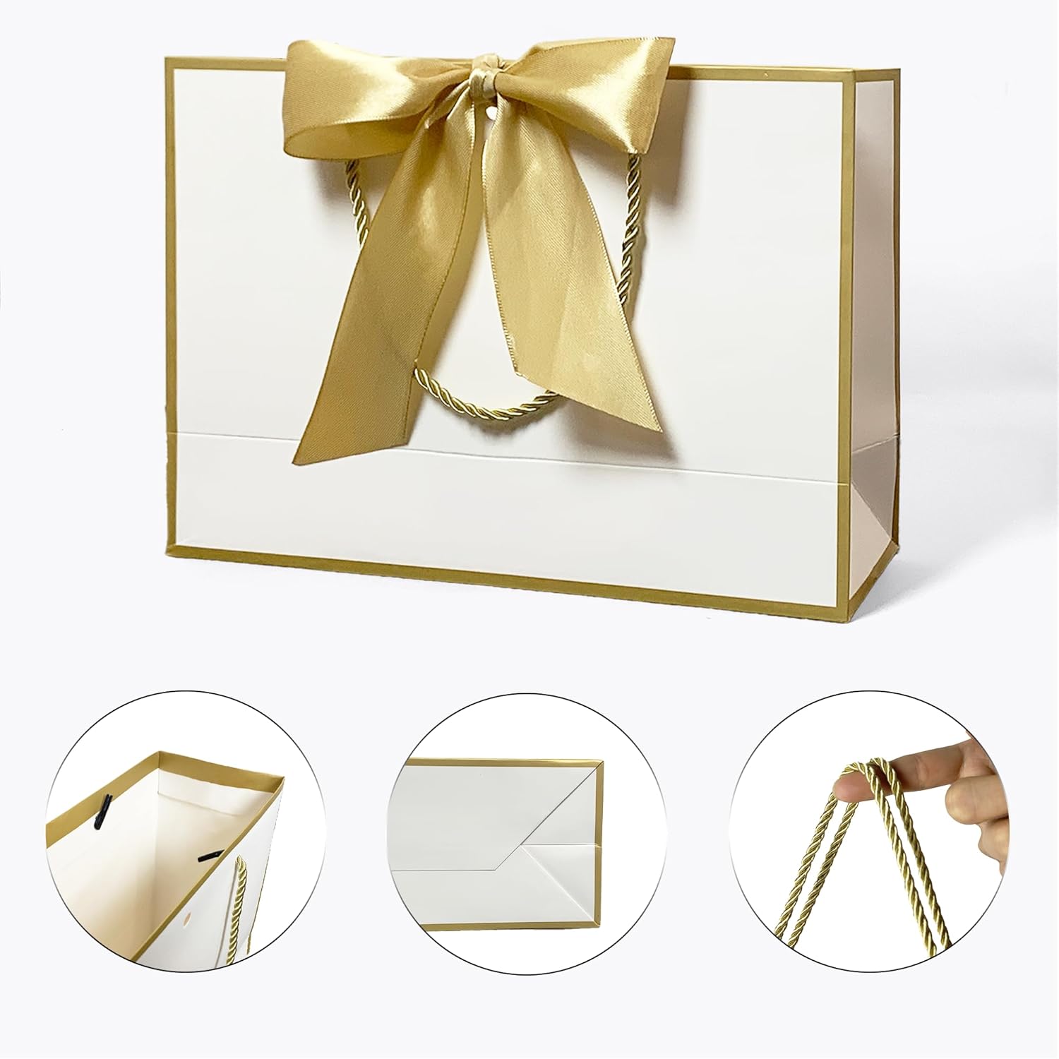 🌈 Confezione sofisticata: il nostro set di sacchetti regalo presenta un'elegante borsa decorata con un lussuoso fiocco dorato che aggiunge un tocco di raffinatezza alla tua presentazione regalo. Ottimo per compleanni, matrimoni e regali di damigelle d'onore per le donne. Dimensioni: 20 cm x 10 cm x 28 cm. 🌈 Utilizzo Versatile: Ideale per diverse occasioni come compleanni, matrimoni, anniversari ed eventi aziendali per rendere ogni regalo indimenticabile. Viene fornito con carta velina. 🌈 Materiale di qualità: realizzato con materiali robusti e di alta qualità che garantiscono che la borsa mantenga la sua forma e dimensione per contenere regali di diverse dimensioni. Viene fornito con carta velina. 🌈 Set completo: ogni sacchetto regalo viene fornito con carta velina che fornisce un ulteriore livello di eleganza e sorpresa quando viene scartato. Ideale per regali di medie dimensioni. 🌈 Nota personale: un piccolo biglietto ti consente di scrivere messaggi personali per esprimere i tuoi calorosi auguri o gratitudine. Presentato in un sacchetto regalo ricoperto di carta velina.