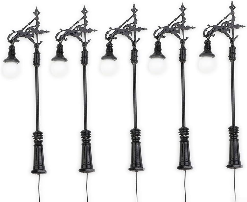 Luci LED luminose: le luci stradali a forma di treno HO OO in scala HO OO sono dotate di LED luminosi, fornendo un'eccellente illuminazione per il layout del tuo modello ferroviario. Adatto per treni in scala HO OO: questi lampioni sono specificamente progettati per i treni in scala HO OO, perfetta compatibilità con il tuo modello ferroviario. Facile da installare: con un'altezza di 104 mm, questi lampioni stradali sono facili da installare sul layout del modello ferroviario. Basta posizionarli nelle posizioni desiderate e collegarli alla fonte di alimentazione. Design realistico: i lampioni presentano un design realistico, simile ai lampioni che si trovano nelle città reali. Aggiungono un tocco di autenticità al tuo paesaggio ferroviario modello. Lunga durata: realizzati con materiali di qualità, questi lampioni sono di lunga durata. Possono resistere all'uso regolare e fornire un'illuminazione affidabile per la configurazione del modello ferroviario.