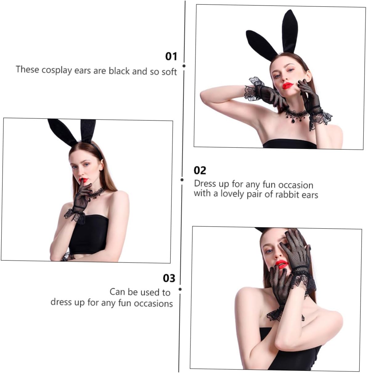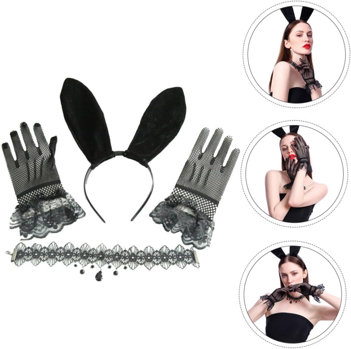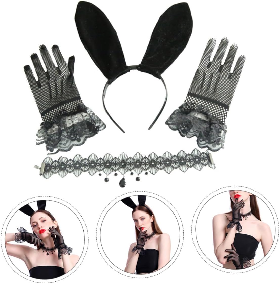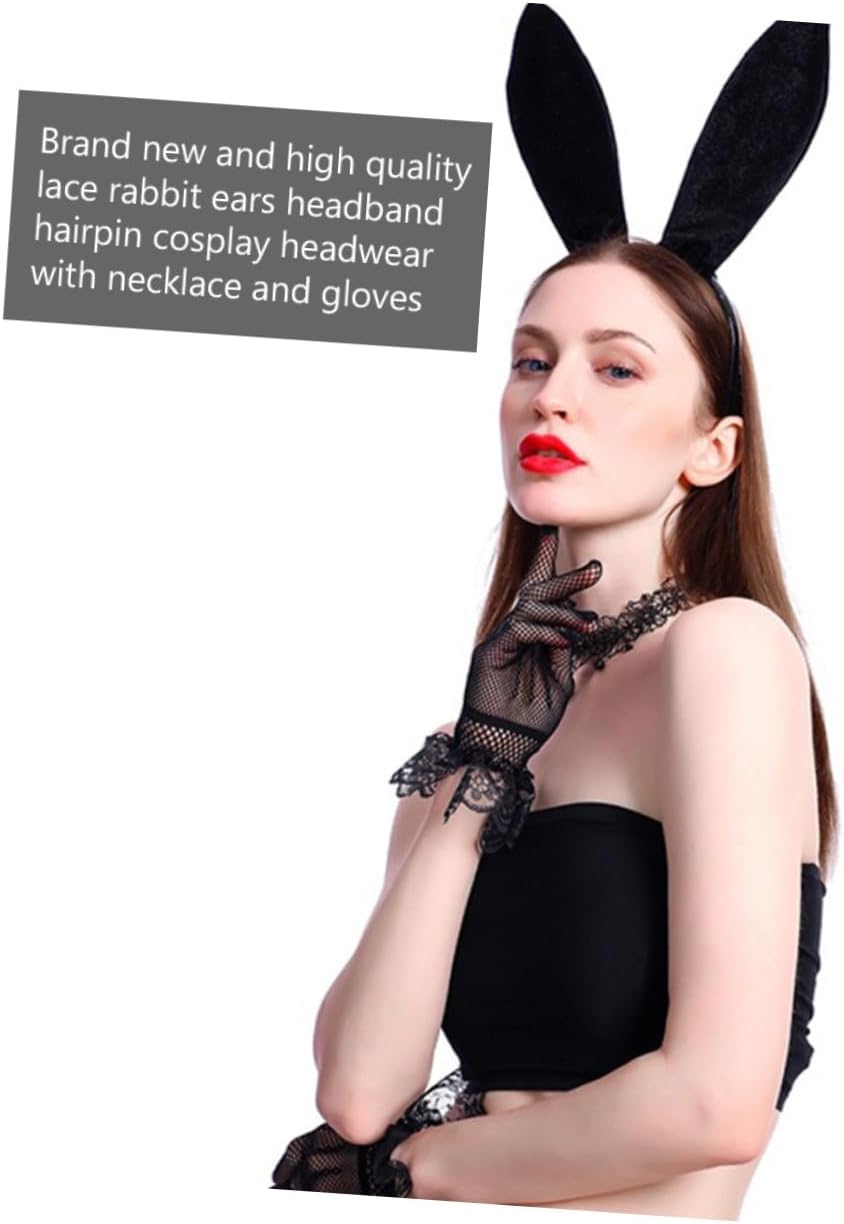 Graziosa fascia per , adatta per adulti che per giochi di ruolo, ottima per varie feste di cosplay, accessorio per abbigliamento femminile Abbigliamento da donna - fascia per con orecchie di coniglio in pizzo, forcina per , copricapo da cosplay con collana e guanti, forniture per cosplay Da cosplay: vestiti per qualsiasi occasione divertente con un adorabile paio di orecchie da coniglio!, kit con collana e cerchietto Cosplace: un'ottima scelta per la tua ragazza, le piacerà molto, fornitura di vestiti Comodo: guanti comodi, collana con fascia abbinata, cosplay con orecchie di coniglio, cosplay