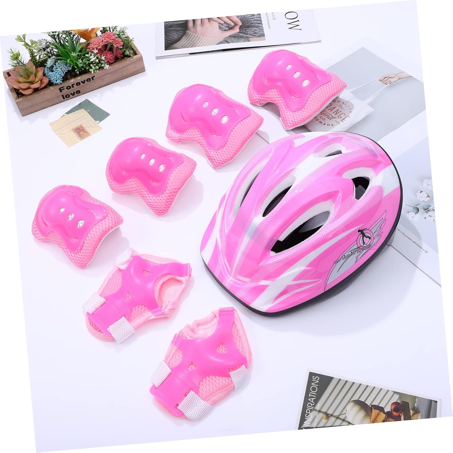| enthaltene Komponenten | 1 x Helm ;1 x Paar Pads ;1 x Paar Handgelenkstützen;1 x Paar Ellenbogenschützer |