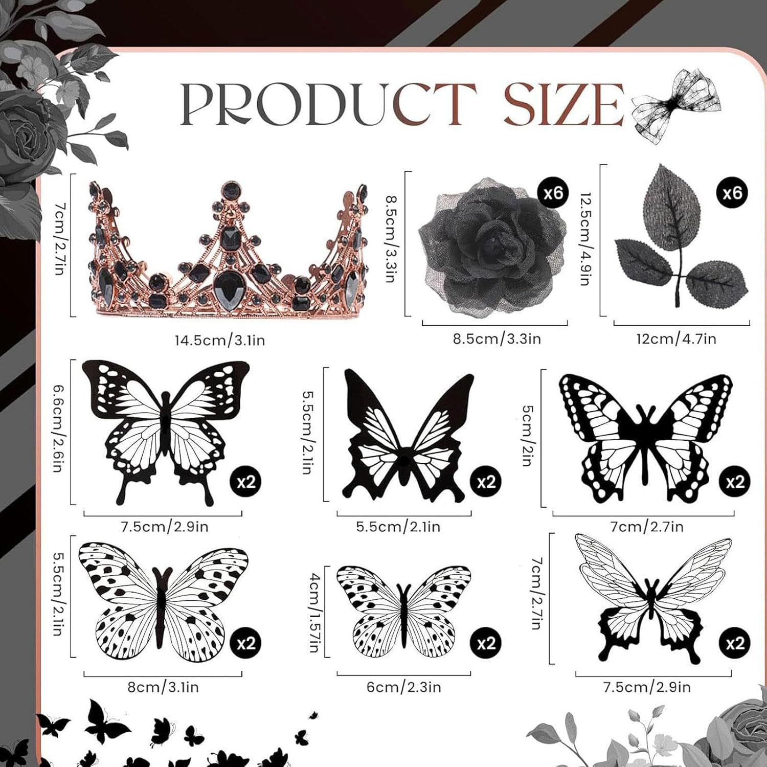 【Decorazioni per compleanni gotici】: Questo topper per torta a forma di rosa gotica include 1 pezzo di decorazione per torta a , 6 pezzi di decorazioni per torta a forma di , 6 pezzi di foglie di rosa nere, 12 decorazioni per feste a forma di farfalla nera. La nostra decorazione per torta gotica porterà un abbellimento sognante e meraviglioso alla tua festa. 【Materiali affidabili】: la per il compleanno è realizzata in metallo PVC e fiori di seta, leggera e riutilizzabile; i topper per torta a farfalla sono realizzati in PVC, resistenti all'applicazione; la decorazione per torta con e foglie è realizzata con piante artificiali e fiori di seta, non sbiadisce e non cade 【Ampia gamma di usi】: il colore nero esalta il tema gotico, rendendolo un'ottima scelta per un matrimonio gotico. Queste decorazioni per torte Gothic Rose possono essere ampiamente utilizzate in molte occasioni, come feste di Halloween, feste di compleanno, anniversari di matrimonio. Sono un grazioso accessorio e decorazione per compleanno; possono anche essere un'elegante corona per ragazze e un oggetto di scena per la fotografia, rendendo le ragazze più affascinanti allo stesso tempo. 【Suggerimenti】: scopo decorativo, non è commestibile e si prega di non utilizzarlo in forno o microonde 【Bellissimo regalo】: il nostro cake topper a forma di farfalla con corona di rose gotiche Finché morte non ci separi, cake topper a forma di farfalla nera, decorazione per feste di matrimonio gotiche, decorazione per torte con , è un regalo perfetto per addio al nubilato, shower, feste di compleanno, torte da principessa e regali di Natale per amici, bambini e famiglie.