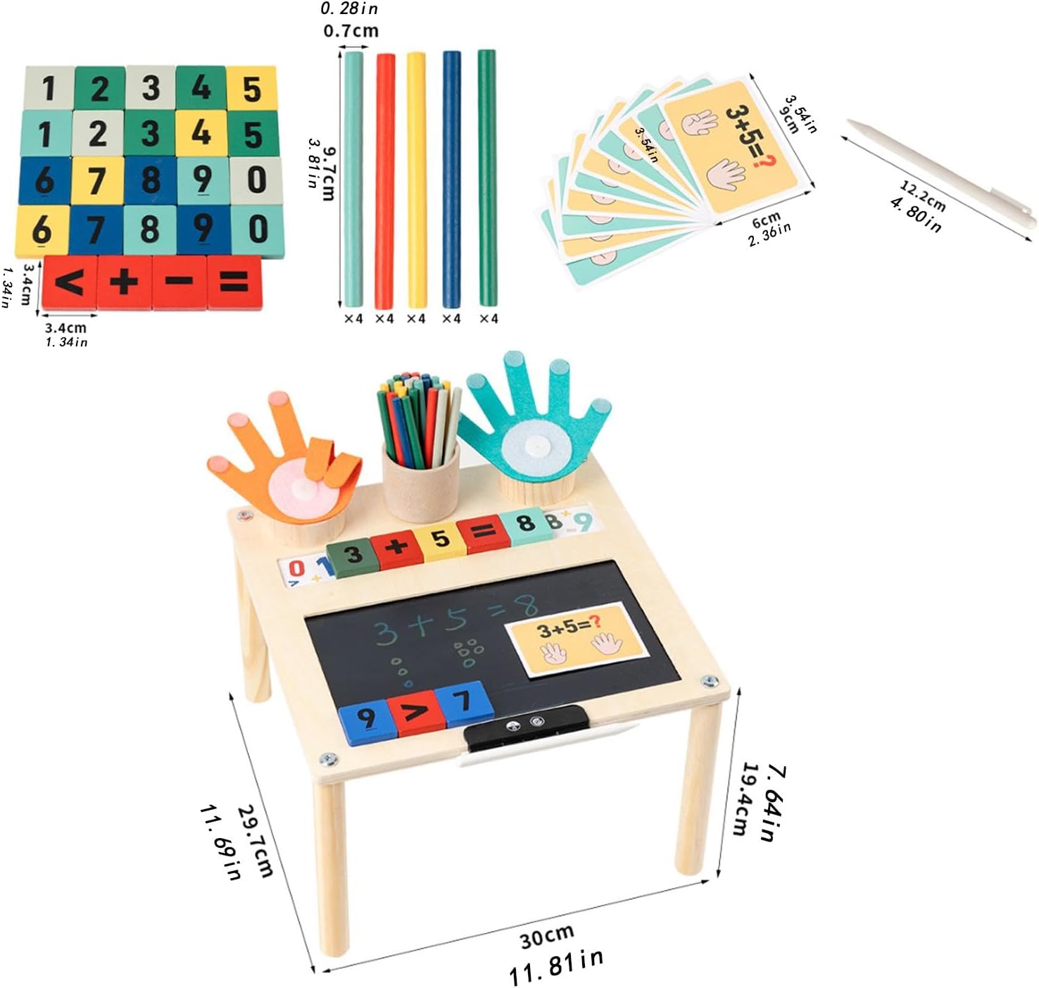 【Dimensioni compatte】: le dimensioni di questo gioco educativo sono 30 cm x 29,7 cm x 19,4 cm. Ha una struttura compatta, un design robusto ed è facile da montare. È molto adatto per l'uso in case, soggiorni, e altri ambienti. 【Gioco educativo】: I giocattoli matematici manipolativi sono creativi, colorati e dotati di una lavagna elettronica. Possono essere utilizzati per l'allenamento al calcolo e per sviluppare la scrittura dei bambini, le capacità motorie fini, la coordinazione occhio-mano, ecc. 【Strumento didattico】: Questo gioco di conteggio dei numeri con le dita può essere utilizzato per imparare a contare in vari . Viene fornito con giocattoli per le dita ed è molto adatto a far giocare bambini e genitori, combinando istruzione e intrattenimento. 【Materiale di qualità】: i giocattoli per l'apprendimento precoce sono realizzati in materiale di legno di qualità, resistente all'usura, robusto, non facile da deformare e può essere utilizzato ripetutamente per lungo tempo 【Il set include】: Questo set di giocattoli con blocchi numerici per bambini include una lavagna didattica, blocchi numerici, penne cancellabili, carte numeriche, aste, ecc., per soddisfare le esigenze di apprendimento dei bambini