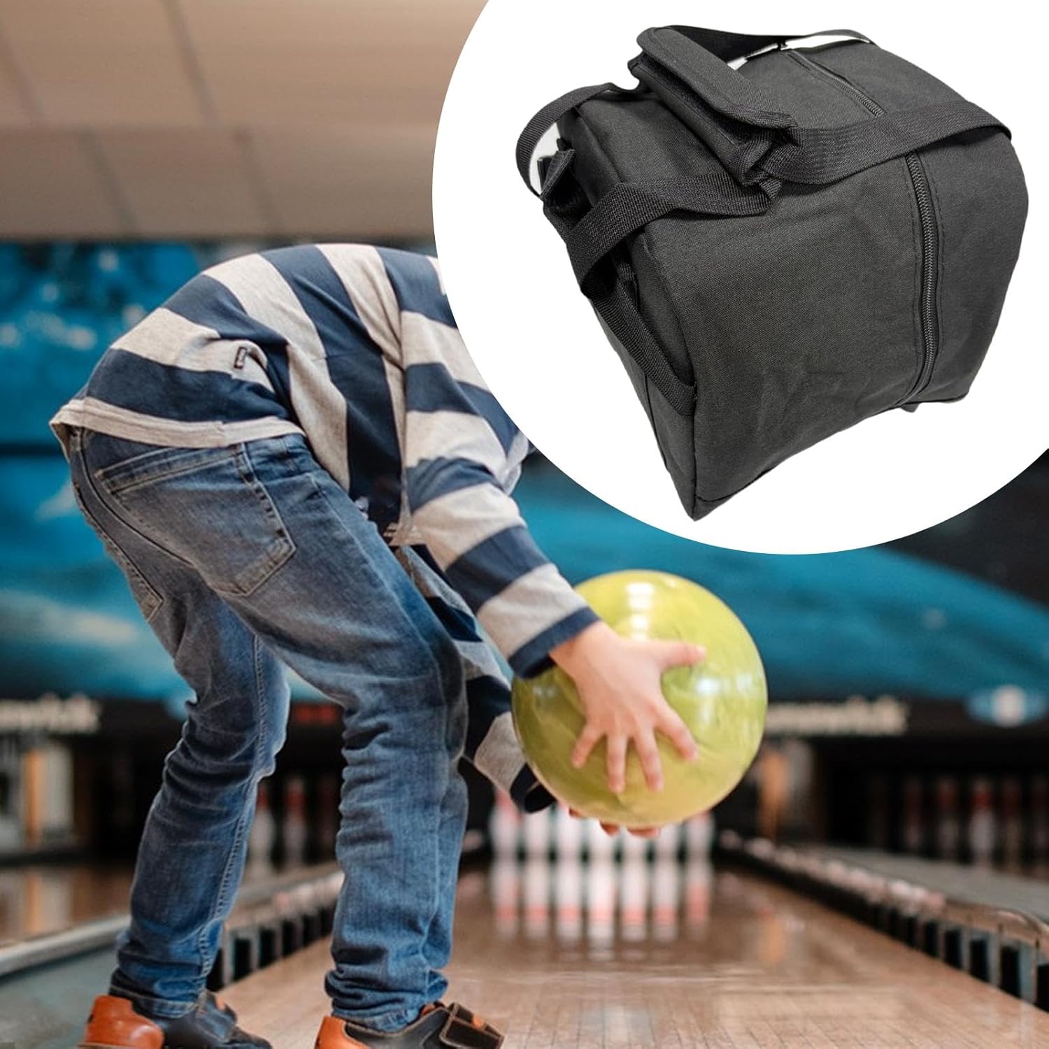 【Tasca frontale comoda】: frontale in rete con elastico superiore è adatta per riporre accessori come asciugamani, polsiere, portafogli, chiavi e altro ancora 【Impugnatura comoda】: il design della borsa da bowling presenta una tracolla regolabile e una maniglia retrattile, che ti consentono di trasportare la tua attrezzatura da bowling con facilità e comodità 【Materiale】: Realizzata in robusto tessuto Oxford, questa borsa da bowling offre resistenza in una forma compatta e facile da gestire, sia che tu stia andando ad allenarti o a gareggiare 【Borsa da bowling singola】: questa borsa tote è progettata specificamente per trasportare una singola palla da bowling, rendendola la scelta ideale per coloro che necessitano di una borsa dedicata per la propria palla o come borsa aggiuntiva per attrezzatura extra 【Protezione della palla migliorata】: l'ampio scomparto principale si adatta comodamente a un bowling standard a 10 birilli e include un portapalle in schiuma nera che ammortizza e protegge la palla da eventuali danni, garantendo che rimanga saldamente in posizione durante il trasporto