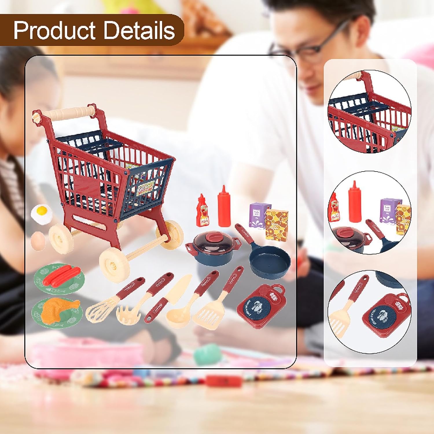 【Soluzione di archiviazione】: il giocattolo educativo offre l'opportunità di riporre e organizzare piccoli oggetti, fungendo anche da supporto fotografico creativo 【Design unico】: realizzato con materiali in polipropilene resistenti, questo giocattolo da cucina è un regalo ideale per i compleanni, garantendo ore di apprendimento e gioco gioiosi per i bambini 【Gioco fantasioso】: questo giocattolo per carrello della spesa per bambini offre una deliziosa esperienza di gioco di ruolo, fungendo sia da coinvolgente attività di gioco che da aggiunta a qualsiasi casetta da gioco, migliorandone e il realismo 【Strumento educativo】: il nostro set da gioco per carrello della spesa per bambini è un'ottima risorsa per i bambini per apprendere le abilità di acquisto essenziali, rendendolo sia divertente che educativo 【Decorativo】: Dotato di accessori da cucina realistici, questo set da gioco da cucina può anche essere utilizzato come un incantevole oggetto di scena fotografico, aiutando le foto del tuo bambino a distinguersi con creatività