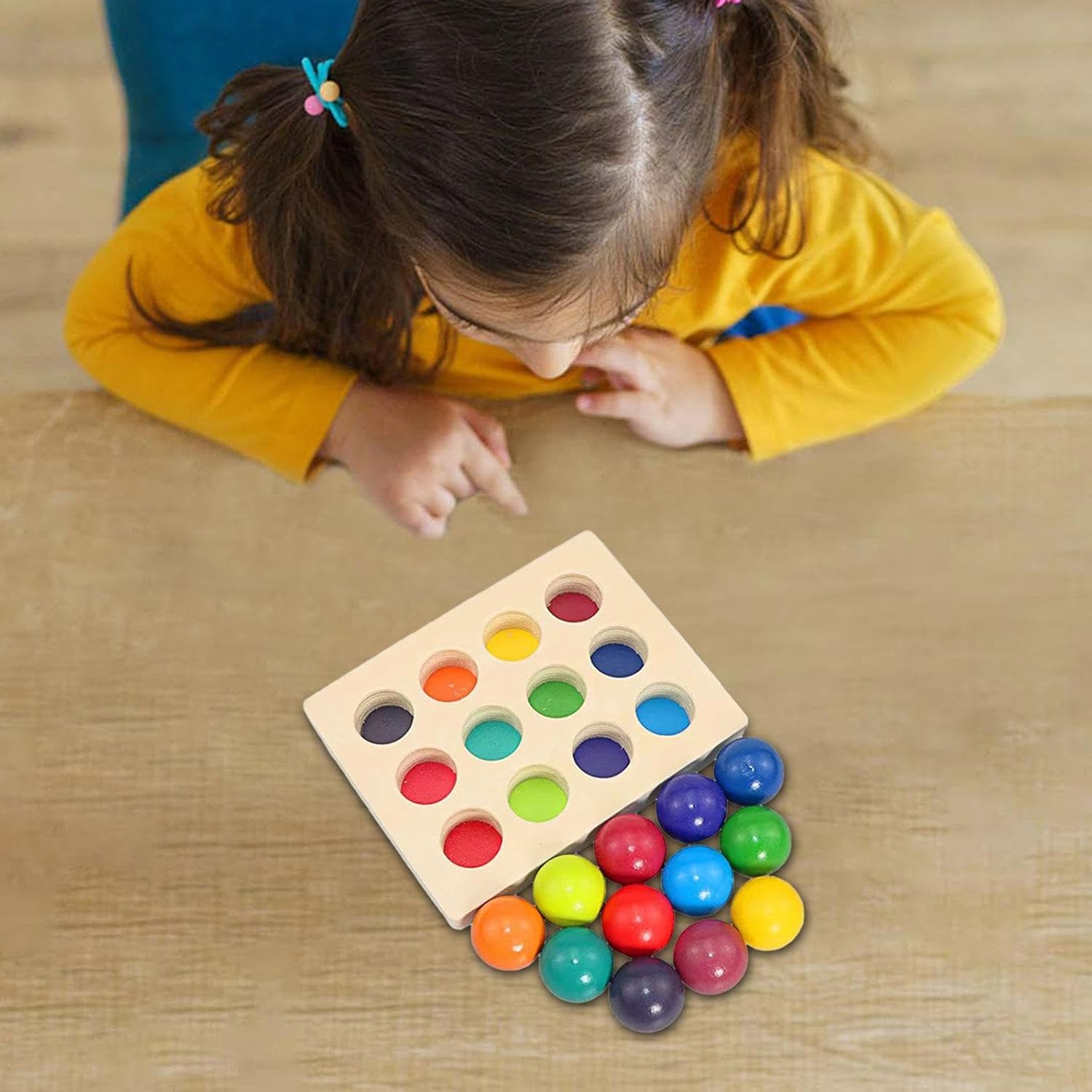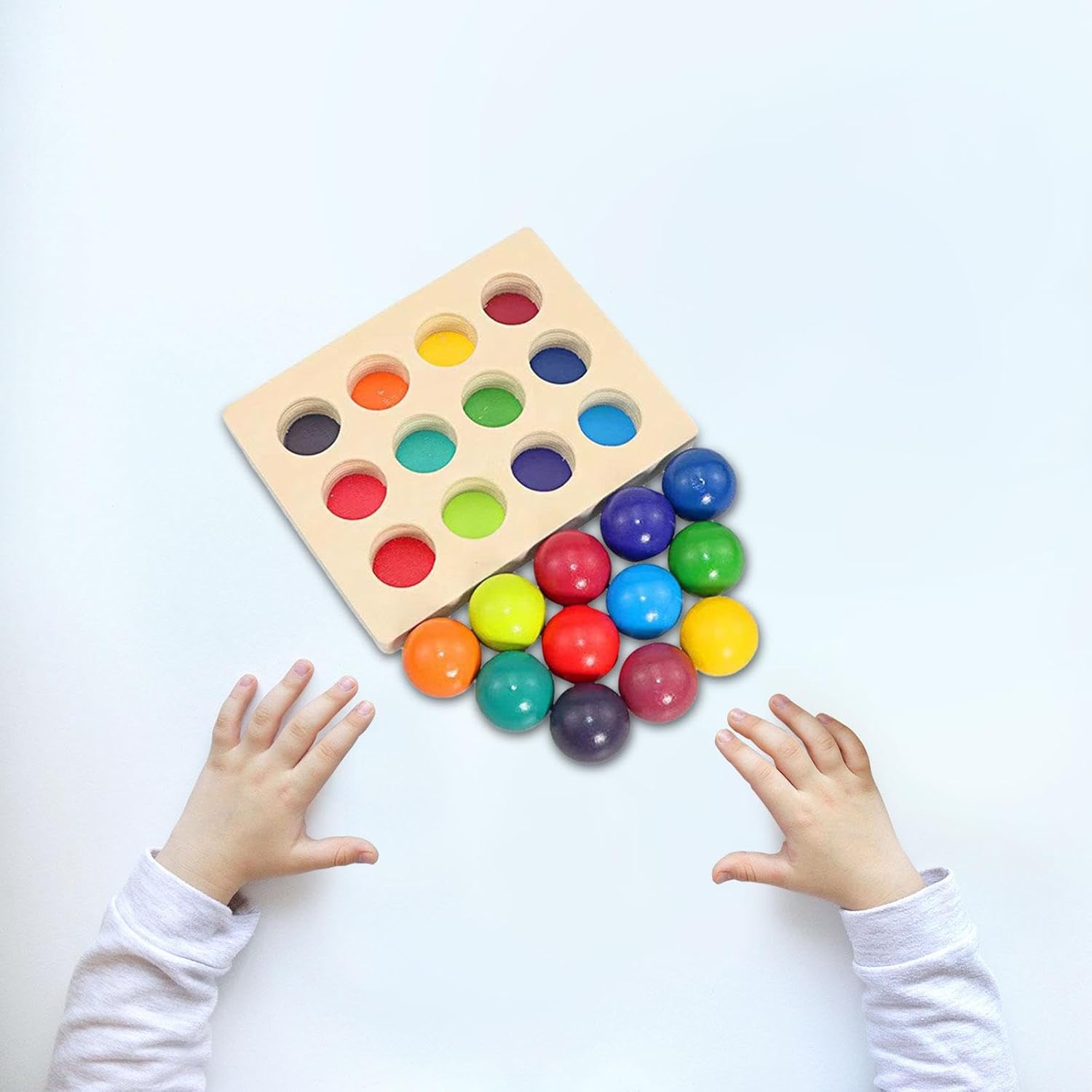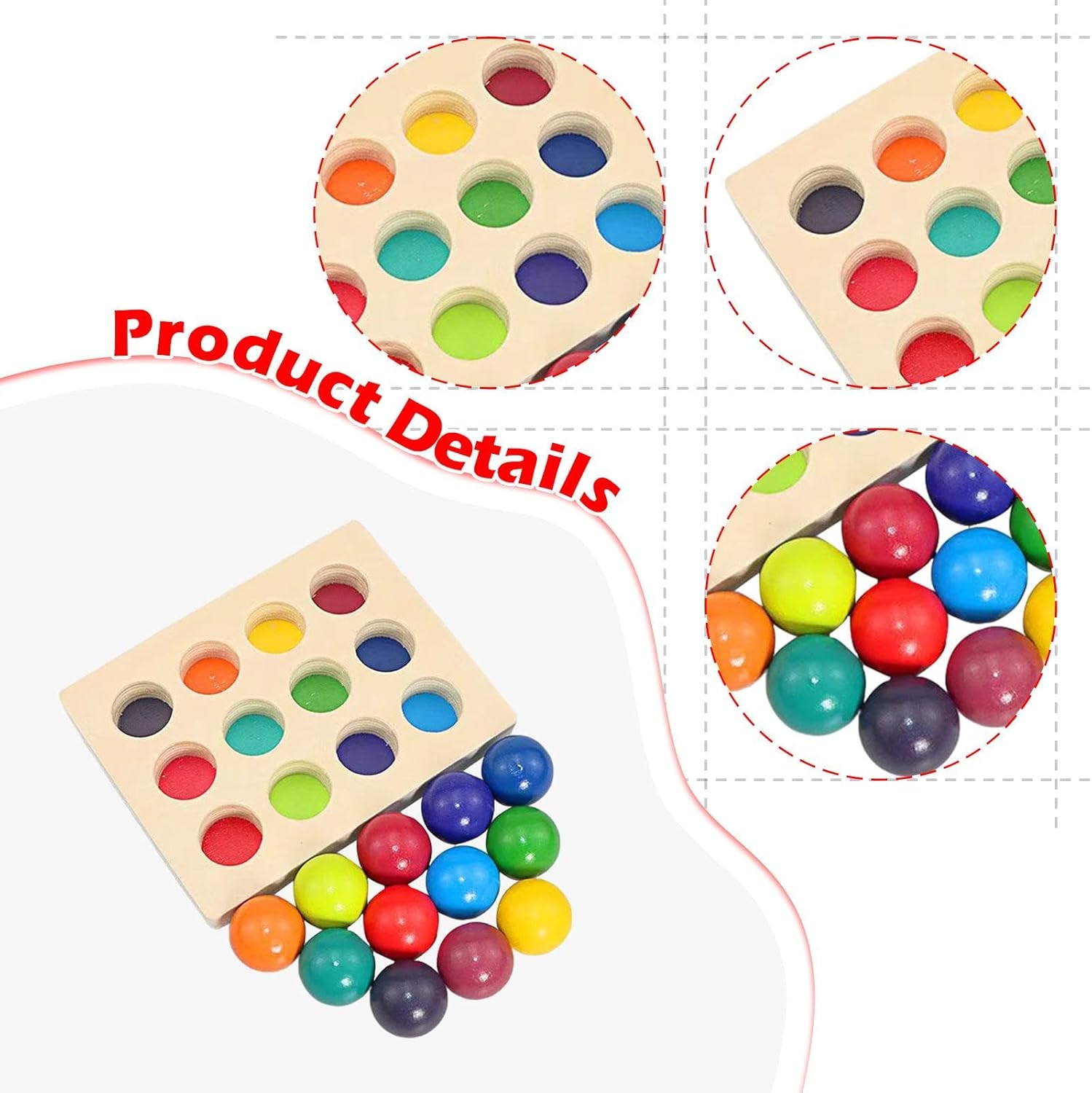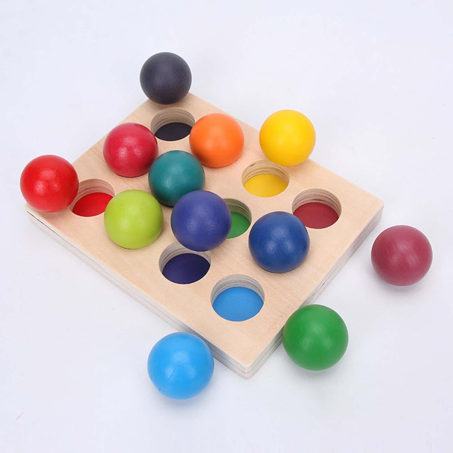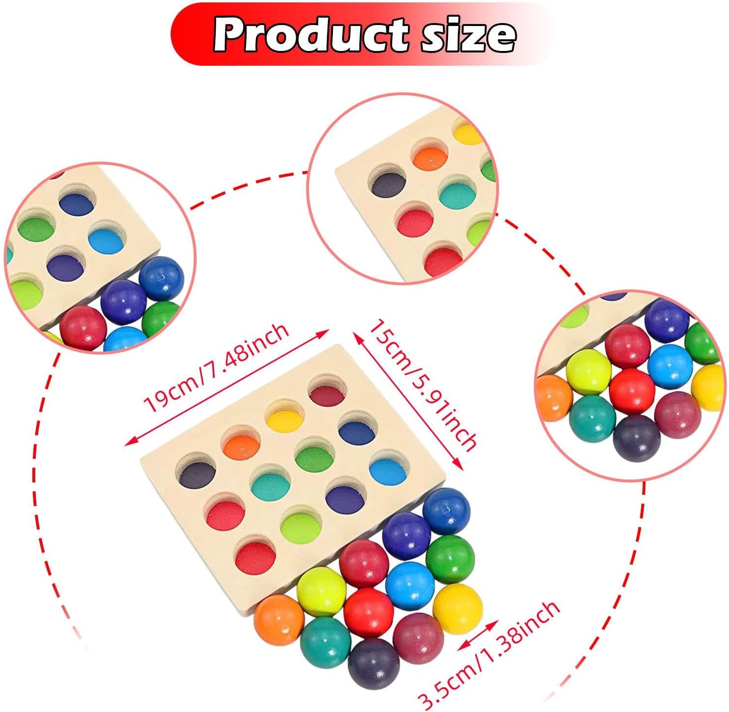 【Emozionante gioco di abbinamento e smistamento】: Con molteplici dimensioni di abbinamento dei colori, questo giocattolo di smistamento e abbinamento incoraggia il pensiero logico sfidandoli ad accoppiare e ordinare i pezzi in modo efficace. bambini piccoli. 【Materiale in legno di alta qualità】: Le palline di legno in 12 colori con vassoio sono realizzate in legno massiccio di alta qualità, lucidato e non hanno spigoli vivi, così il tuo bambino può giocarci comodamente. Con dimensioni della tavola 19 cm x 15 cm x 3 cm/7,48" x 5,91" x 1,18" e diametro della sfera 3,5 cm/1,38"