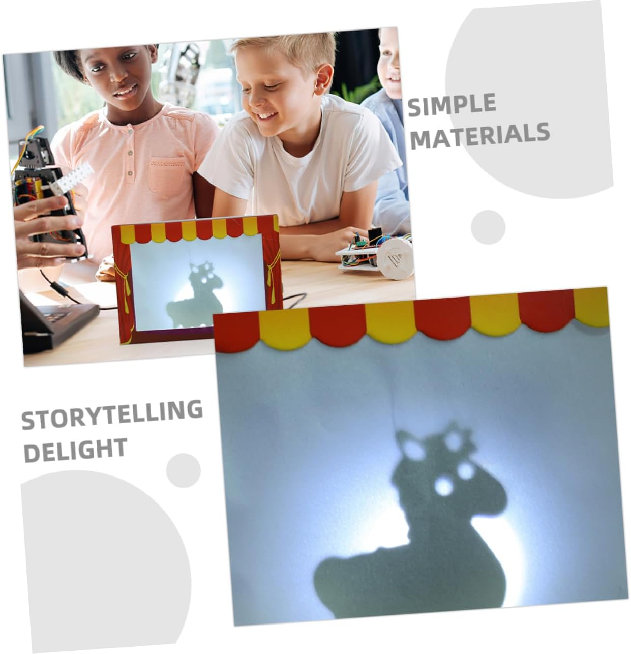 Creatività teatrale: consente ai bambini di creare ed eseguire i propri spettacoli di marionette ombra, incoraggiando l'amore per il dramma e la narrazione, teatro delle ombre, marionette ombra per Semplice e divertente: realizzato con materiali facili da usare, è un giocattolo educativo divertente e accessibile, marionette ombra per, teatro delle marionette per l'apprendimento divertente: combina intrattenimento ed educazione, insegnando ai bambini le ombre e la luce in modo giocoso, teatro delle marionette per, Marionette ombra per creatività fatta a mano: incorporalo in progetti pratici fai-da-te, incoraggiando la loro creatività e motricità fine abilità, narrazione: consente ai bambini di creare le proprie storie di marionette ombra e migliorare le proprie capacità di narrazione