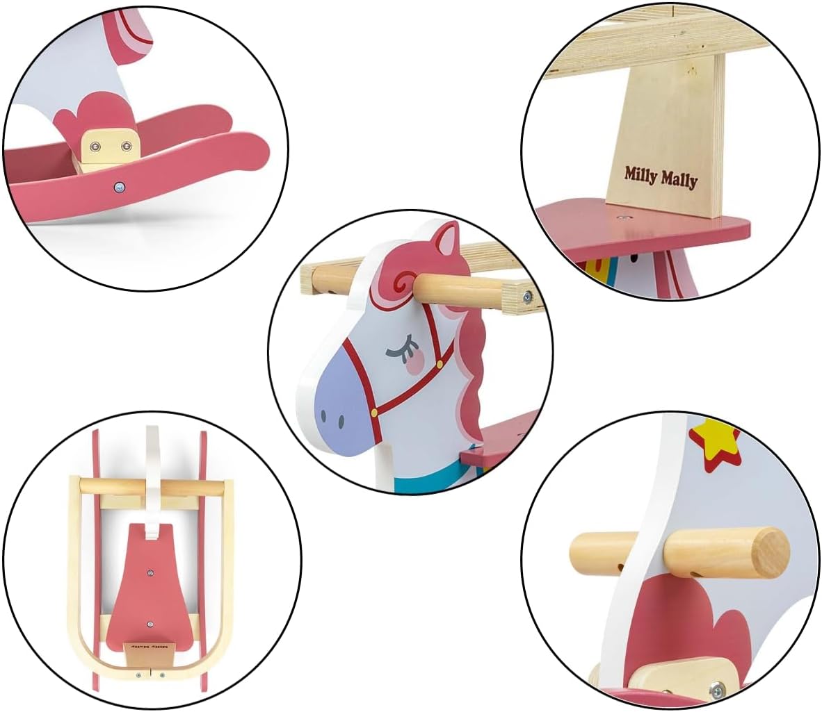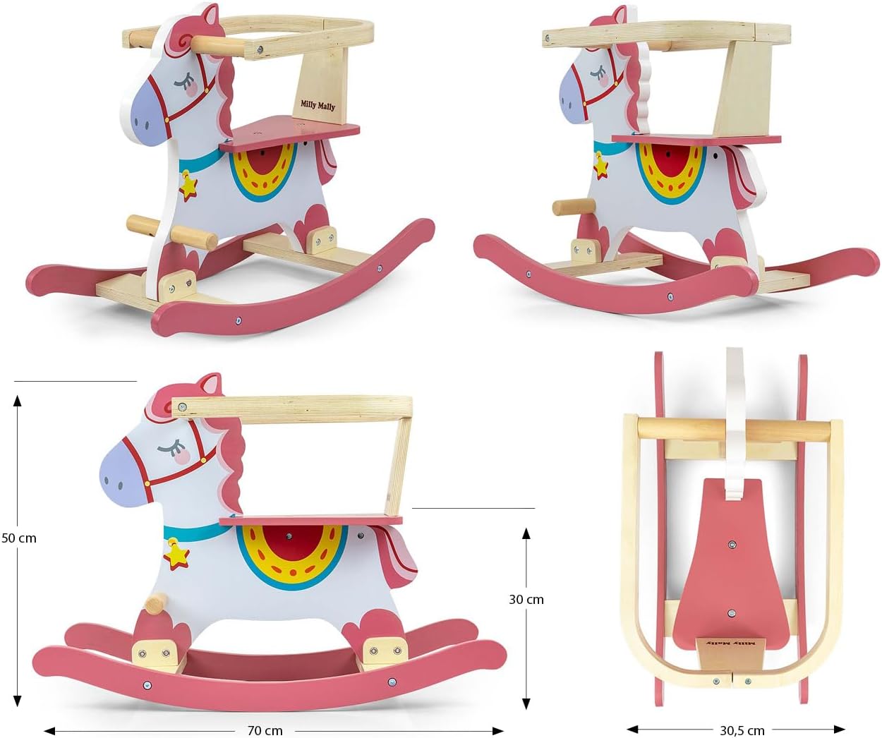 Stabile e sicuro Per bambini 12-36 mesi Peso massimo utente: 25 kg Design unico adatto ai bambini Maniglie per tenere le maniglie Poggiapiedi Barriere protettive (possibilità di smontaggio per un bambino più grande)