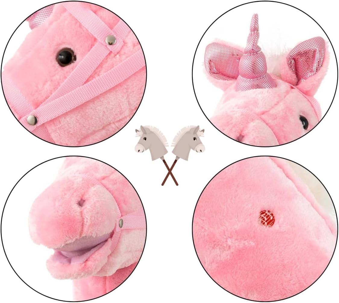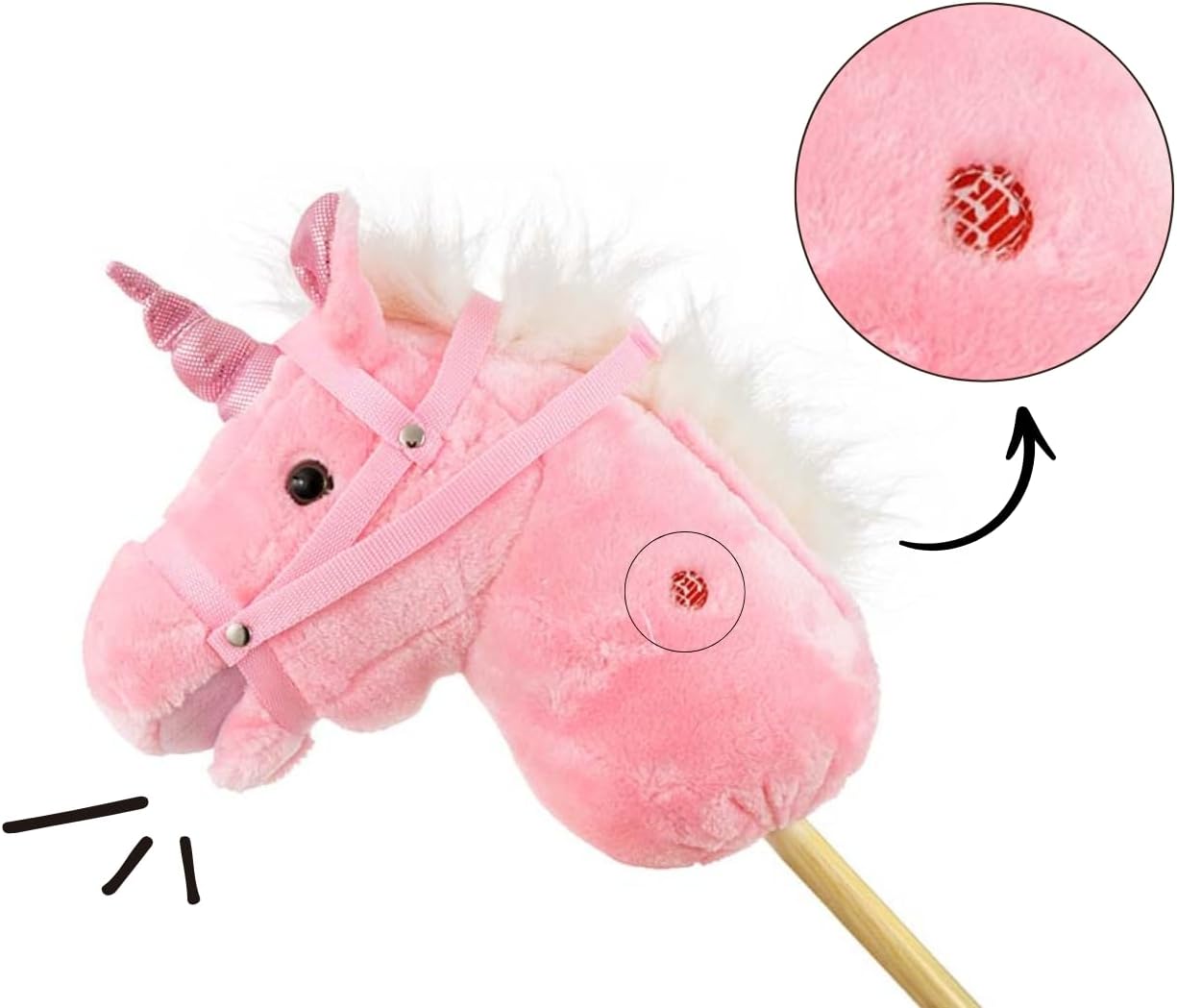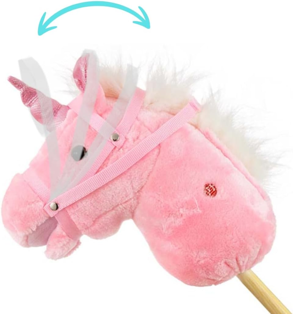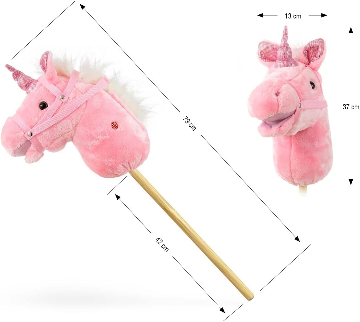 Testa di cavallo giocattolo su un bastone di legno Sicurezza durante il gioco: bastone in legno solido e materiale morbido sulla testa del cavallo 3 suoni sonori: galoppo smussato e La testa del cavallo muove il muso premendo i suoni Età del bambino: 18 m+ Portata massima: 30 kg Materiale: parte superiore della testa, poliestere, imbottitura della testa, poliestere e bastone in legno