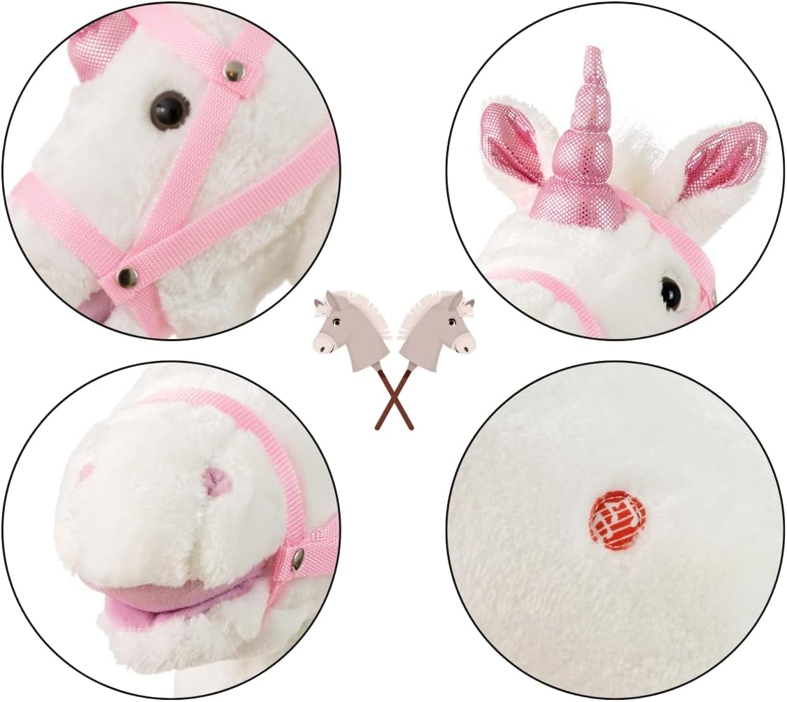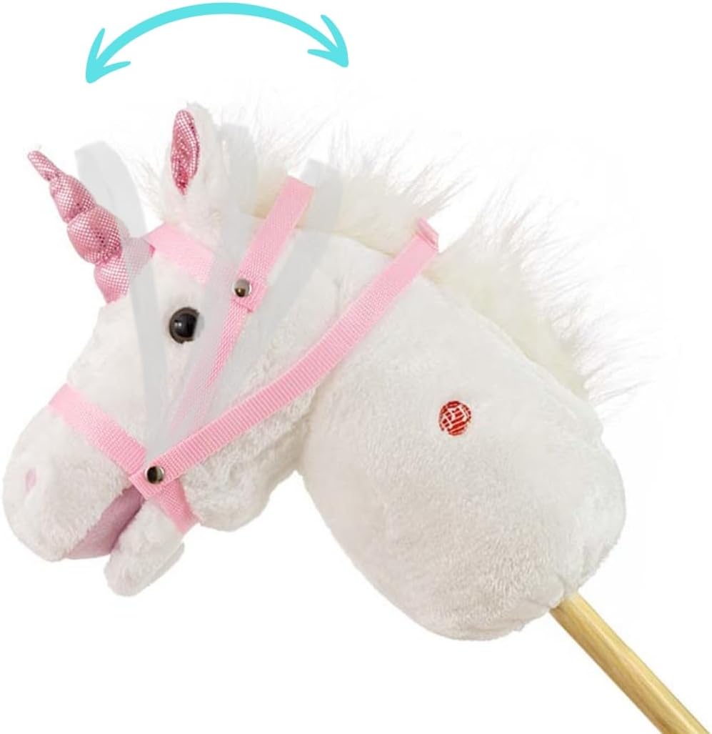 Testa di cavallo giocattolo su un bastone di legno Sicurezza durante il gioco: bastone in legno solido e materiale morbido sulla testa del cavallo 4 suoni sonori: galoppo contundente e La testa del cavallo muove il muso premendo i suoni Età del bambino: 18 m+ Portata massima: 30 kg Materiale: parte superiore della testa, poliestere, imbottitura della testa, poliestere e bastone in legno