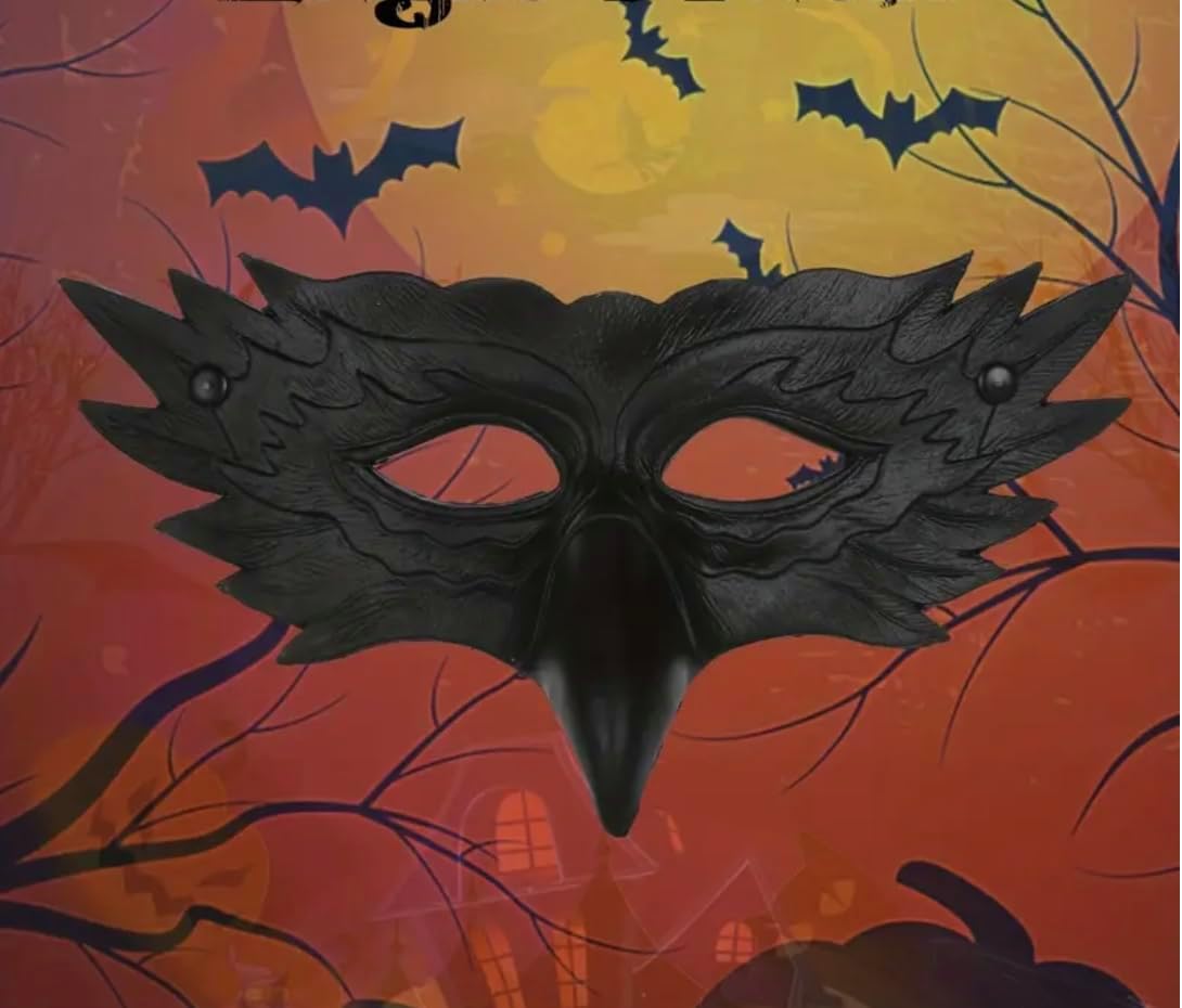 Misterioso uccello mezza maschera Colori a scelta: nero o oro Taglia unica per adulti Materiale: schiuma EVA Per Halloween, Carnevale e feste a tema