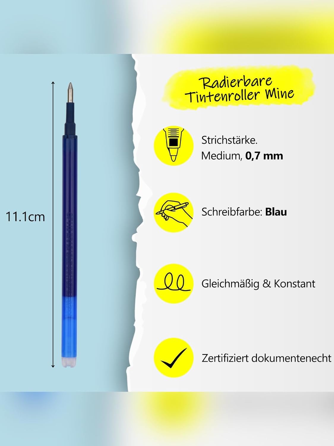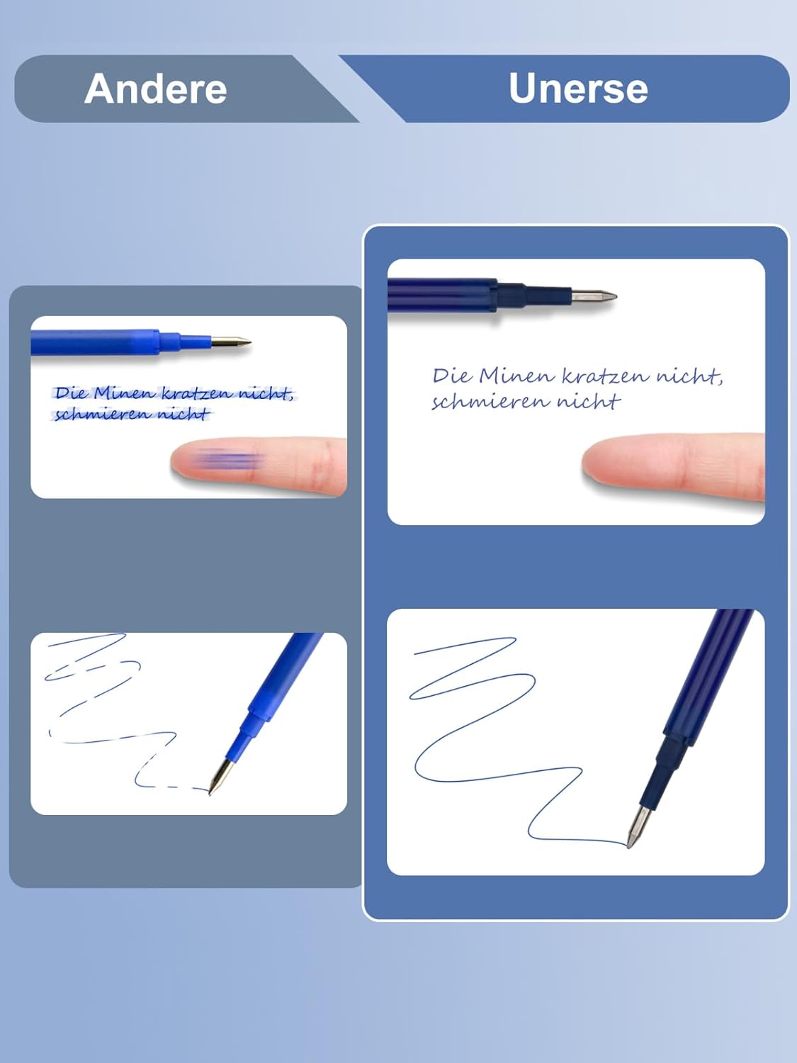 Mine di ricambio aggiornate: adatte e compatibili con penne gel cancellabili della Pilot FiXion Ball & Cilker. Scrivono altrettanto bene come l'originale e possono anche essere cancellate bene. Il blu nero è più vicino all'originale: abbiamo ricariche in blu classico, blu-nero, blu-nero è più vicino all'originale. Contenuto massimo dell'inchiostro: max. vol, 80% del contenuto dell'inchiostro, lunghezza di scrittura 400 m. Asciugatura rapida: classica punta a sfera giapponese, 0,7 mm, scrittura liscia, ottimizzata uscita dell'inchiostro e asciugatura rapida per evitare fastidiose sbavature. [ cancellabile/cancellabile] Una penna a sfera cancellabile. Le mine di ricambio per penne cancellabili sono ideali per imparare a scrivere e sono pratiche per l'uso quotidiano e l'ufficio.