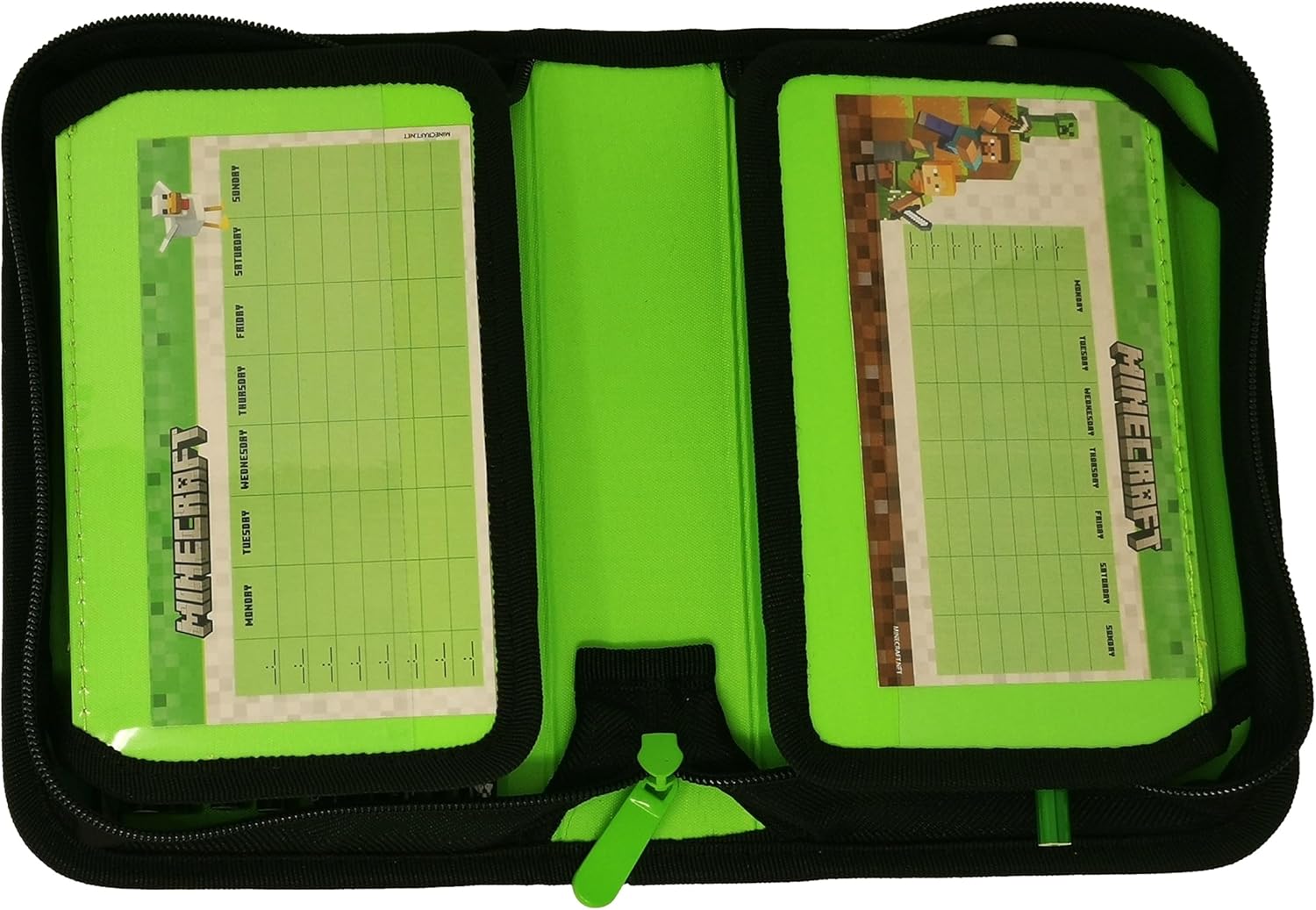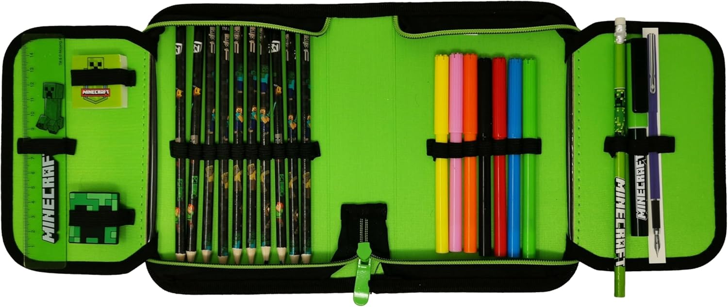 Il nostro astuccio ufficiale Minecraft Merchandise Collection per ragazzi e ragazze ha un design unico e presenta i famosi personaggi Minecraft Steve e Alex. La custodia per matite è un astuccio pieno di due scomparti, dotato di cerniere robuste e di un set di cancelleria Minecraft versatile e utile. La cancelleria è organizzata con cura in 2 ali incernierate, ognuna con una tasca con orari. Contenuto della valigetta per allievo: 20 pezzi accessori Minecraft: 10 matite colorate + 5 pennarelli + 1 matita + 1 penna a sfera + 1 gomma + 1 temperino + 1 righello. Materiali durevoli: il nostro astuccio è realizzato in tessuto poliestere resistente all'acqua con una cerniera resistente e offre un'eccellente protezione per tutti gli elementi essenziali della scuola. Dimensioni della custodia Minecraft: circa 14 x 20 x 3 cm (chiuso) salvaspazio e compatto: si adatta bene a ogni zaino, borsa, cassetto, borsa e cassetto. Questo astuccio Minecraft con licenza ufficiale è stato progettato esclusivamente per Theonoi ed è il regalo ideale per ragazzi, ragazze o adulti, sia come accessorio per riempire il cono della scuola, per il ritorno a scuola o come regalo per un compleanno. I fantastici motivi Minecraft ispireranno tutti i fan dei giocatori.