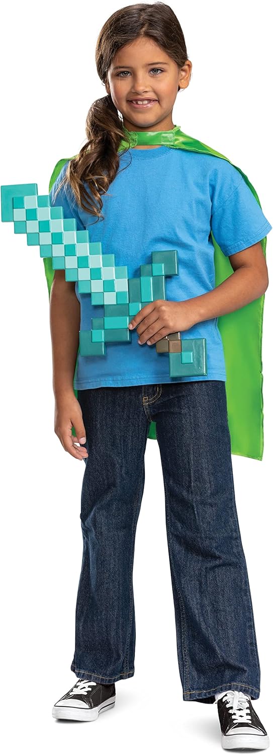 Das Minekraftschwert ist qualitativ hochwertig gemacht, sehr stabil. Es hat auch die orginalen Minecraftfarben. Der Umhang ist nichts besonderes, er ist ein Stück Faschingsseide, die einmal ringsum genäht ist, damit der Stoff nicht ausfranst. Mein Enkel wird sich über den Umhang aber ebenso freuen wie über das Schwert.